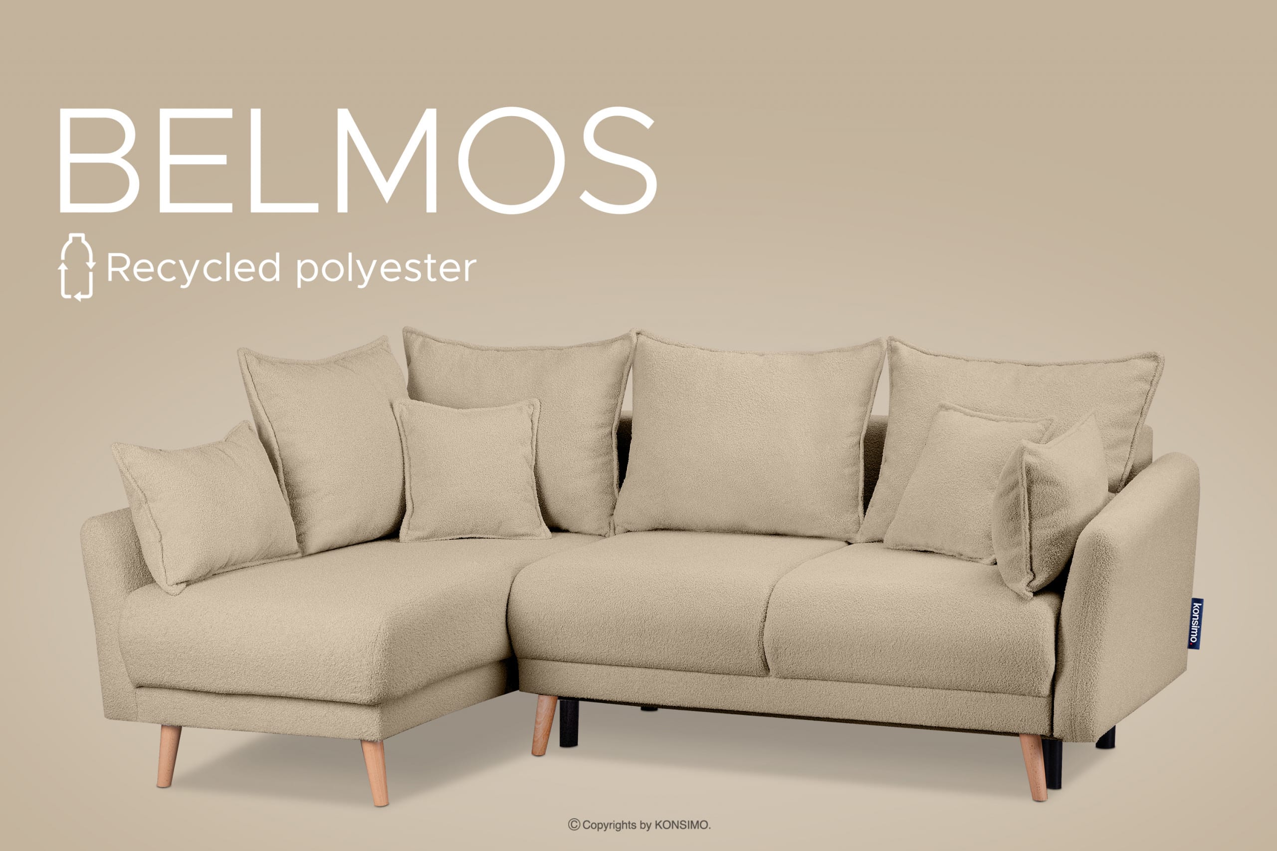 BELMOS zobacz całą kolekcję Narożnik jasnobeżowa rozkładany w tkaninie boucle lewy- kolor jasnobeżowy