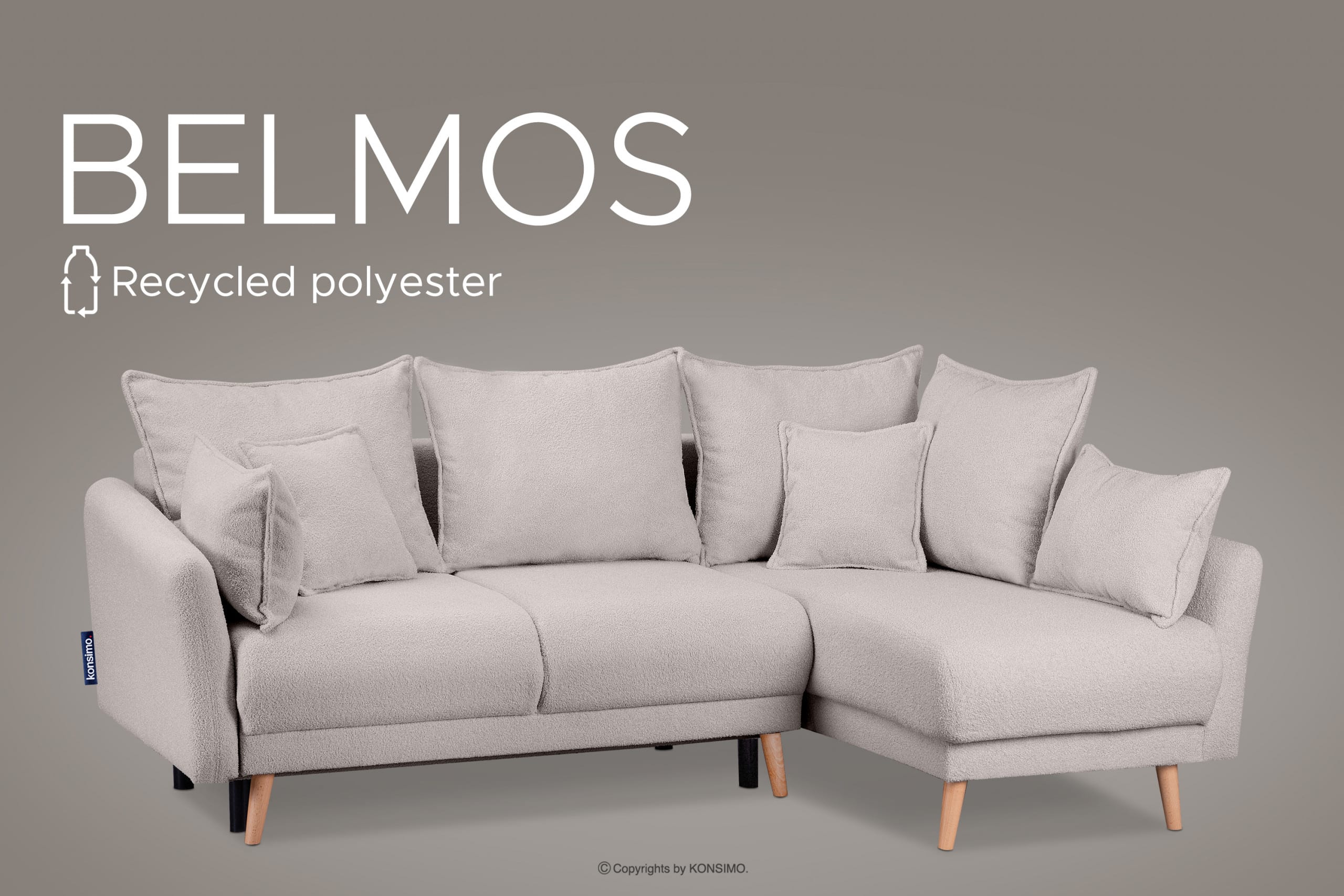 BELMOS zobacz całą kolekcję Narożnik szary rozkładany w tkaninie boucle prawy- kolor szary