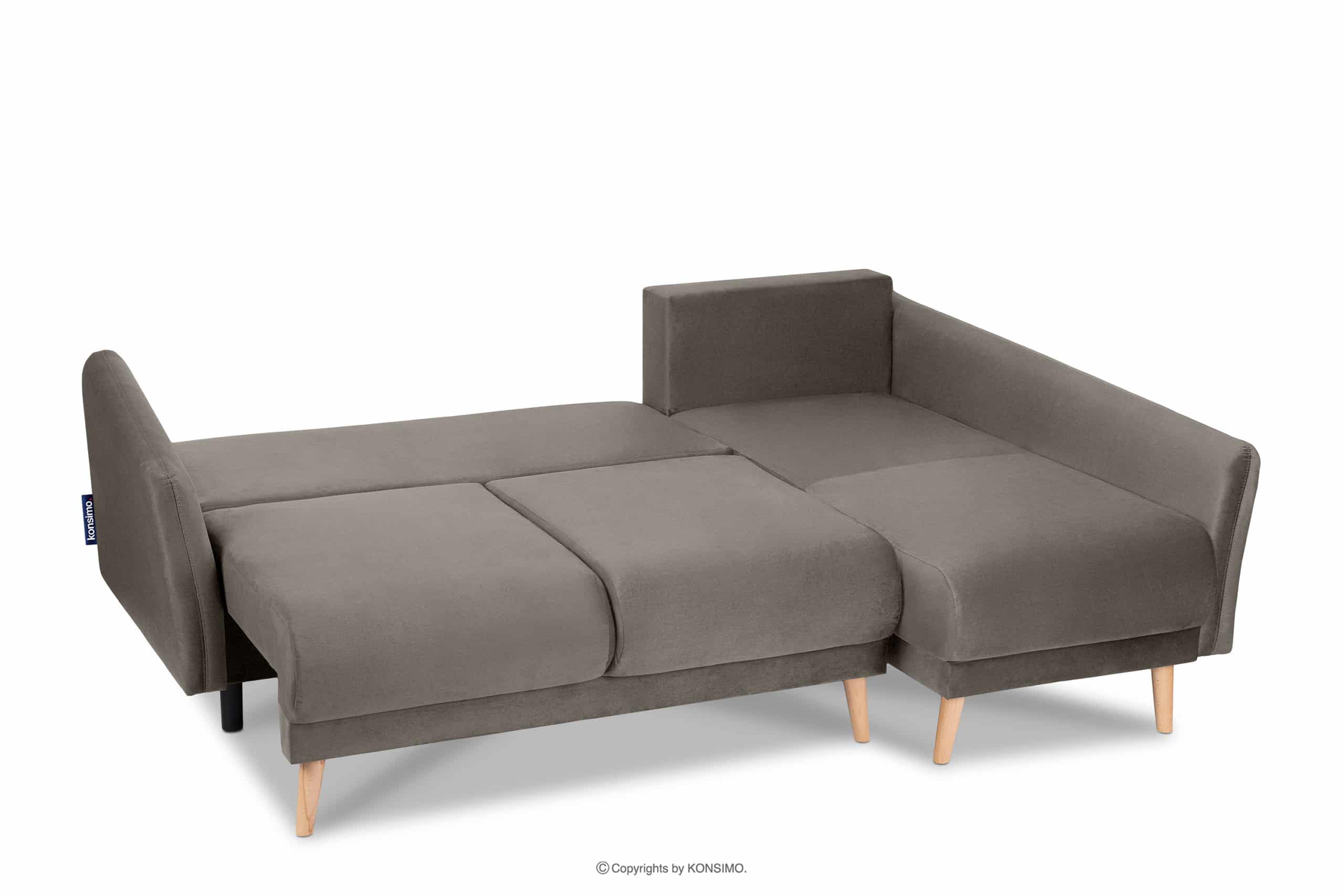 BELMOS Modny narożnik welwetowy na nóżkach jasnoszary