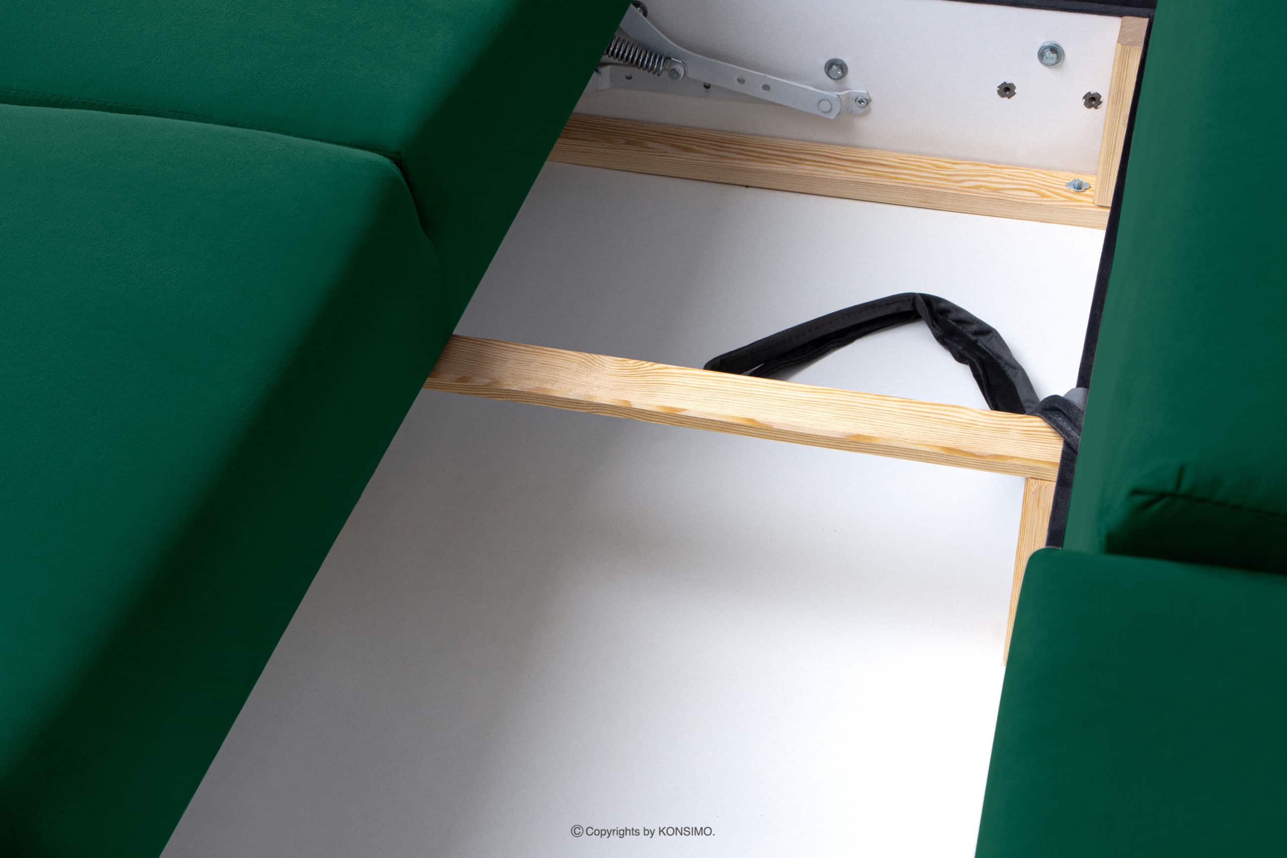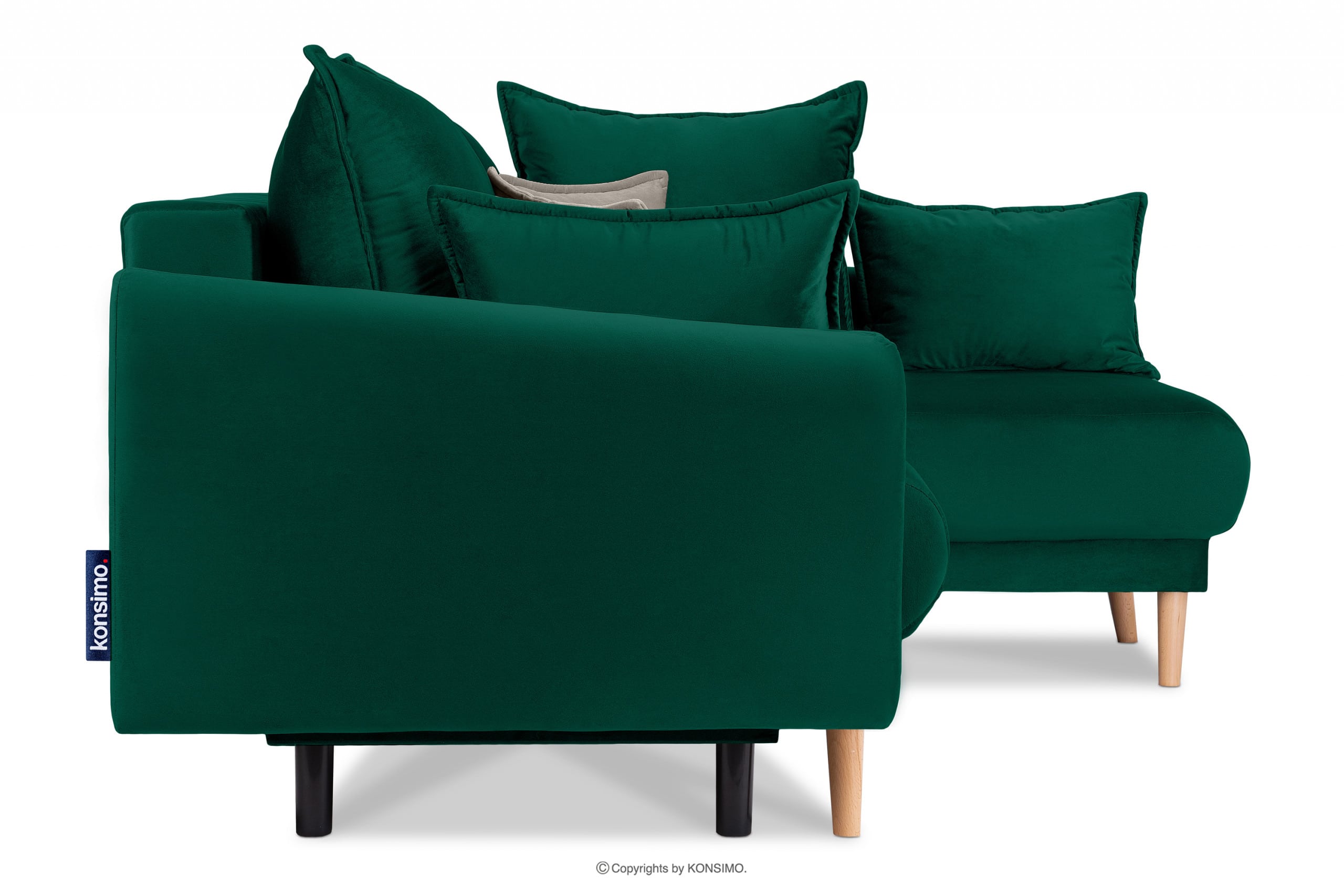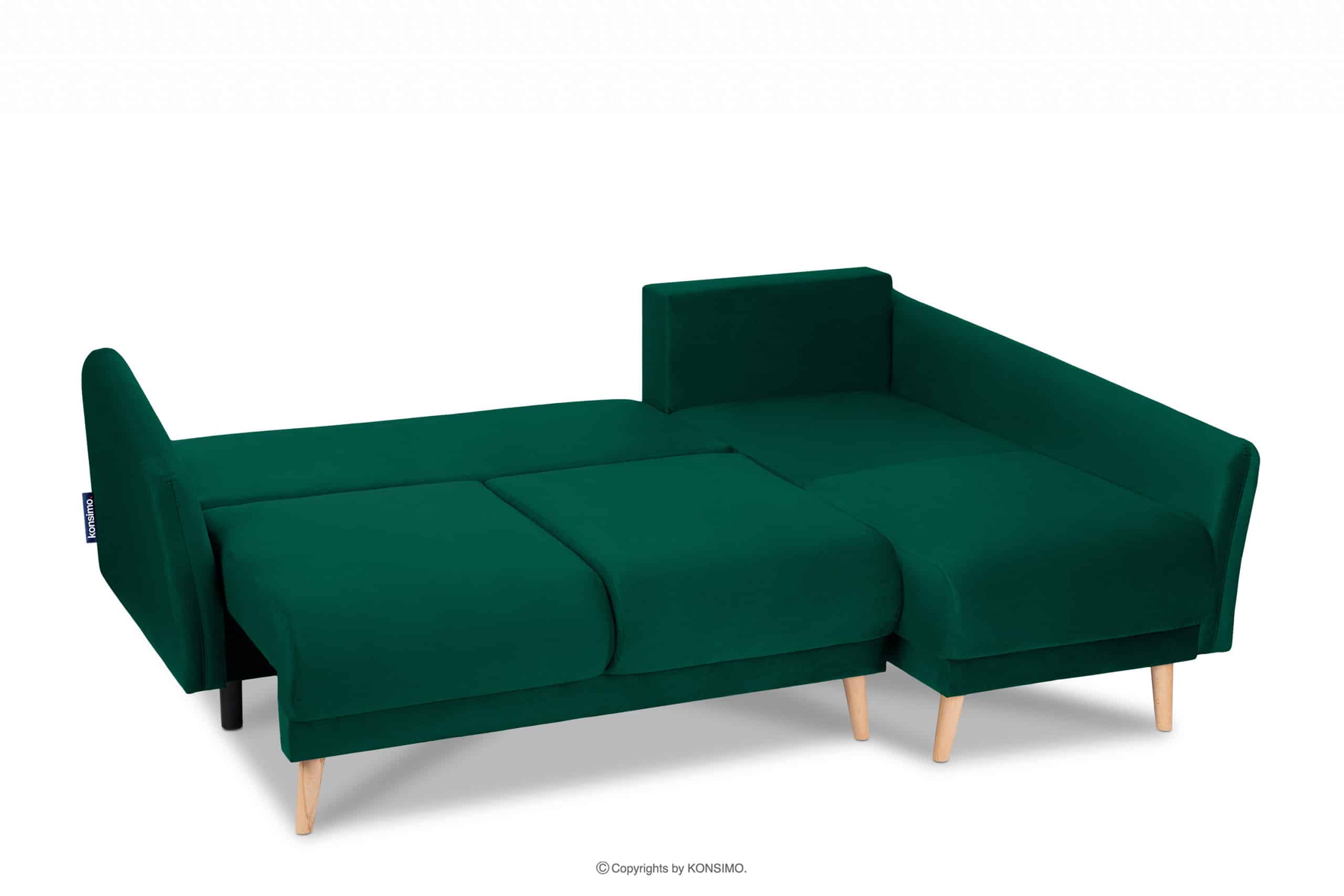 BELMOS Modny narożnik welwetowy na nóżkach ciemnozielony