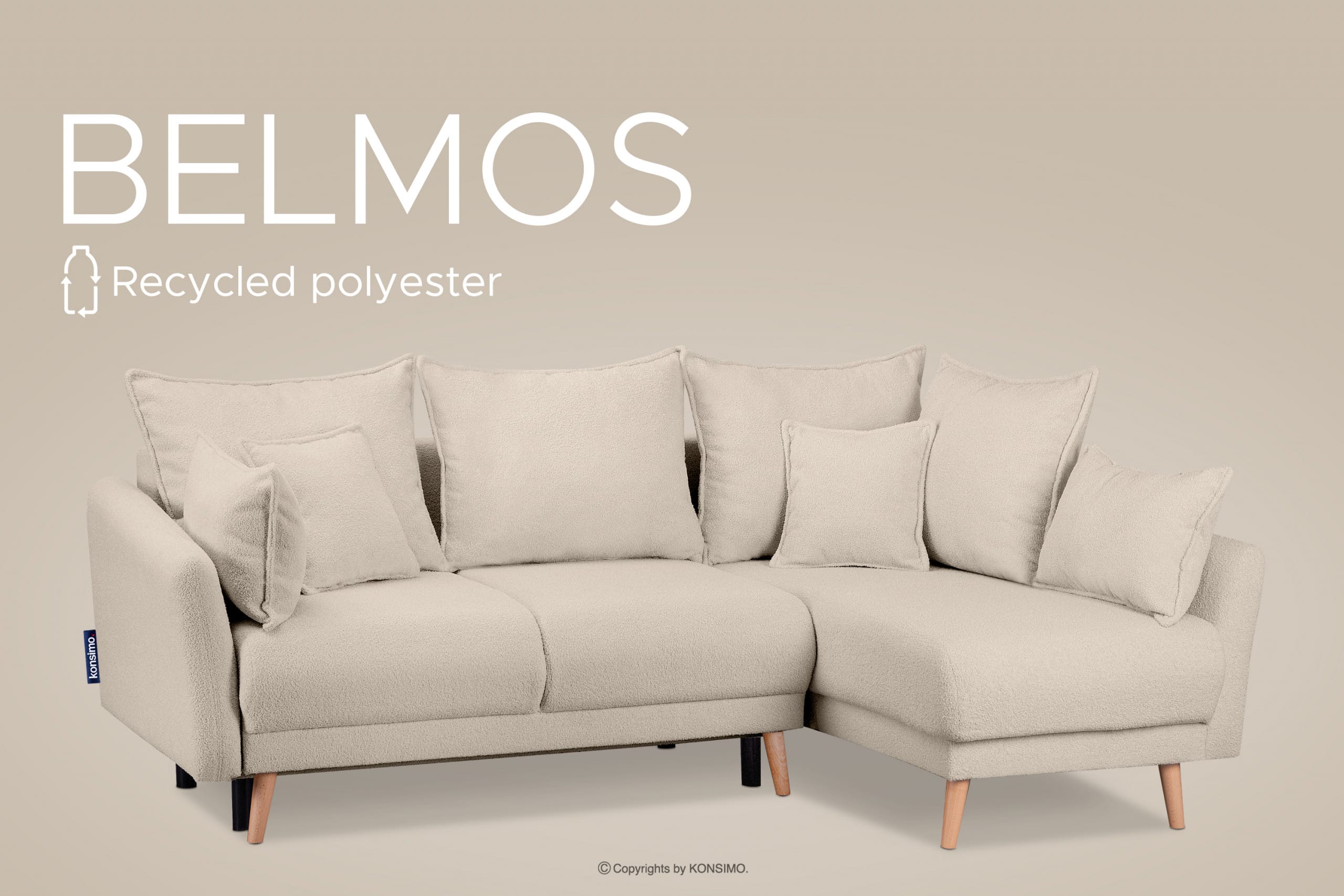 BELMOS zobacz całą kolekcję Narożnik kremowy rozkładany w tkaninie boucle prawy- kolor kremowy