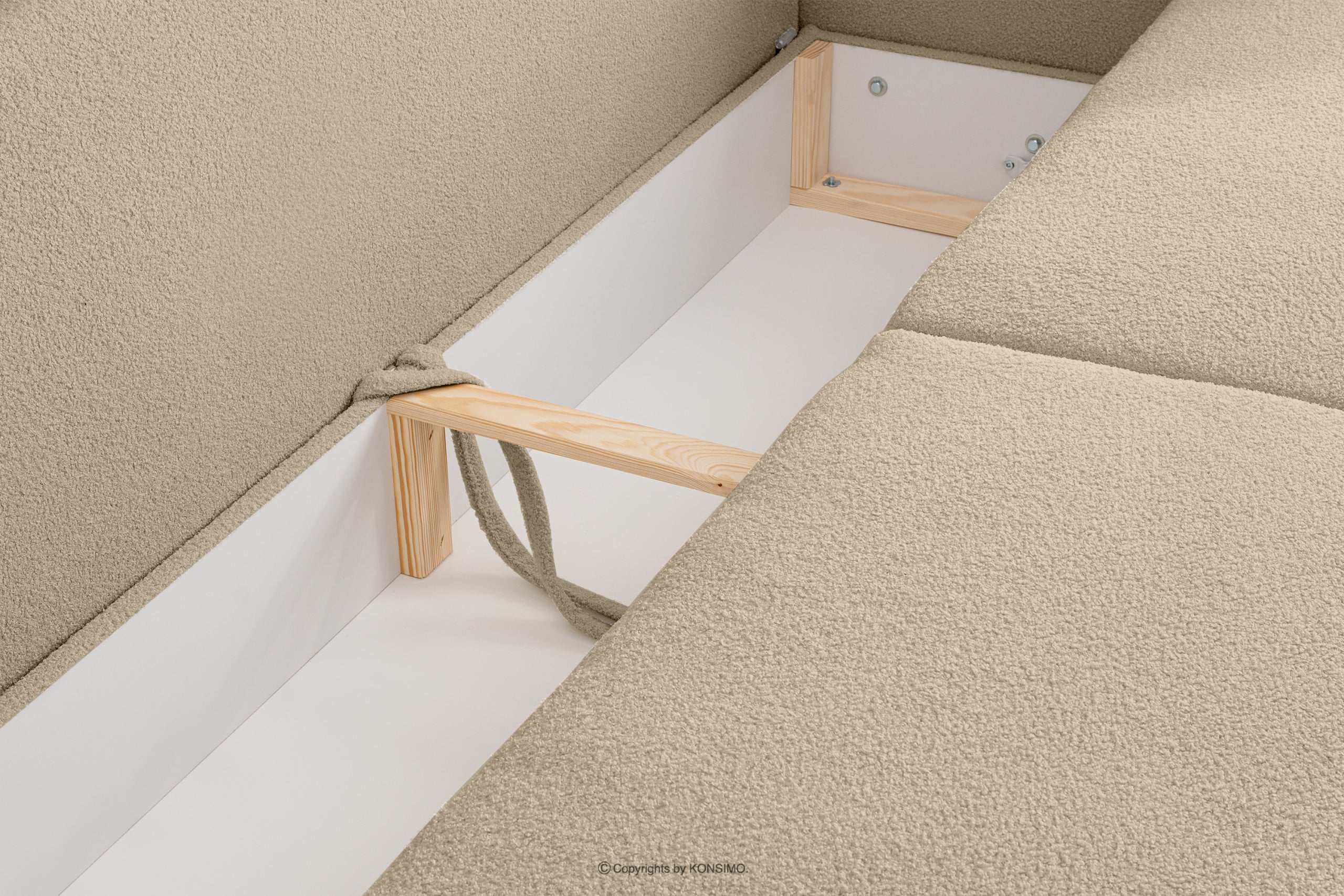 dla produktu Narożnik jasnobeżowa rozkładany w tkaninie boucle prawy