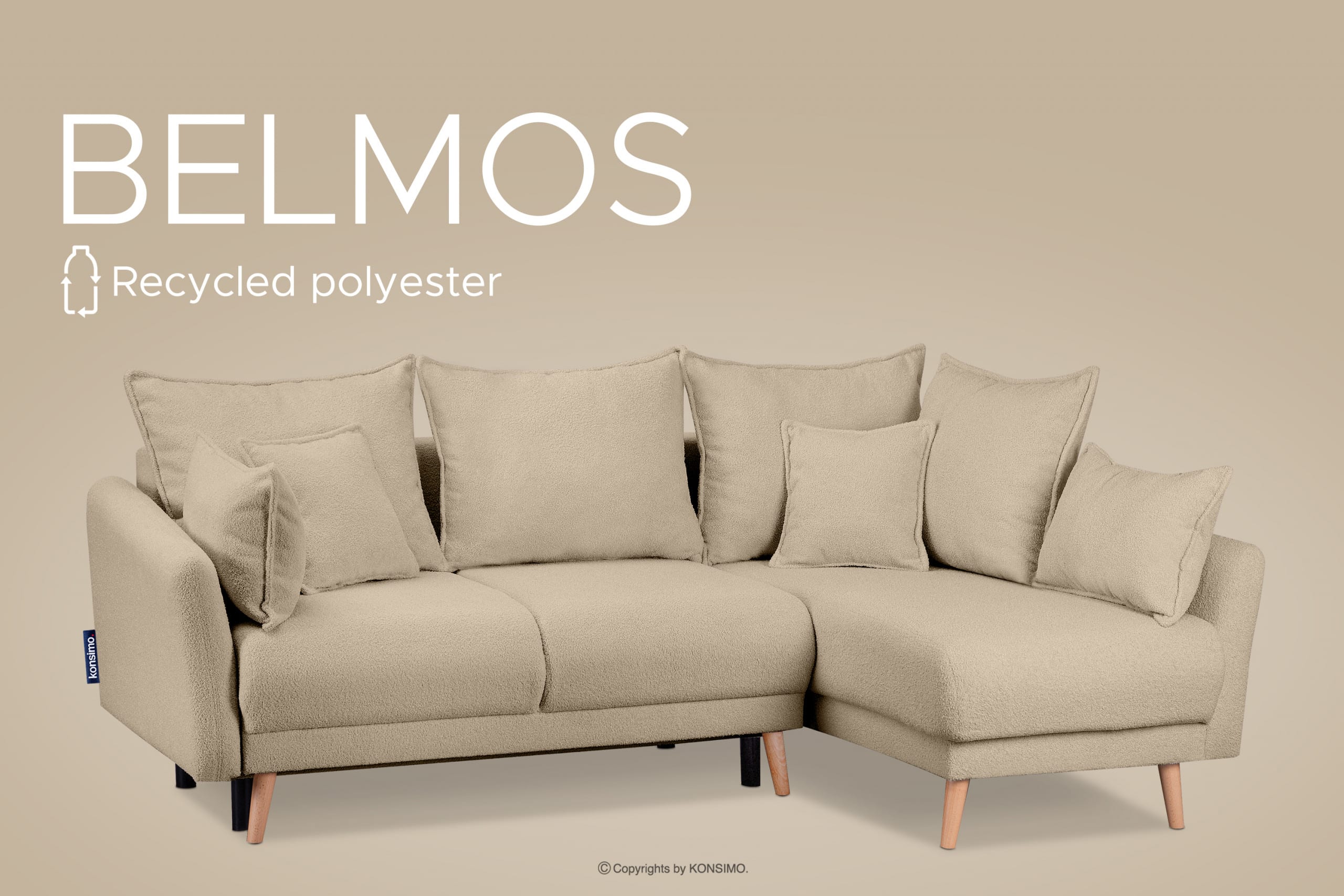 BELMOS zobacz całą kolekcję Narożnik jasnobeżowa rozkładany w tkaninie boucle prawy- kolor jasny beżowy