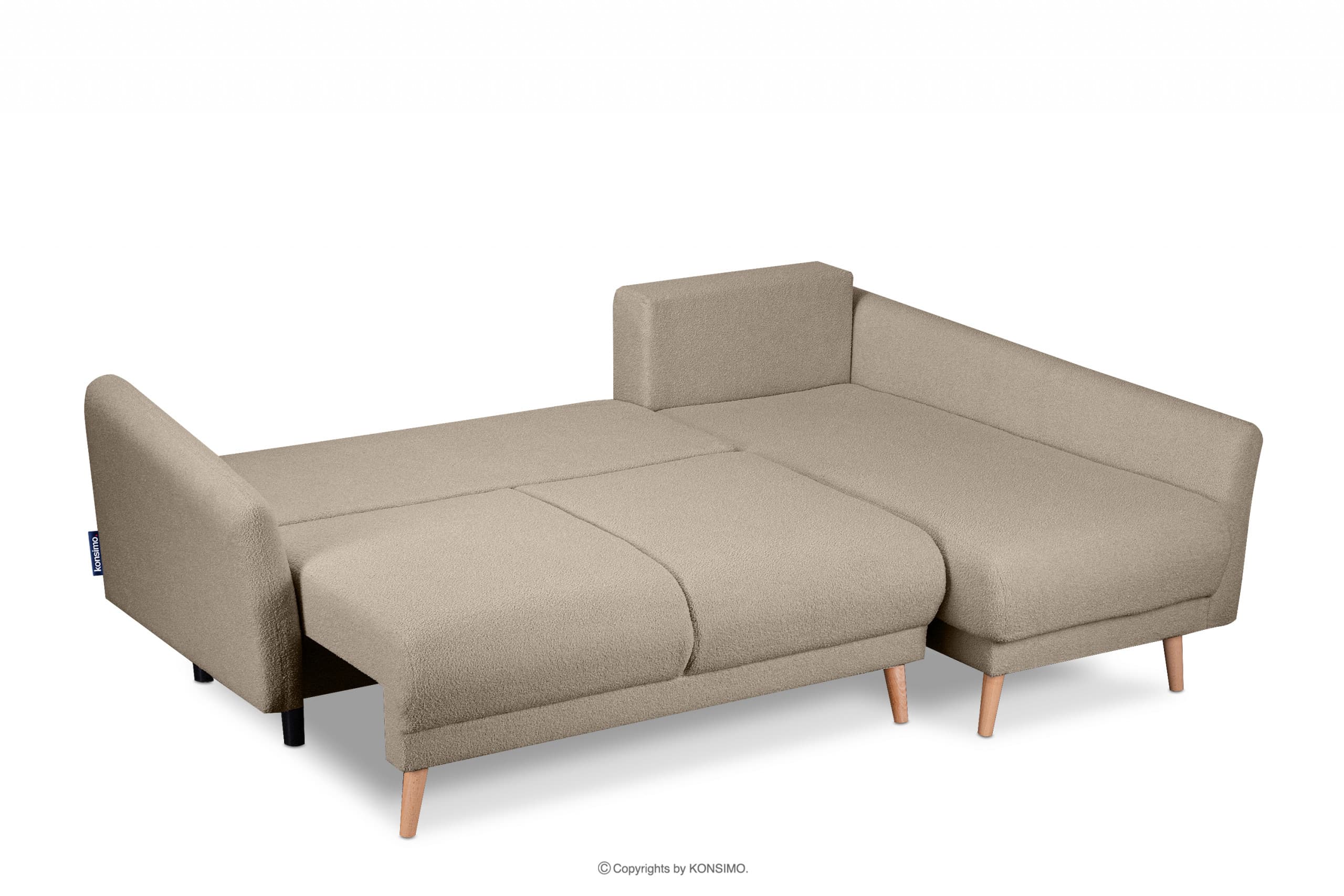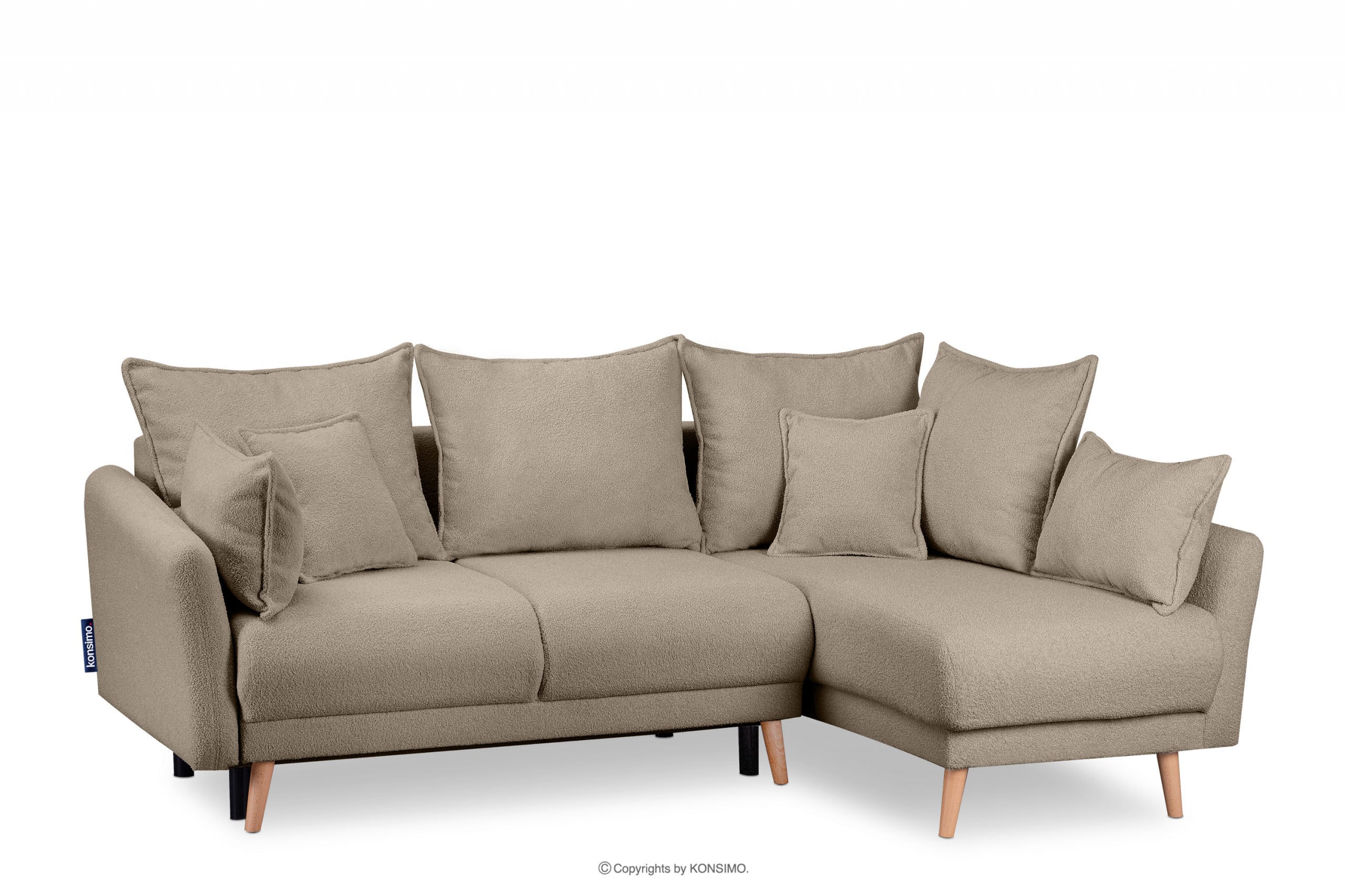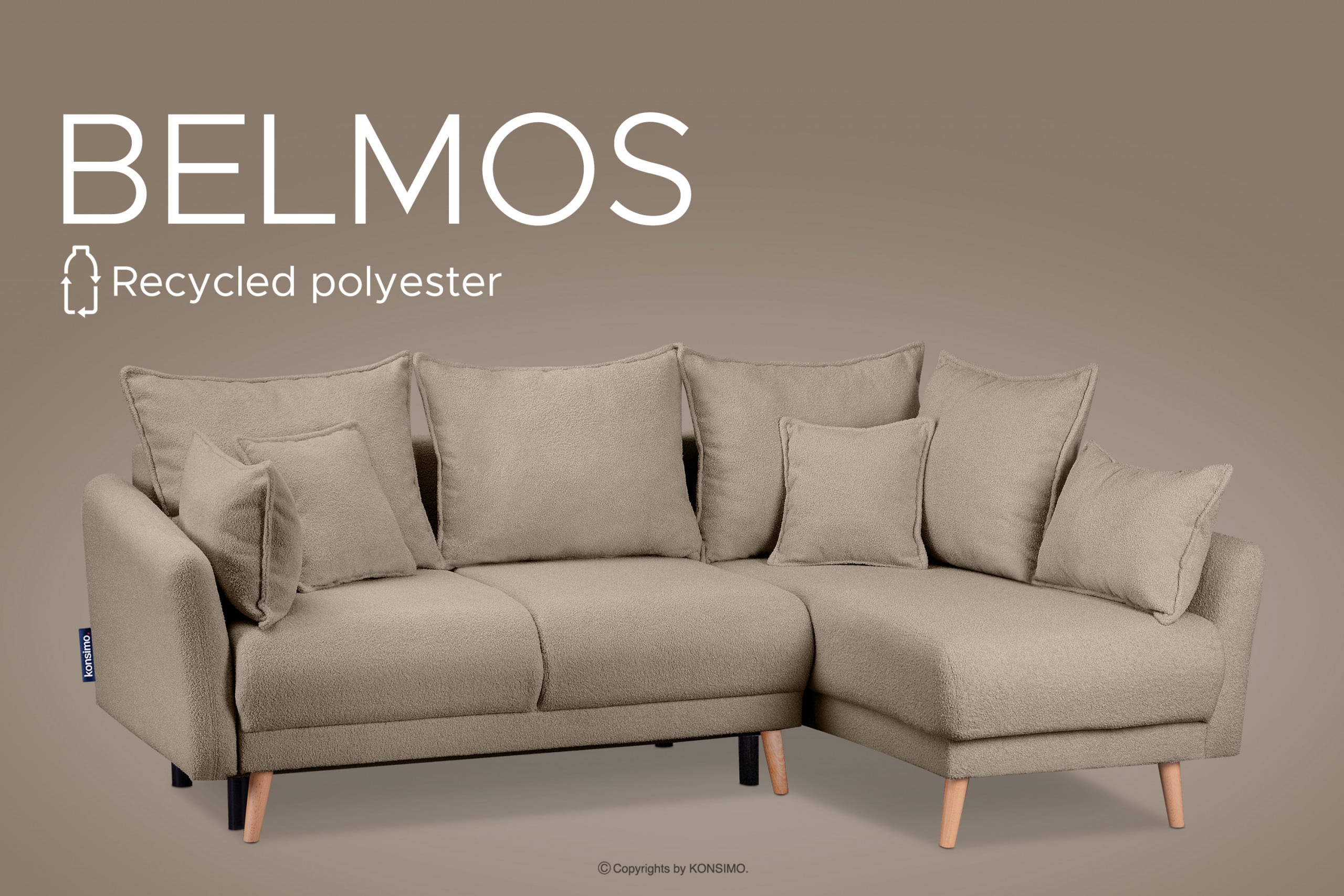 BELMOS zobacz całą kolekcję Narożnik brązowy rozkładany w tkaninie boucle prawy- kolor brązowy