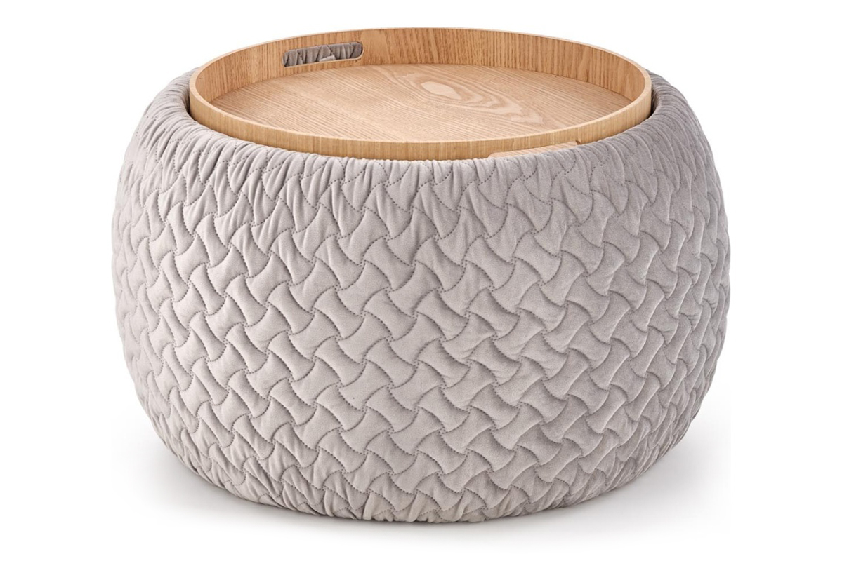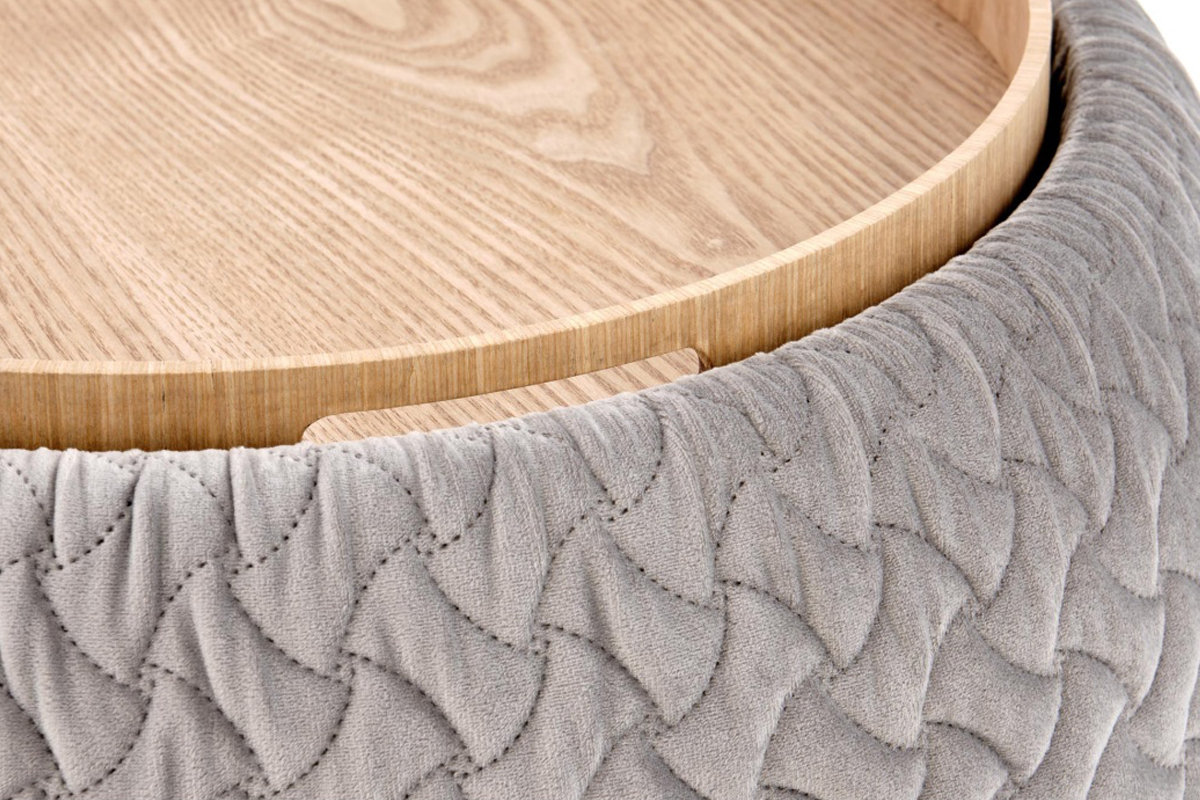 RYNGI zobacz całą kolekcję Welurowy puf stolik kawowy z pojemnikiem- kolor szary