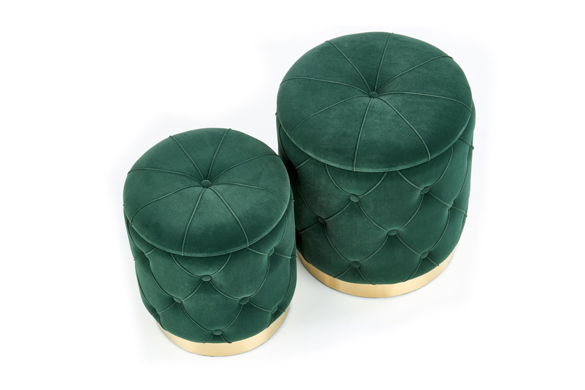 AMBI zobacz całą kolekcję Zestaw 2 okrągłych welurowych puf w stylu glamour butelkowa zieleń- kolor ciemny zielony/złoty