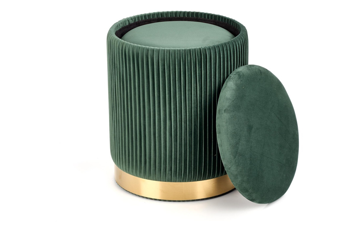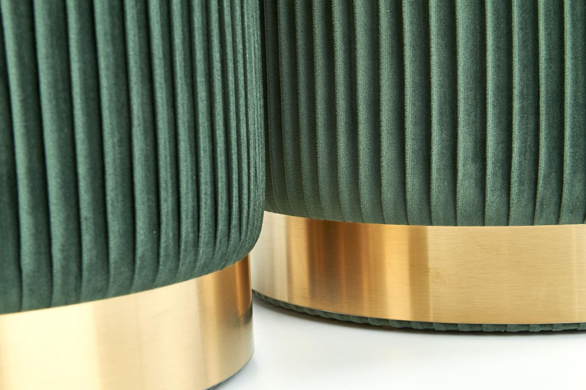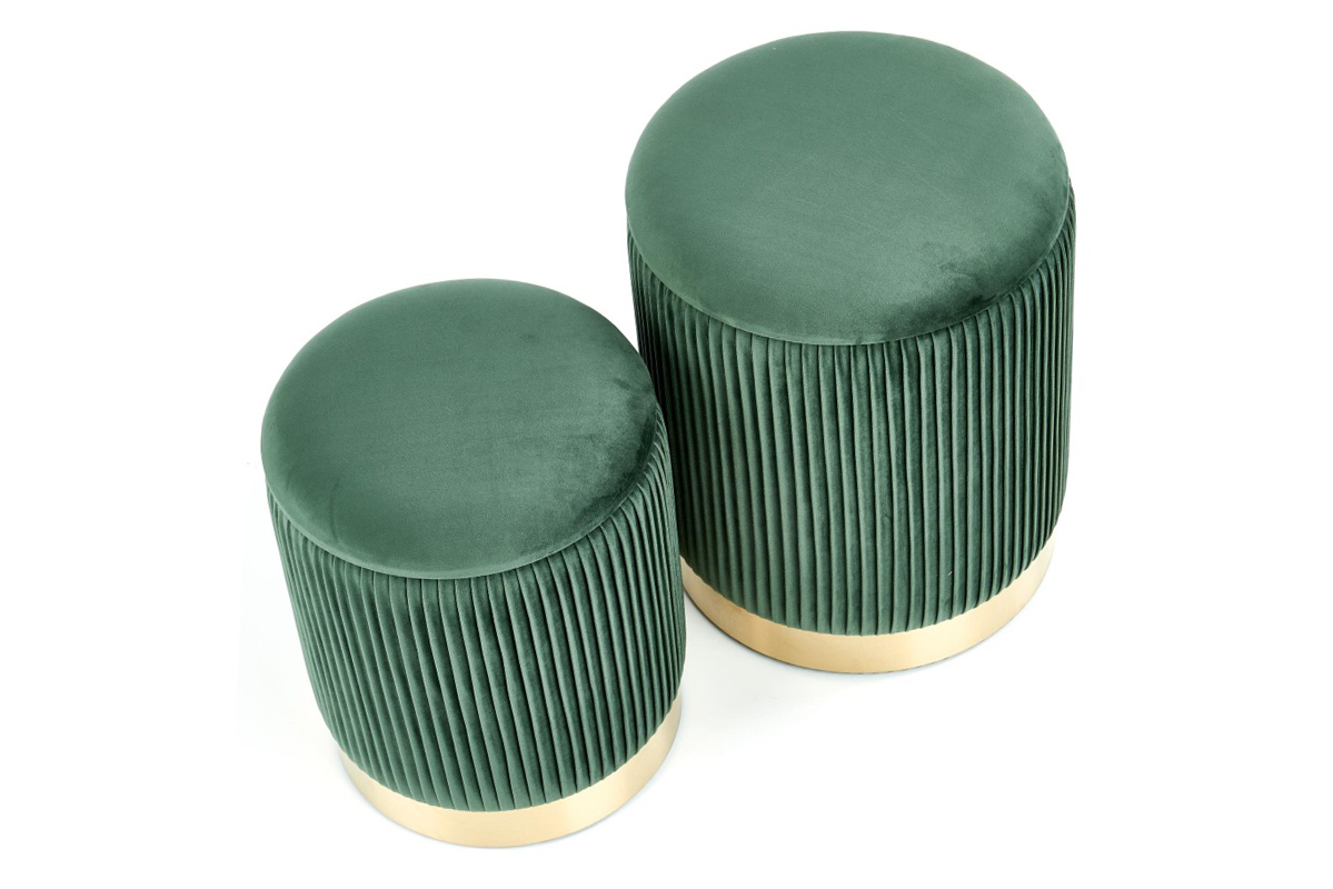 BRITIS zobacz całą kolekcję Zestaw 2 okrągłych welurowych puf z pojemnikiem butelkowa zieleń- kolor ciemny zielony/złoty