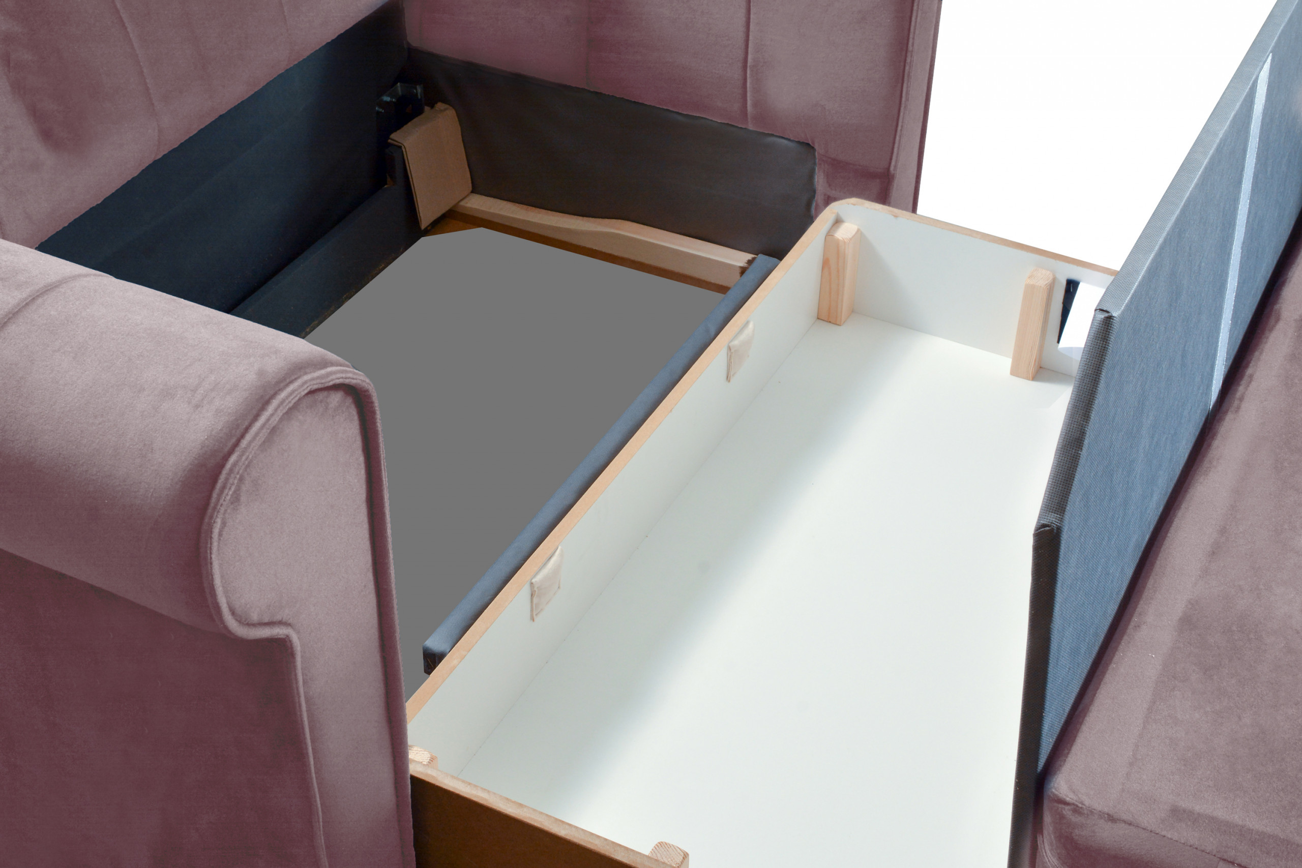 - Dodatkowe informacje: 2x poduszka ozdobna 45×50 cm, ozdobne lamówki, plecy tapicerowane tkaniną