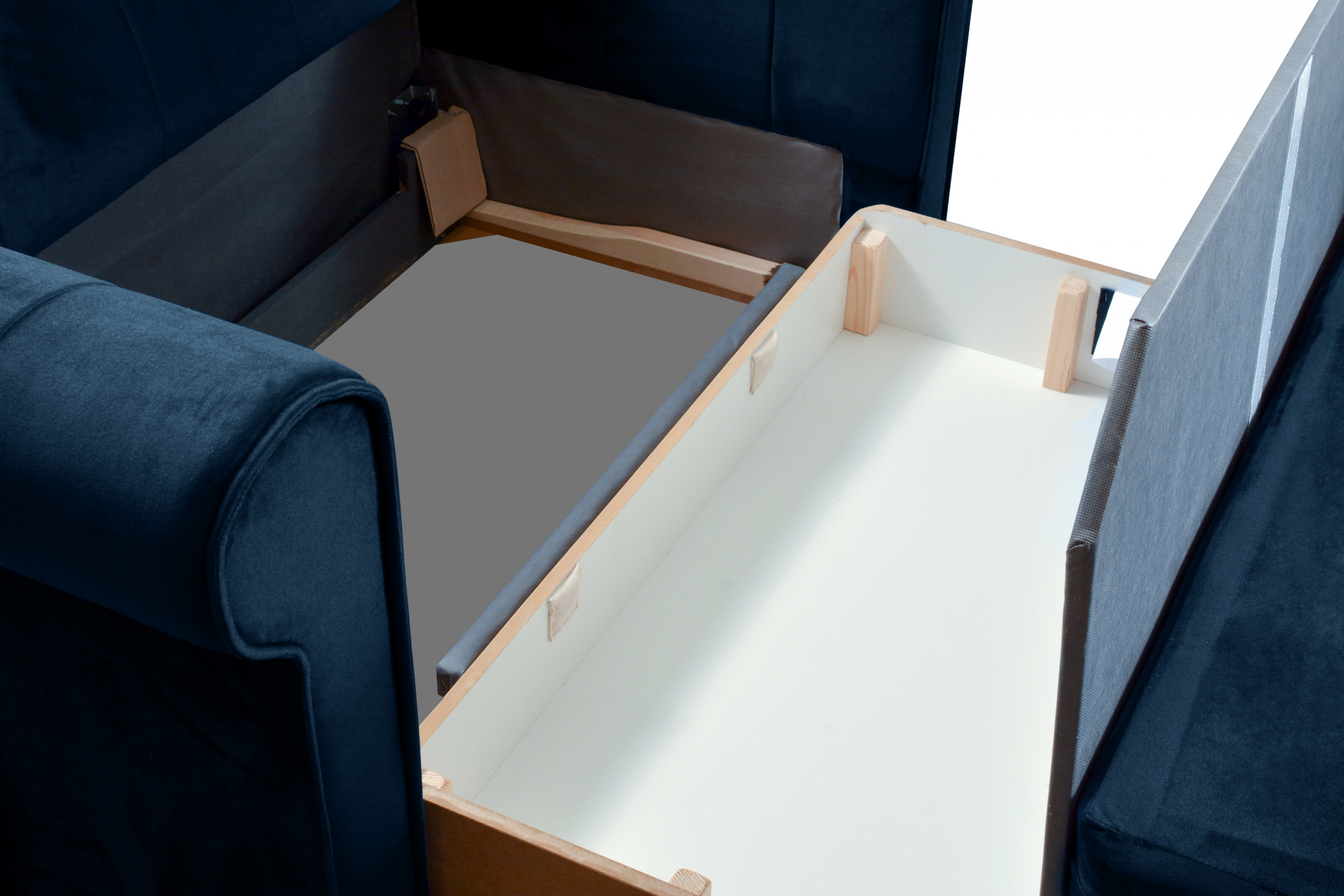 - Materiał stelaża: płyta pliśniowa 3 mm, MDF 15 mm, płyta wiórowa 15 mm, elementy z drewna iglastego