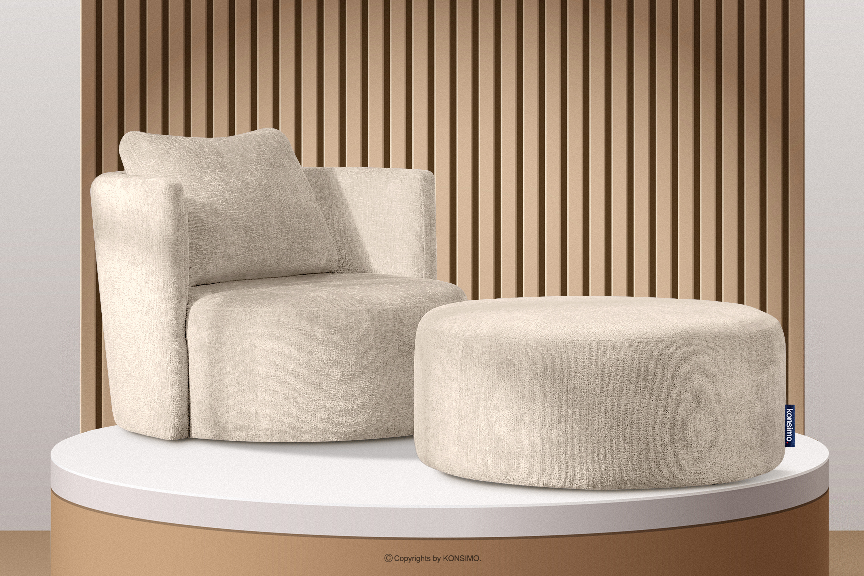 RAGGI zobacz całą kolekcję Fotel obrotowy w tkaninie szenil ecru- kolor ecru