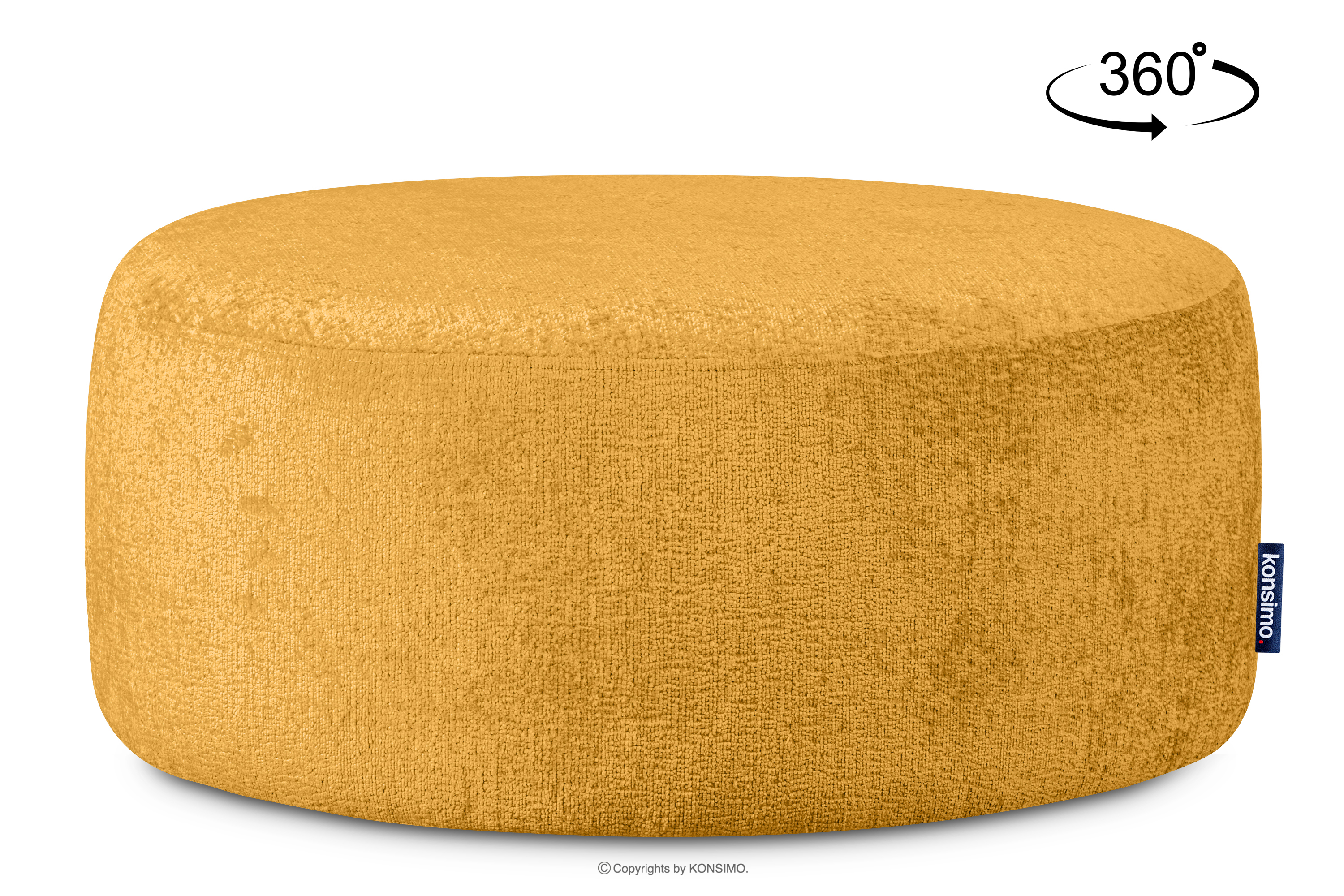 Puf obrotowy w tkaninie szenil musztardowy RAGGI - kolor musztardowy