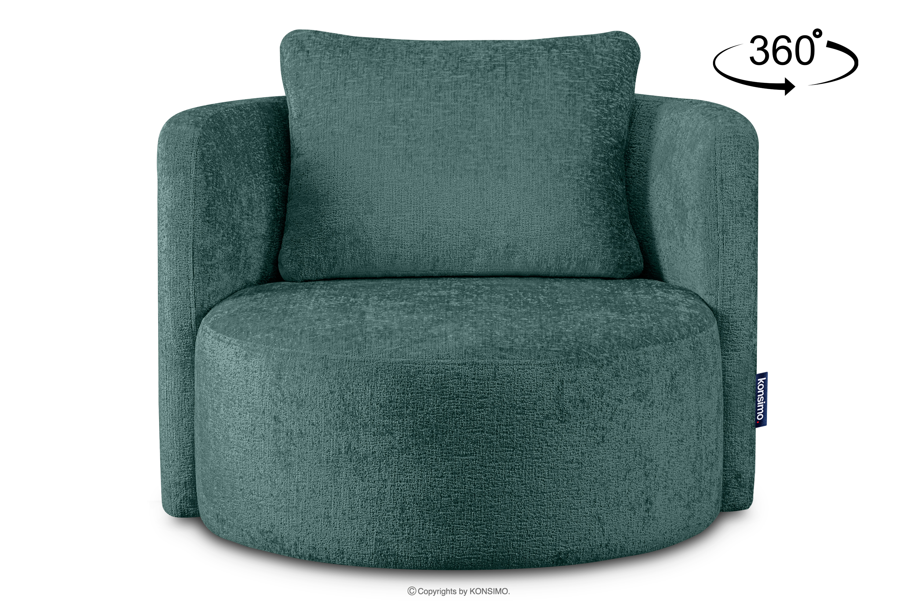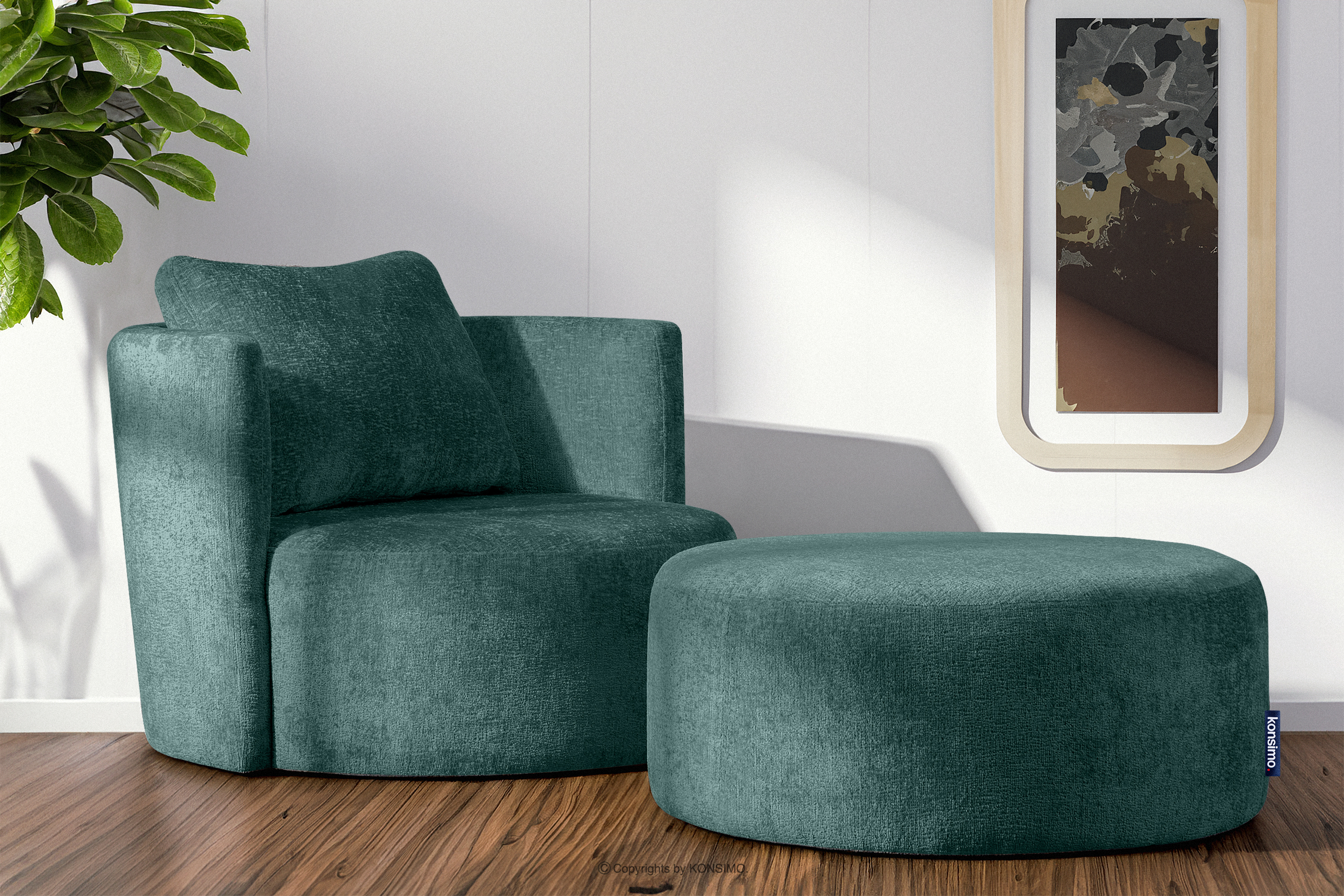 RAGGI zobacz całą kolekcję Zestaw fotel i puf obrotowy w tkaninie szenil morski- kolor morski