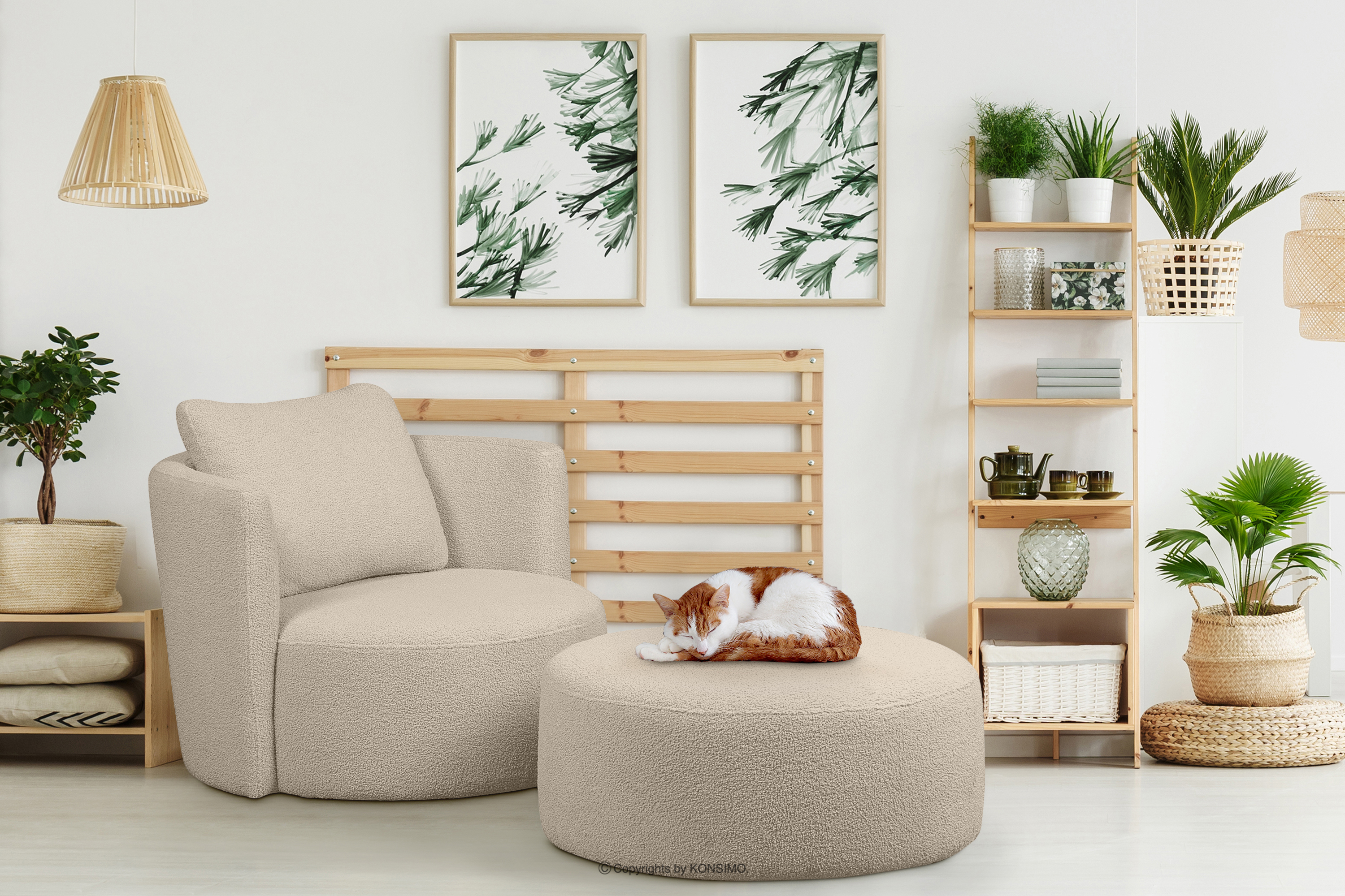 dla produktu Fotel i puf obrotowy boucle jasnobeżowy baranek