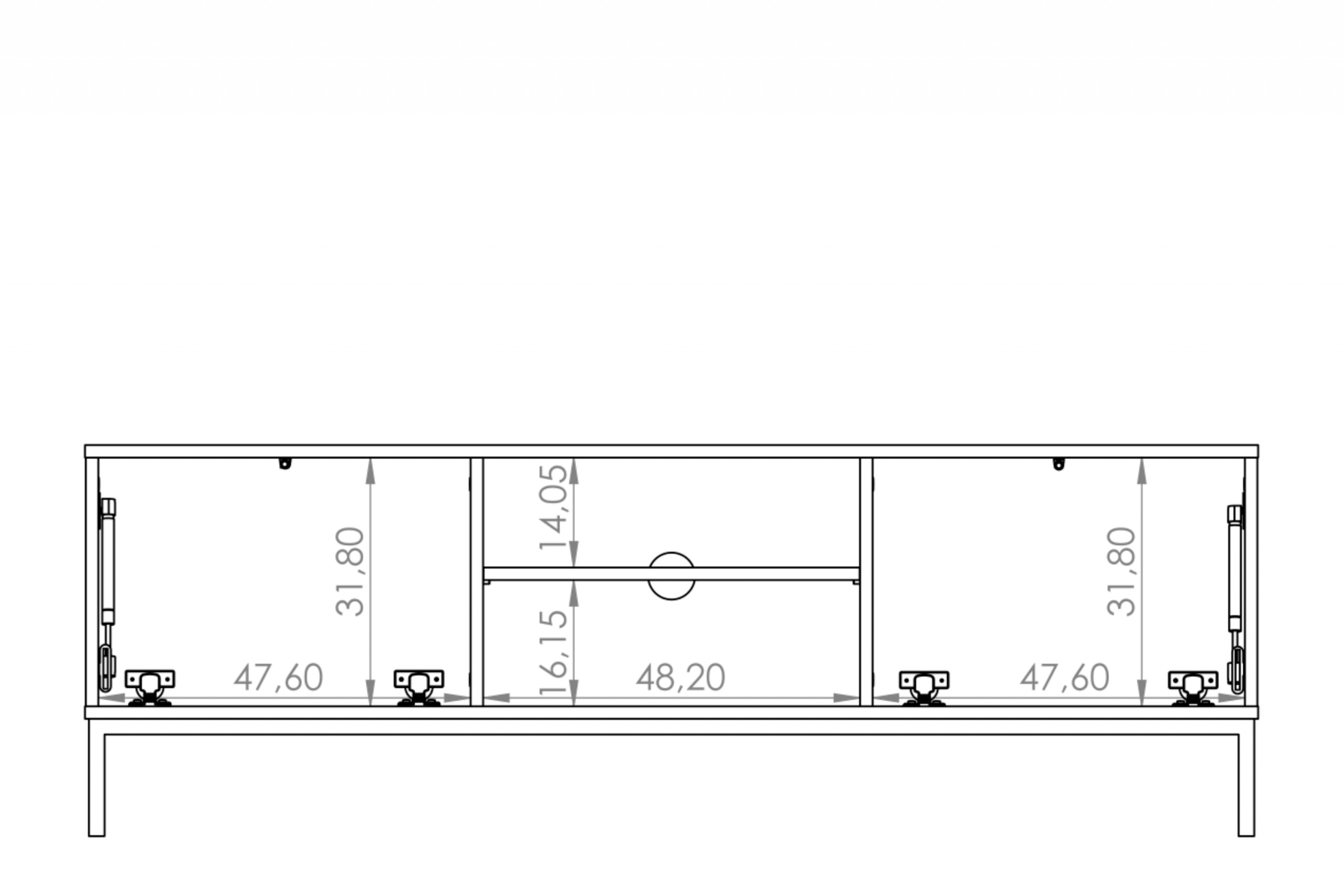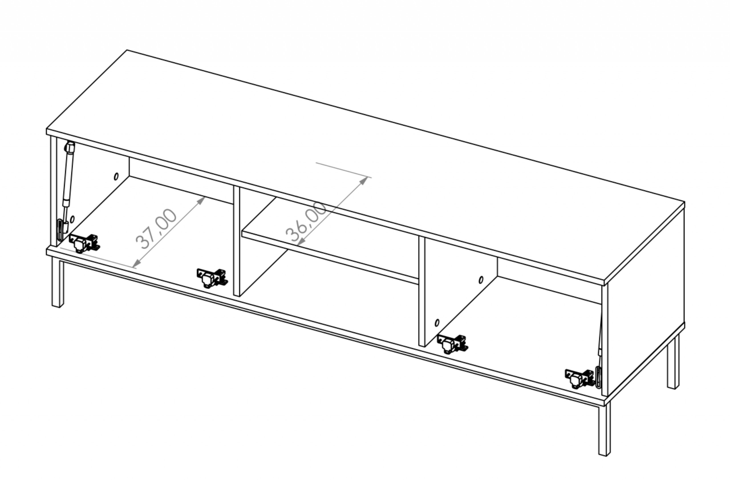 Stolik został wykonany z płyty wiórowej, gwarantując stabilność i wytrzymałość na lata, a tylna ściana z płyty HDF. Z prawej i lewej strony są uchylne drzwi, otwierane za pomocą siłowników gazowych. Można za nimi przechowywać podręczne przedmioty, które niekoniecznie chcemy eksponować.