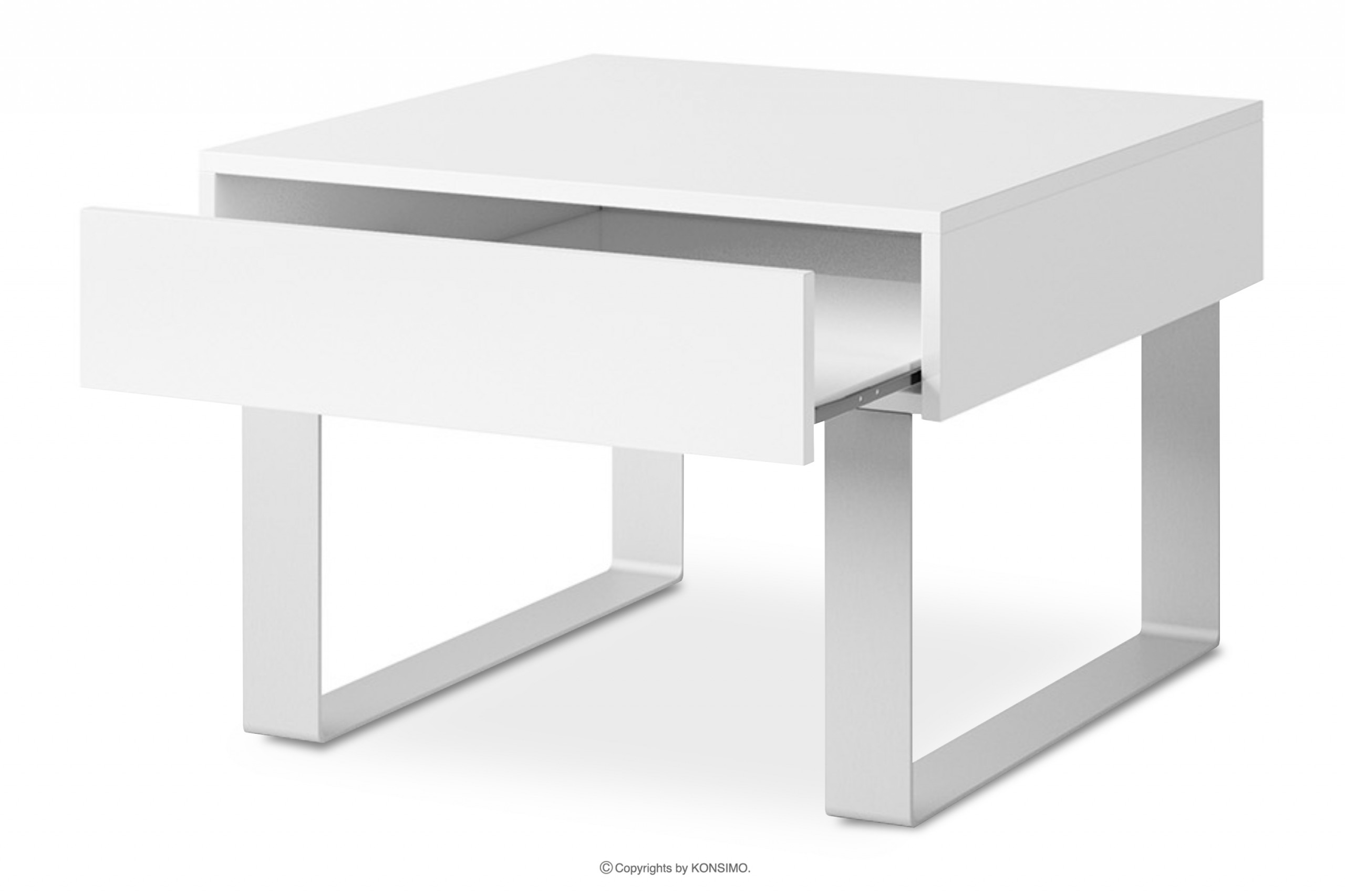 PAVO zobacz całą kolekcję Mały stolik kawowy biały połysk z szufladą- kolor biały połysk