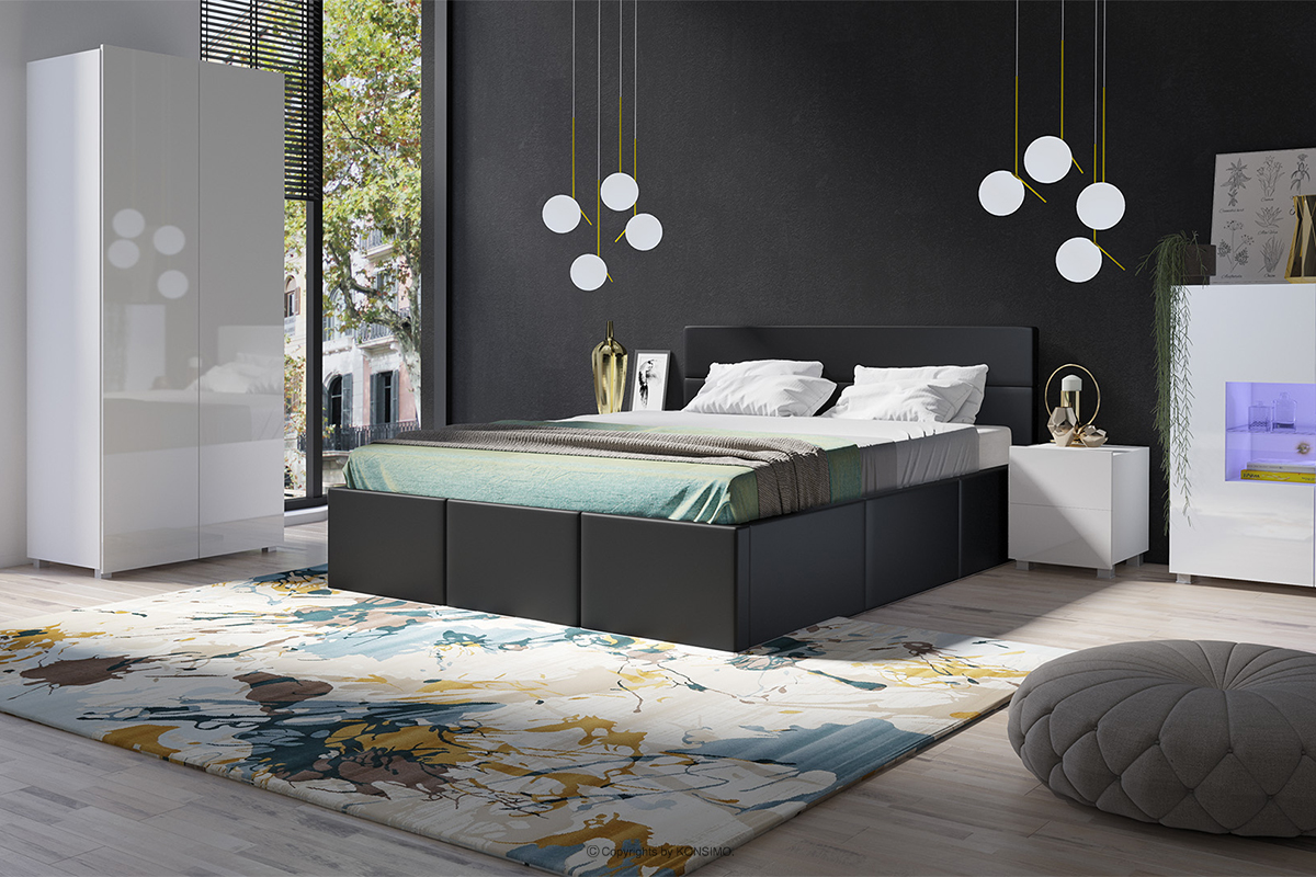 PAVO zobacz całą kolekcję Łóżko podwójne nowoczesne ekoskóra czarny- kolor czarny