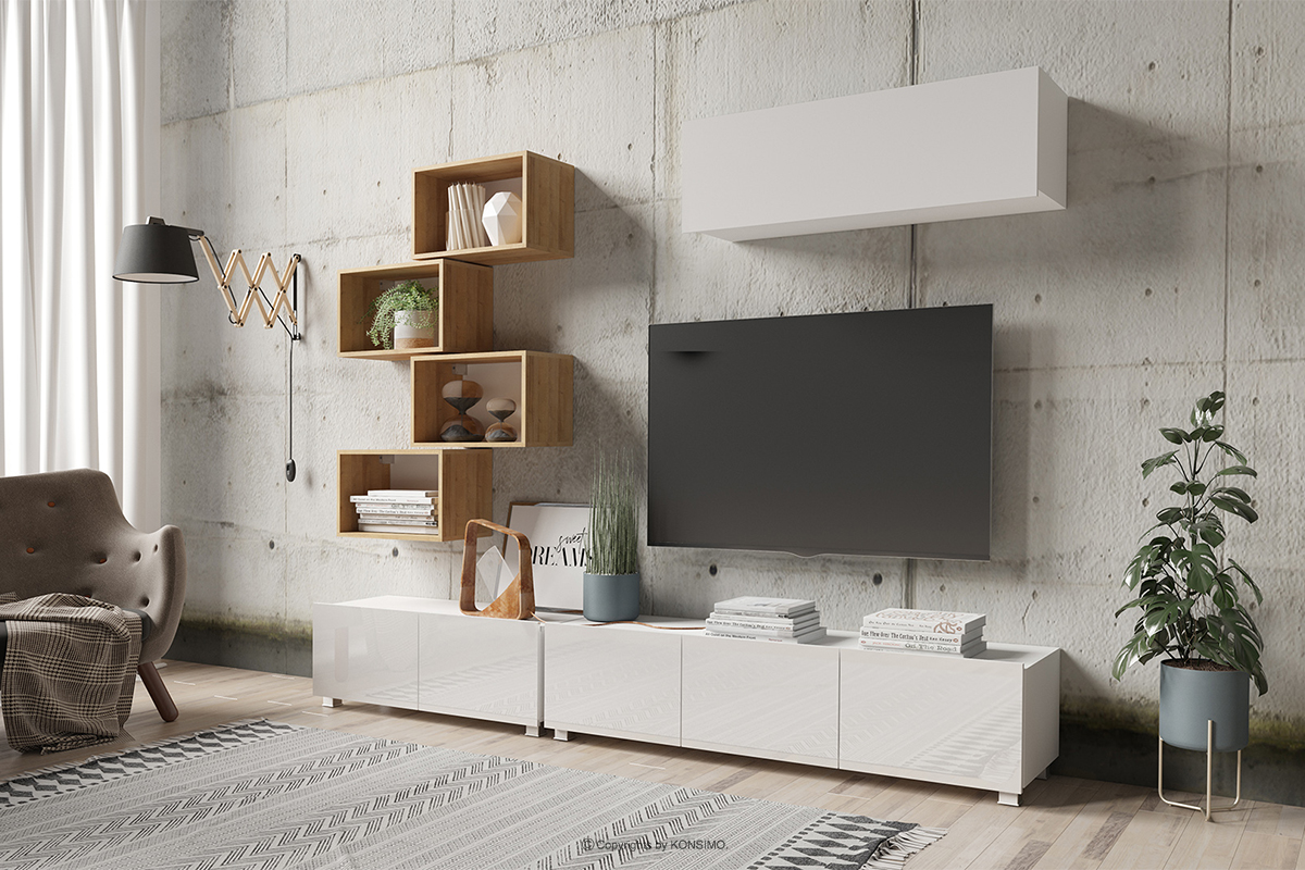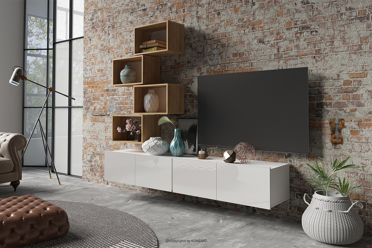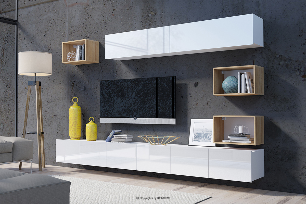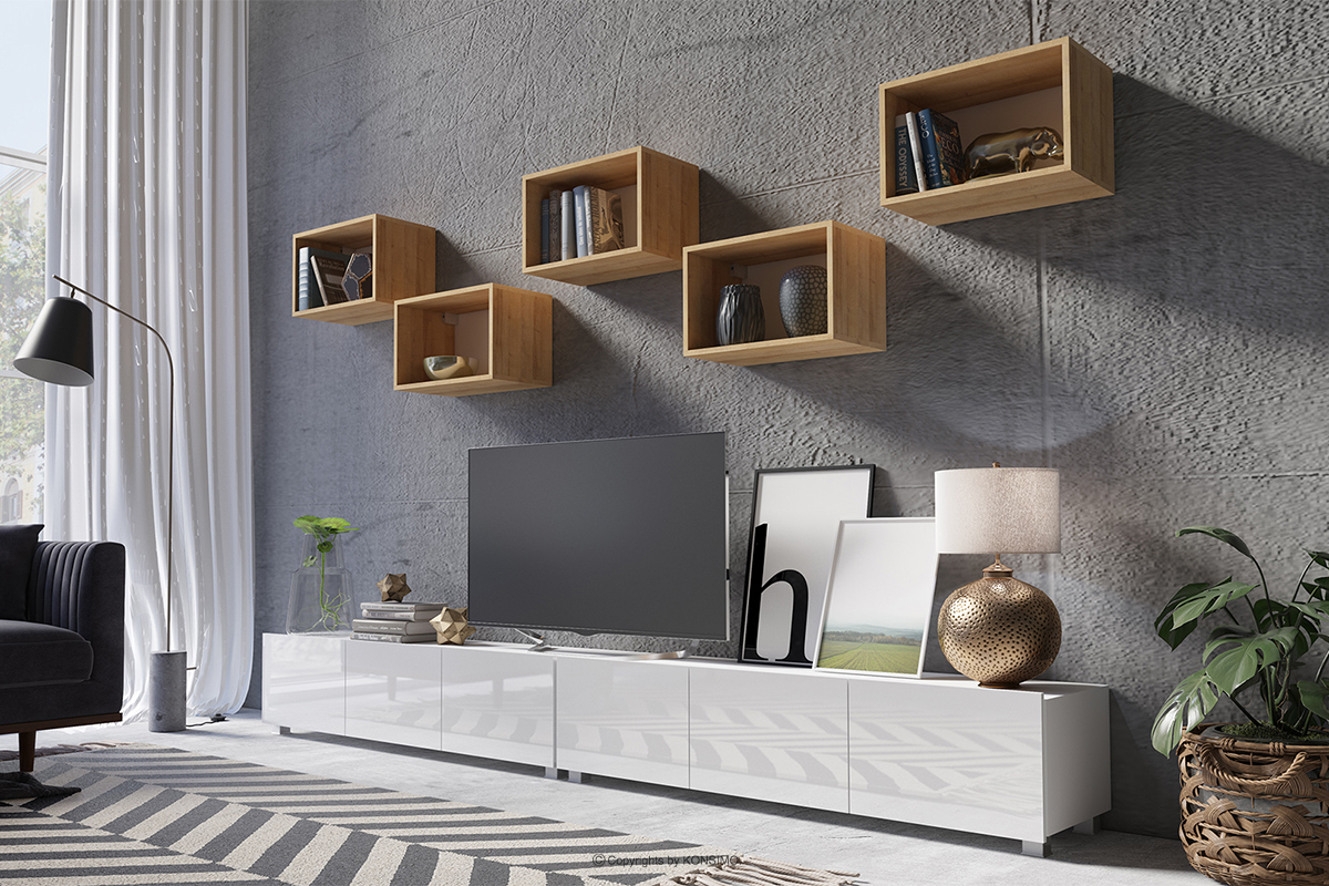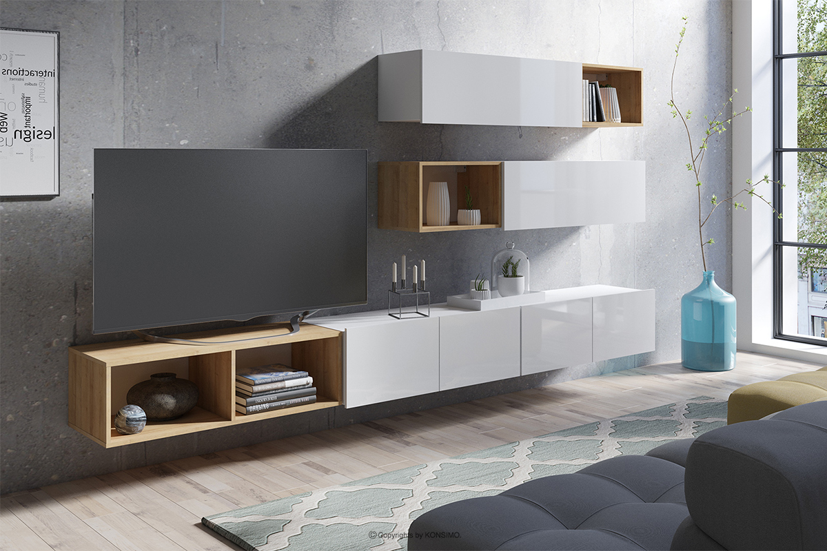 PAVO zobacz całą kolekcję Mała półka wisząca dąb złoty 50 cm- kolor dąb złoty/biały