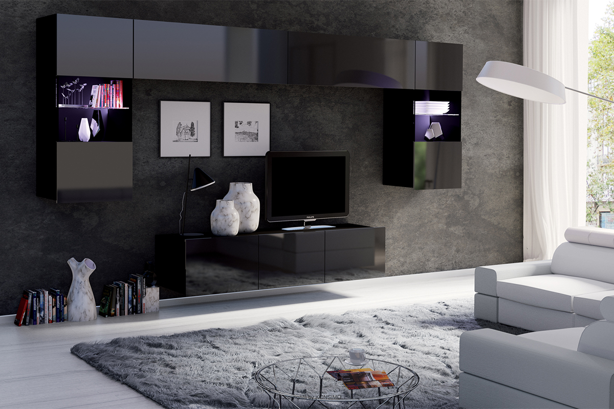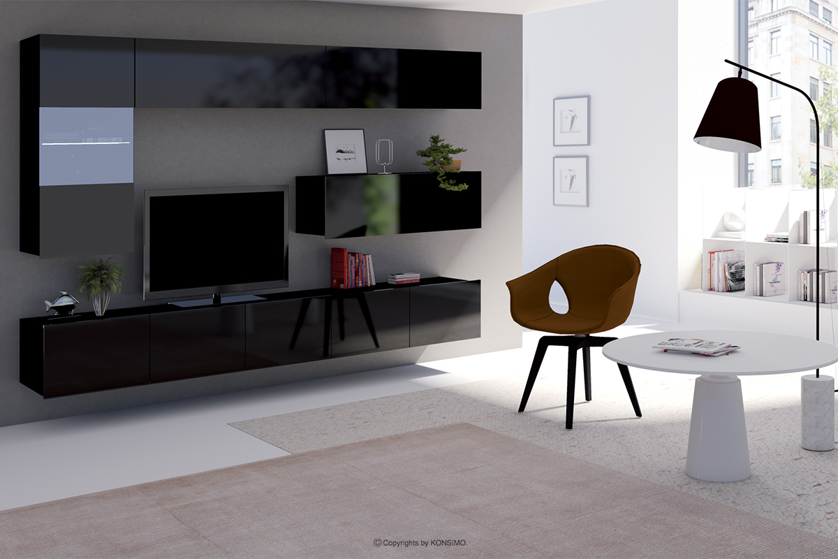 PAVO zobacz całą kolekcję Witryna wisząca czarny połysk z podświetleniem- kolor czarny połysk/czarny matowy