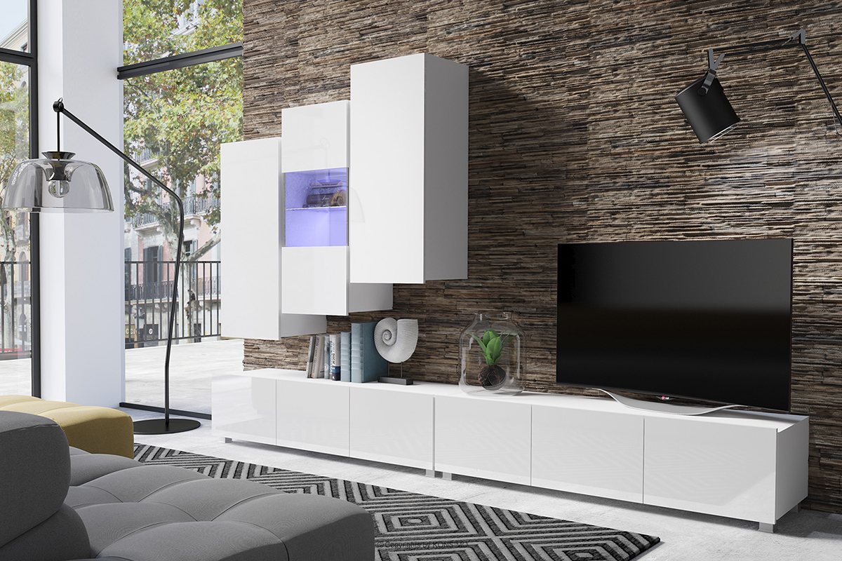 PAVO Witryna wisząca biały połysk z podświetleniem