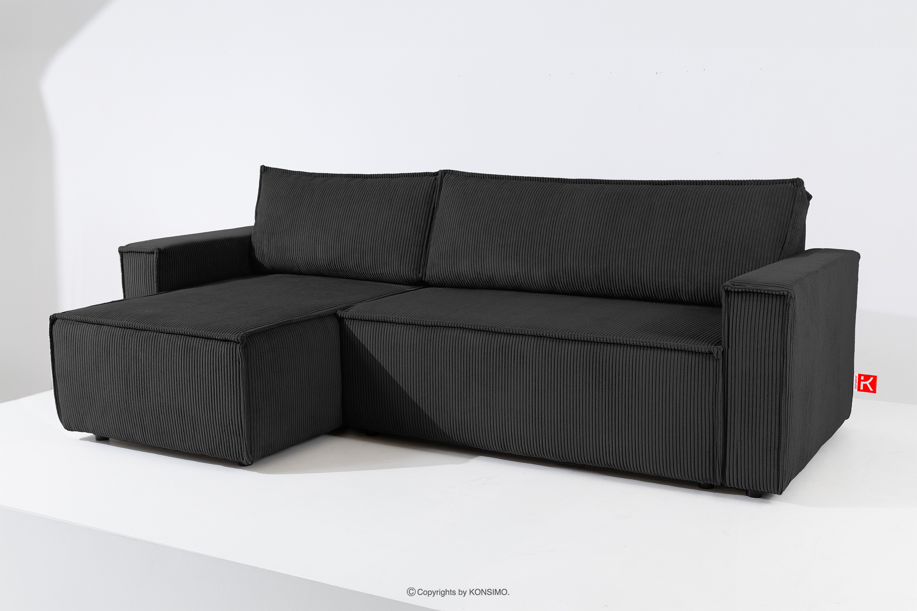 NAPI Duży rozkładany narożnik sztruks czarny prawy/lewy