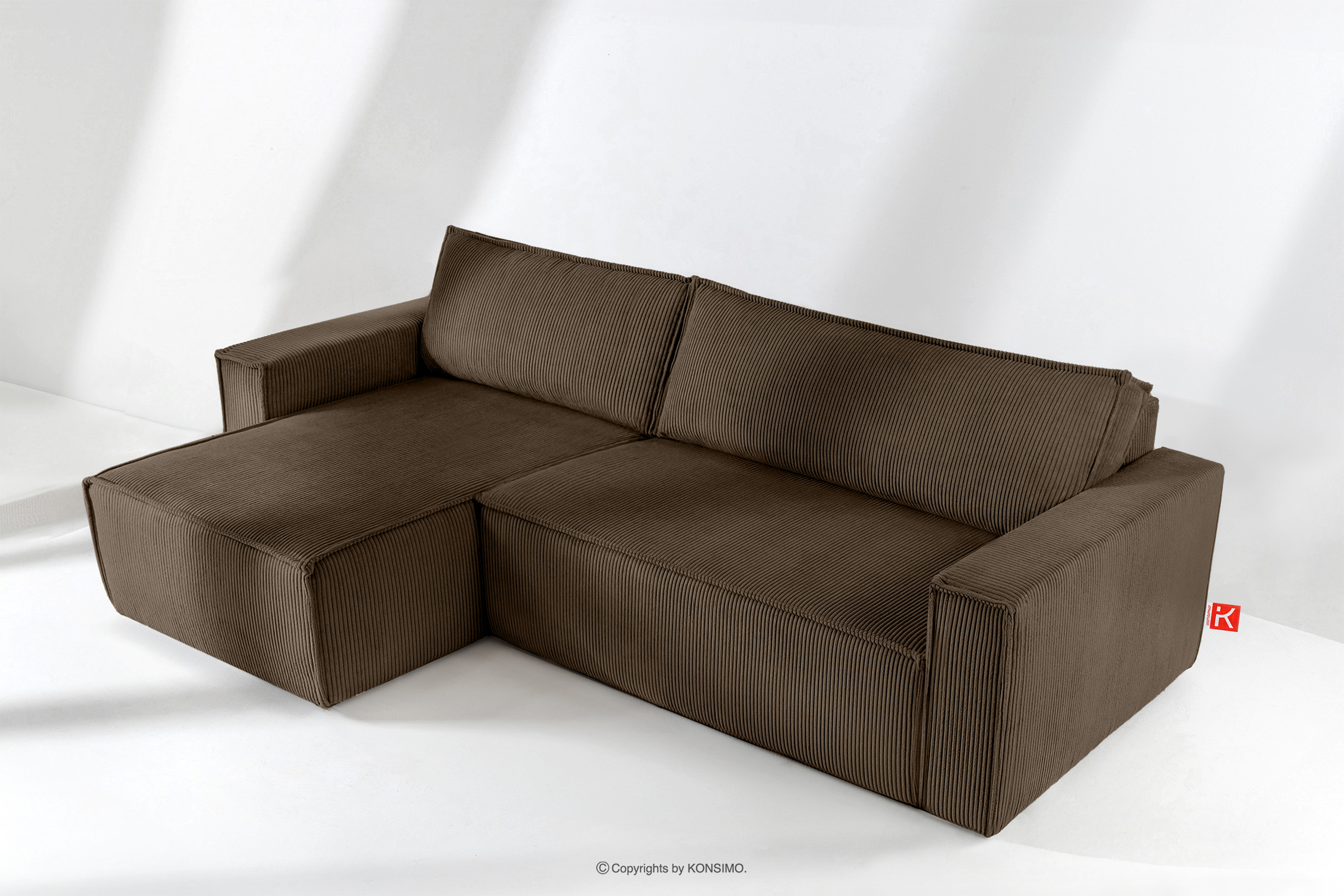 NAPI zobacz całą kolekcję Duży rozkładany narożnik sztruks ciemny brązowy prawy/lewy- kolor ciemny brązowy