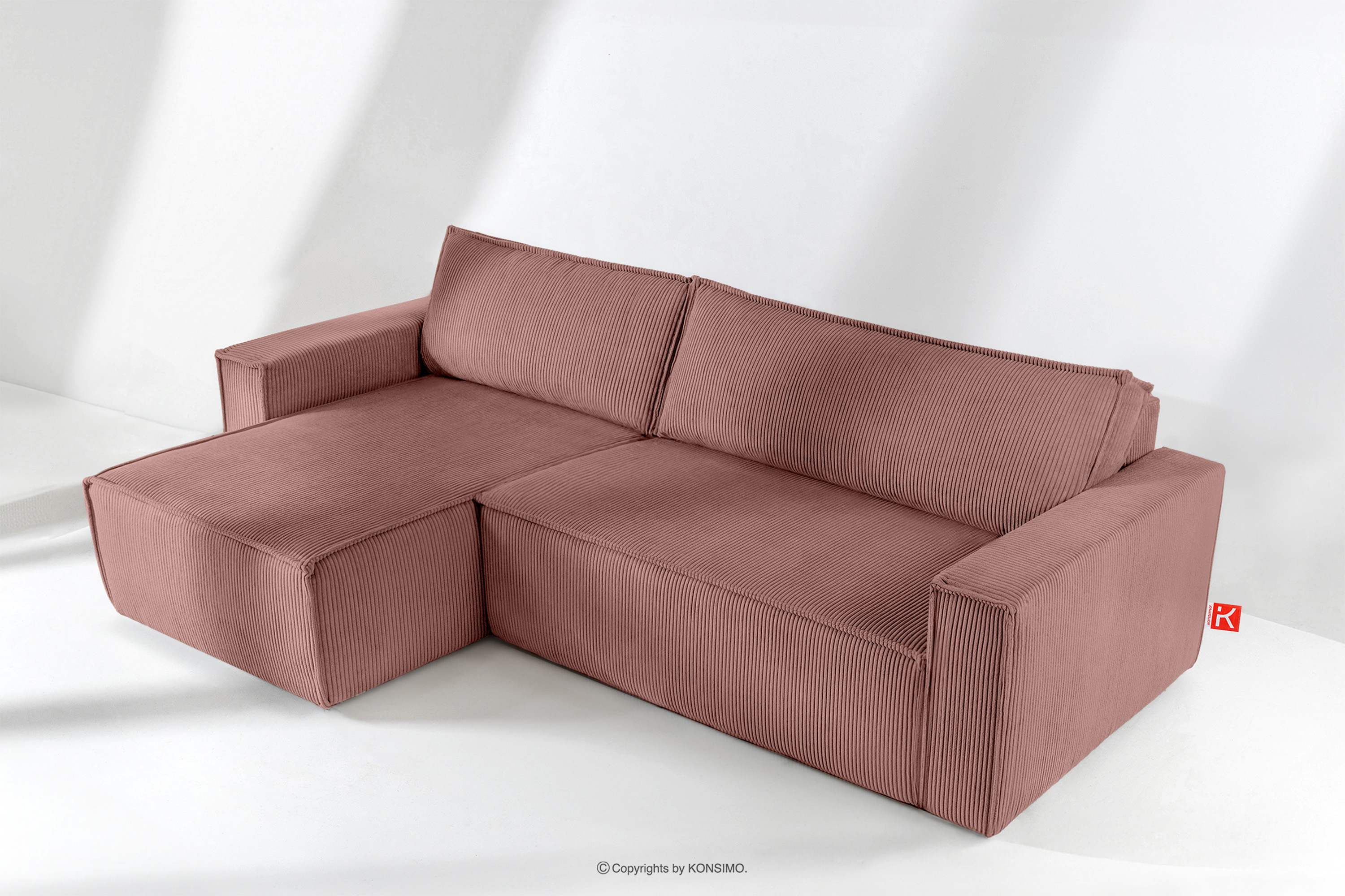 NAPI zobacz całą kolekcję Duży rozkładany narożnik sztruks różowy prawy/lewy- kolor różowy