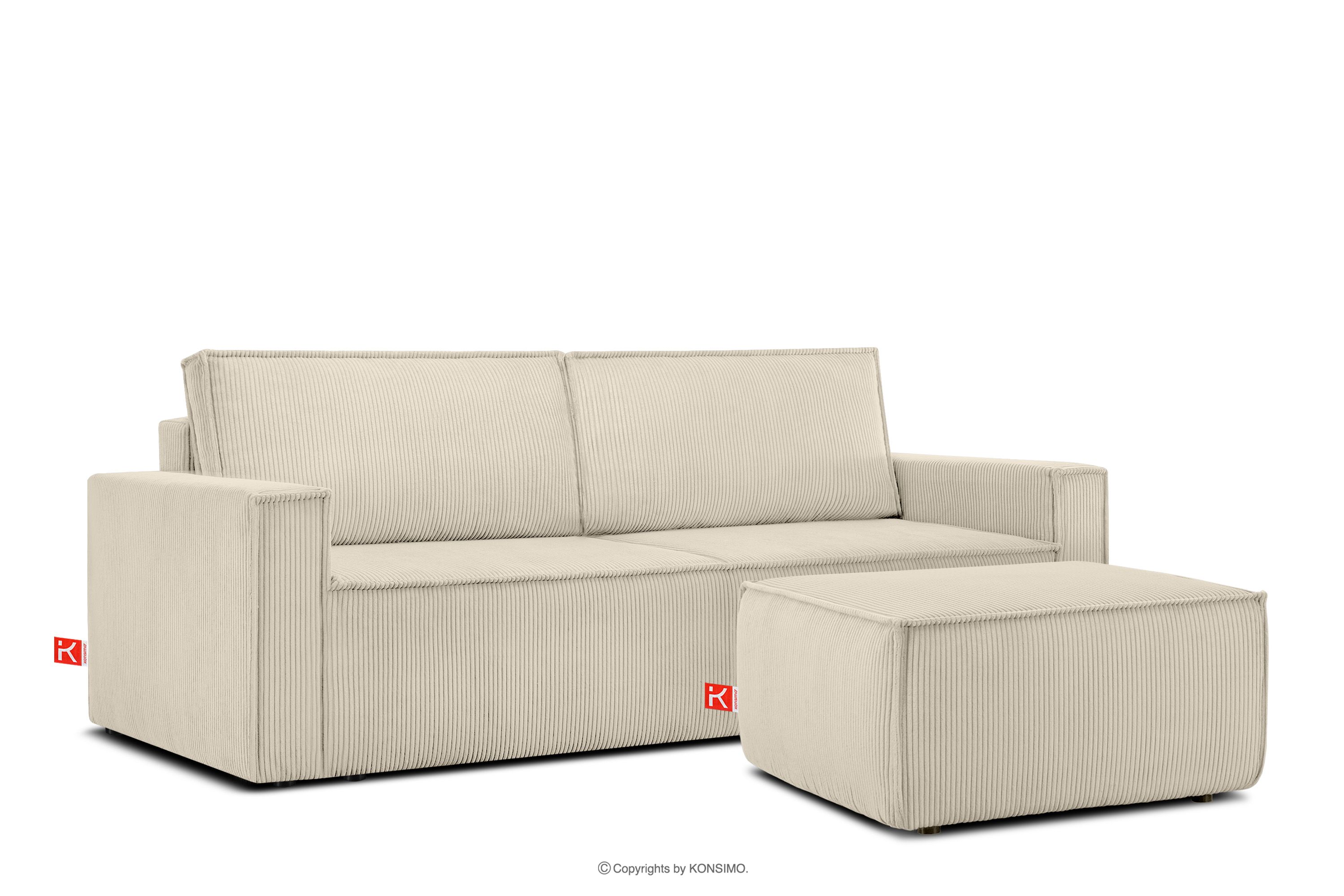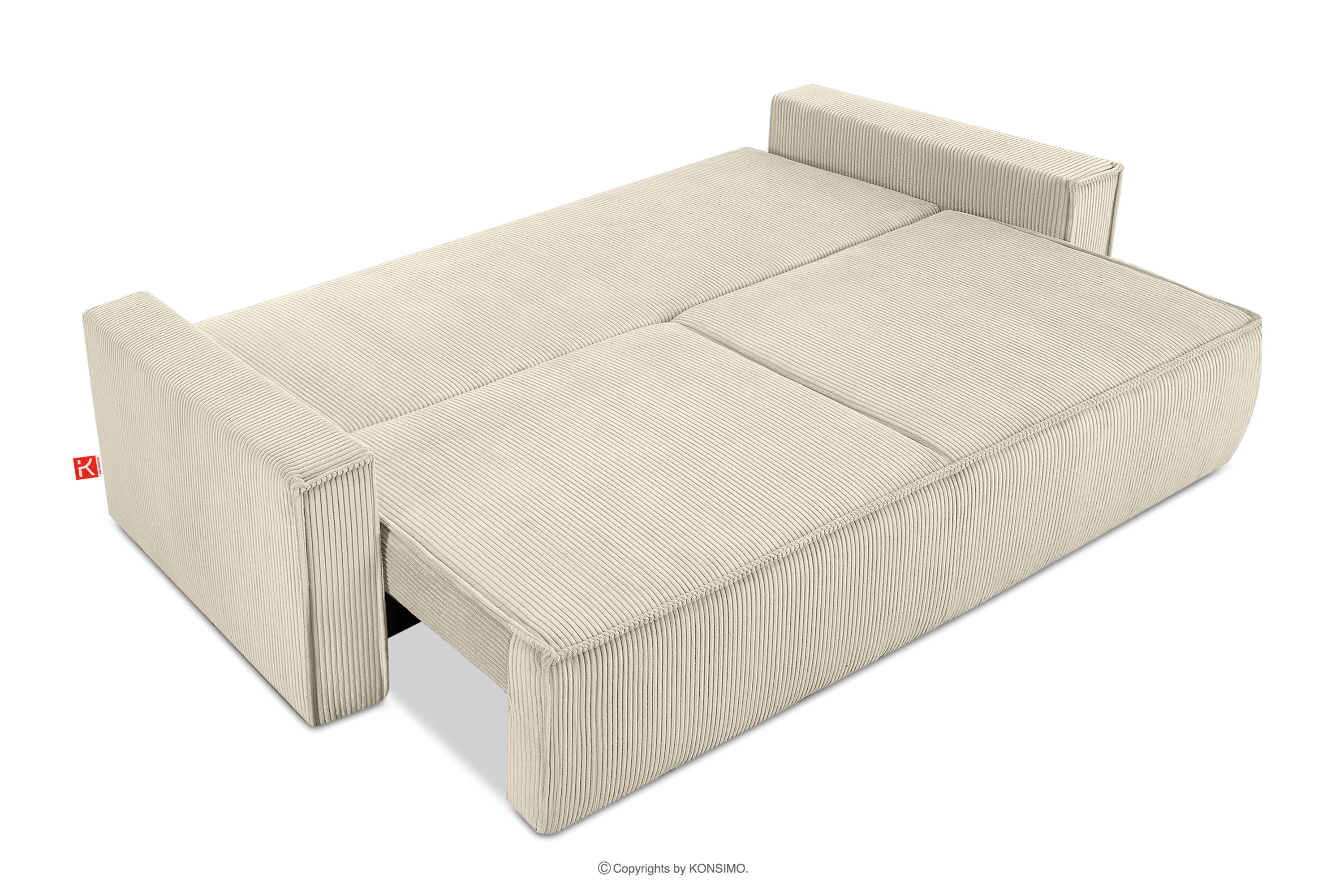 Sofa 3 rozkładana sztruks kremowa NAPI - kolor kremowy