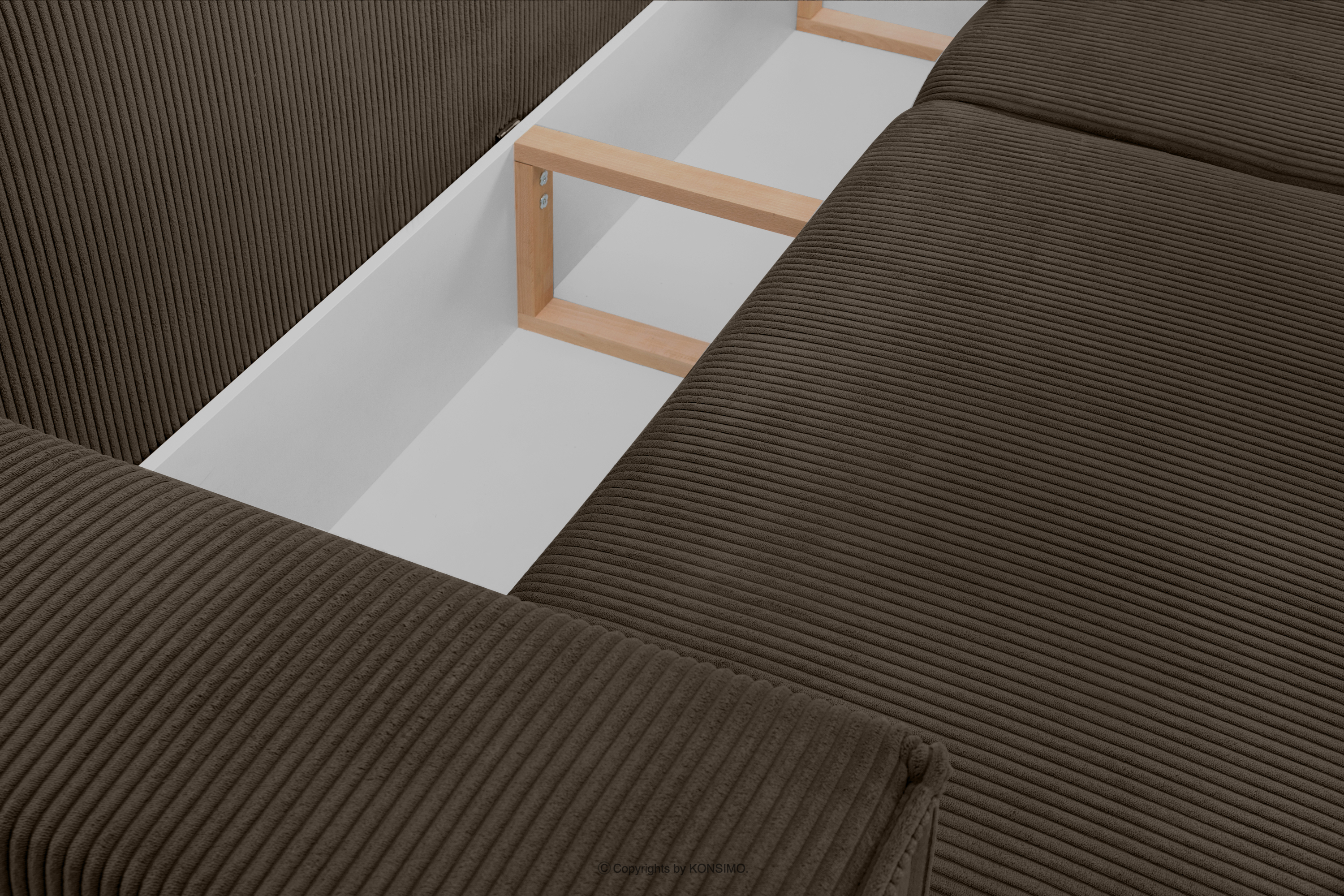 NAPI zobacz całą kolekcję Sofa rozkładana 3 osobowa z pojemnikiem na pościel brązowa- kolor brązowy