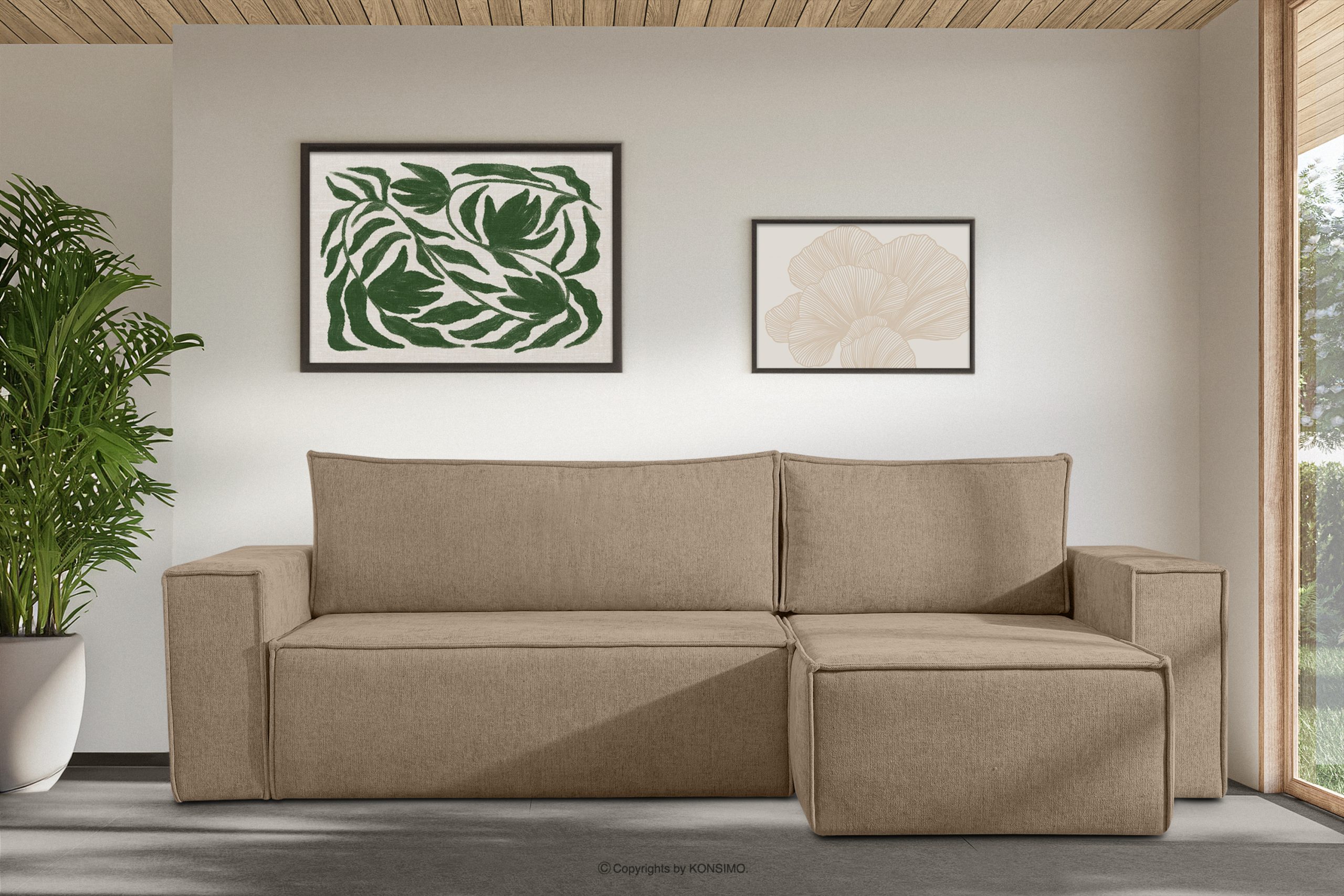 NAPI II Narożnik w tkaninie plecionej z funkcją spania jasny brązowy lewy/prawy