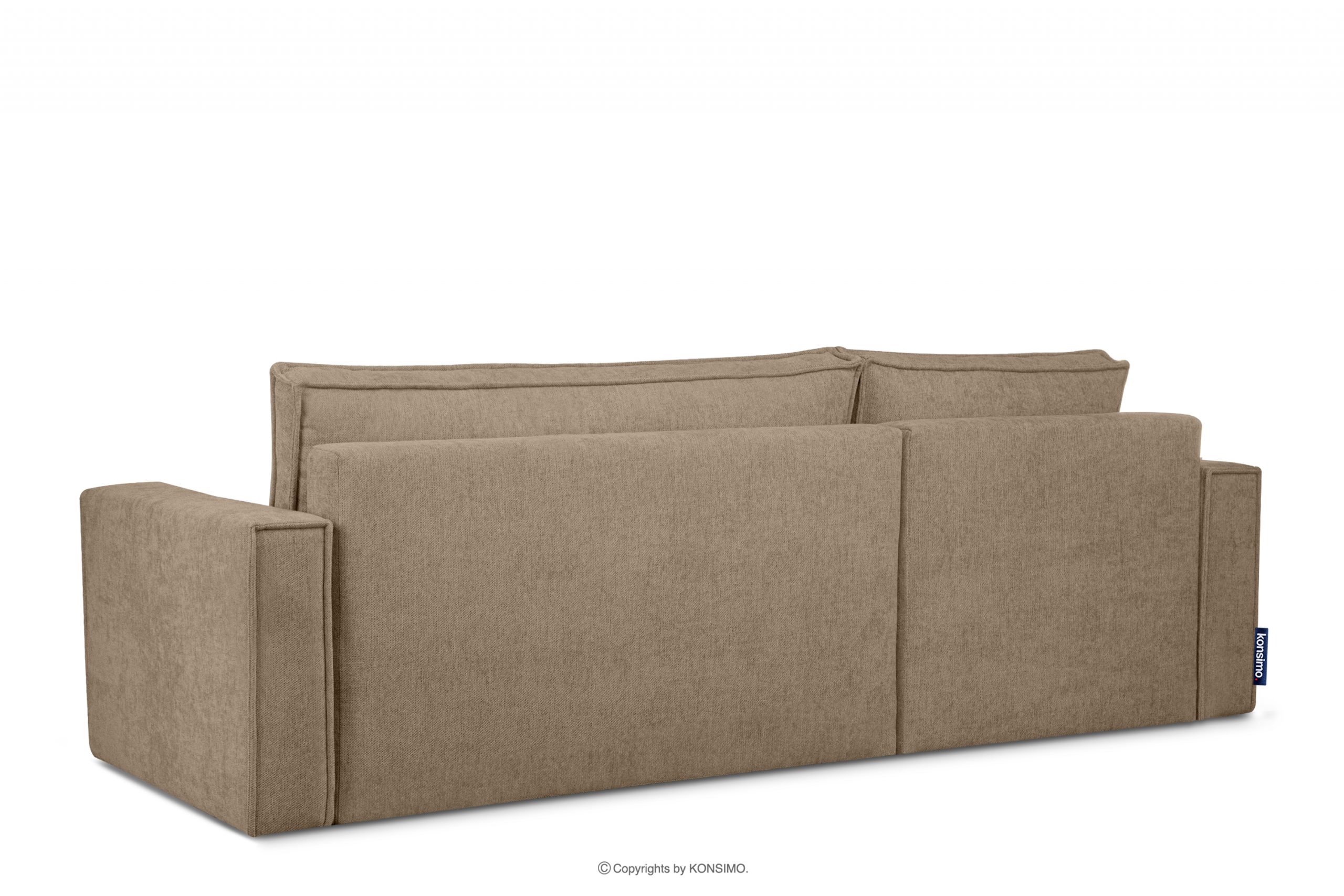 Narożnik z funkcją spania w tkaninie plecionej jasny brązowy lewy/prawy to mebel w modernistycznym stylu. Posiada szerokie boczki typu HAWAI, dzięki czemu lepiej sprawdzi się w większych pomieszczeniach. Jest to narożnik uniwersalny, czyli posiada dodatkową funkcję, jaką jest samodzielne wybranie, z której strony ma być leżanka. Można samodzielnie również po czasie zmienić stronę.