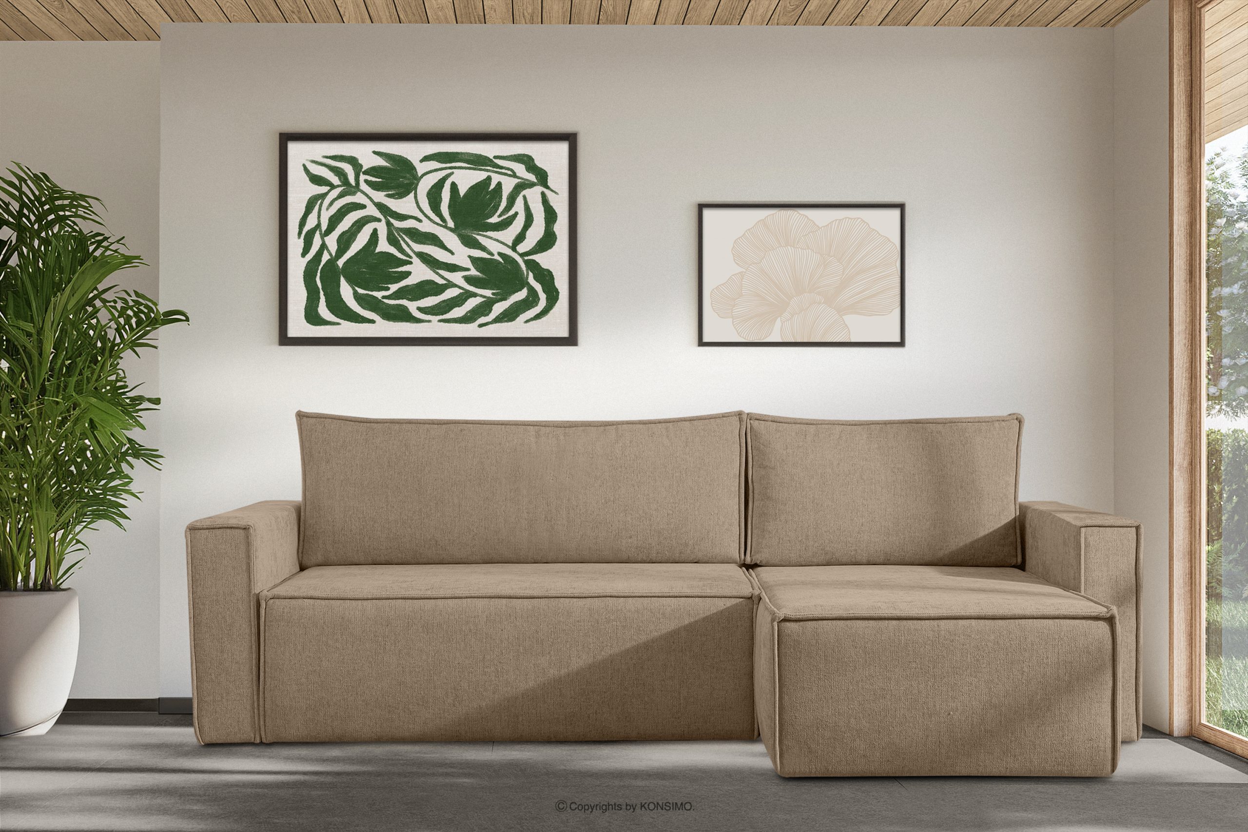 NAPI II zobacz całą kolekcję Narożnik z funkcją spania w tkaninie plecionej jasny brązowy lewy/prawy- kolor jasny brązowy