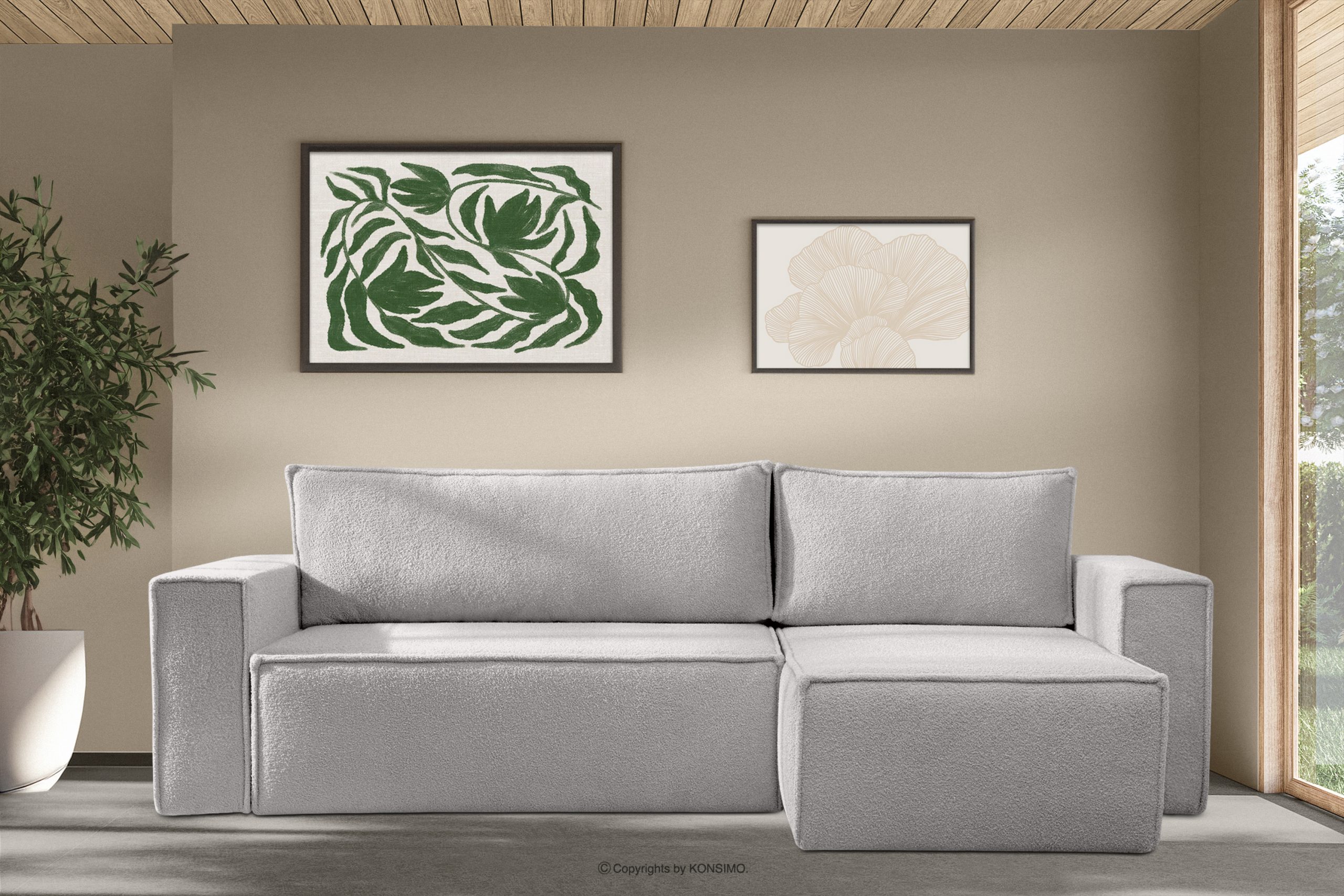 NAPI II zobacz całą kolekcję Narożnik boucle z funkcją spania lewy/prawy popielaty- kolor popielaty