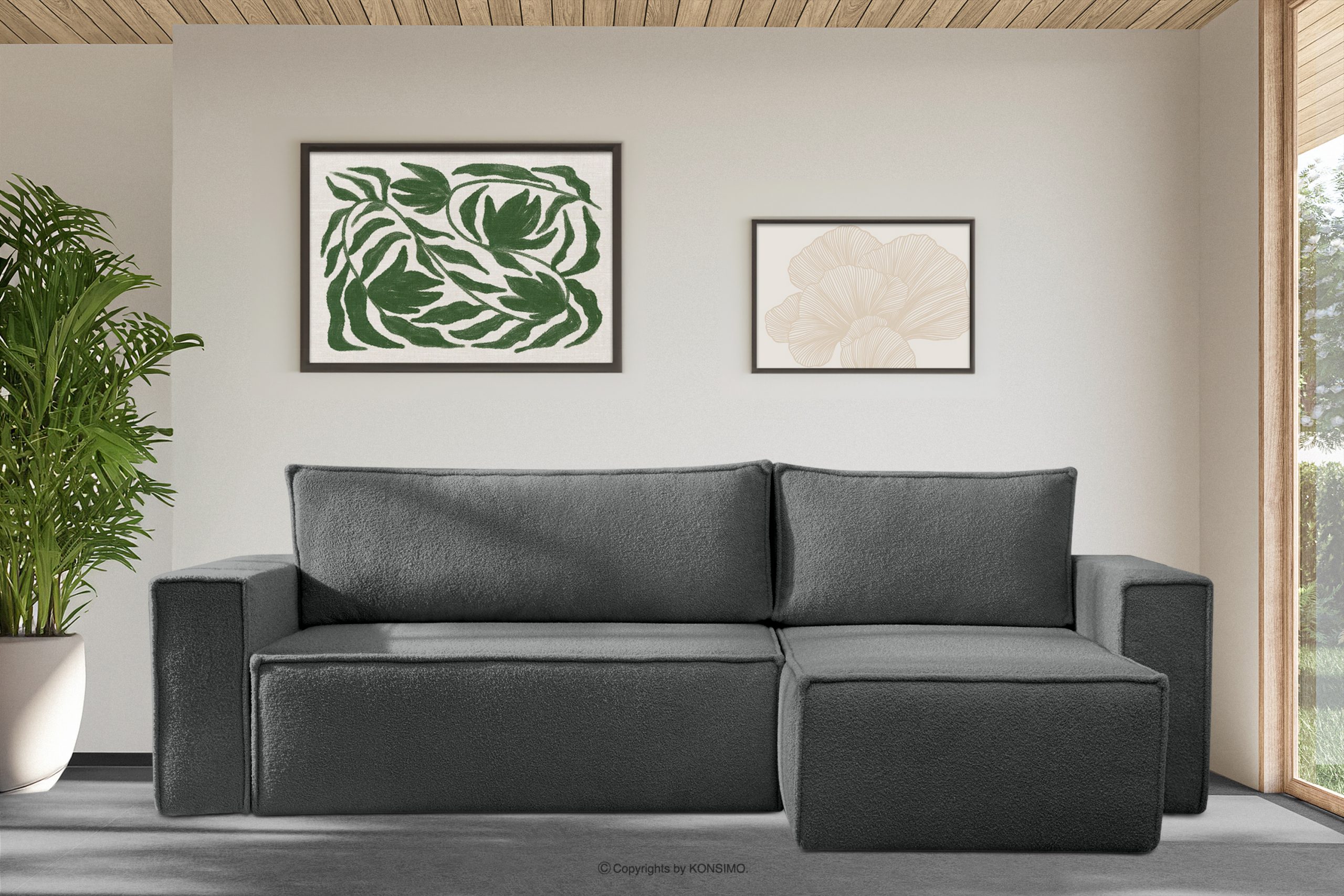 NAPI II zobacz całą kolekcję Narożnik boucle z funkcją spania lewy/prawy grafitowy- kolor grafitowy