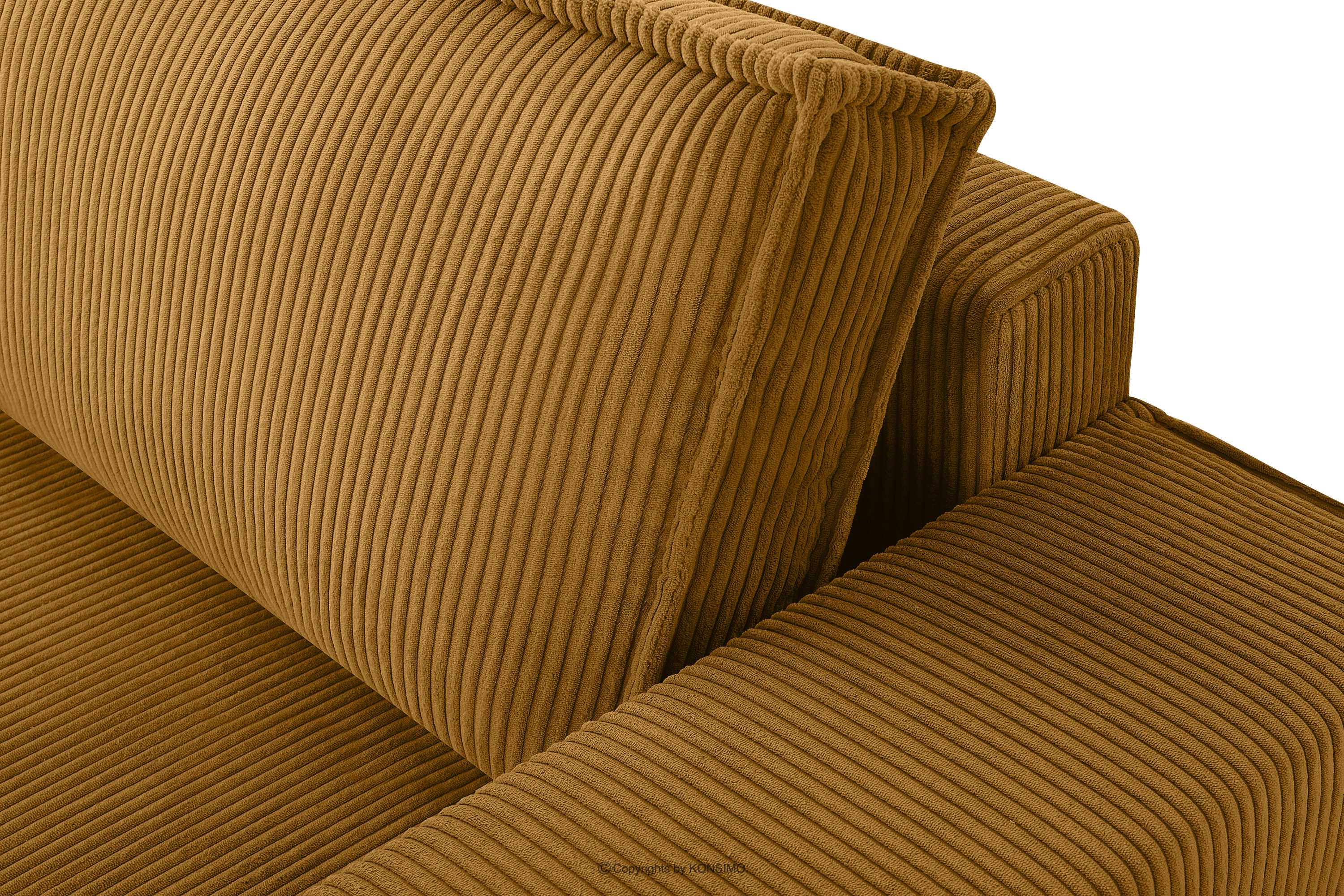 Narożnik rozkładany do salonu żółty sztruks lewy przyciąga uwagę, wyróżniając go spośród innych mebli. Całe obicie tego wyjątkowego mebla wykonane jest z delikatnej tkaniny sztruksowej, gwarantującej nie tylko przyjemny w dotyku komfort, ale także długotrwałą nieskazitelną estetykę. Z tą tkaniną Twój narożnik NAPI zawsze prezentować się będzie idealnie, niezależnie od czasu czy warunków użytkowania.