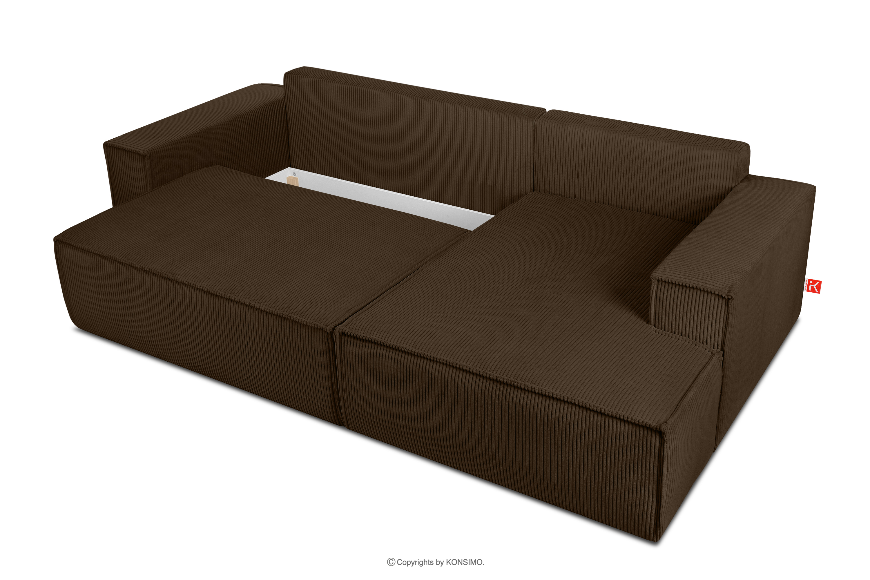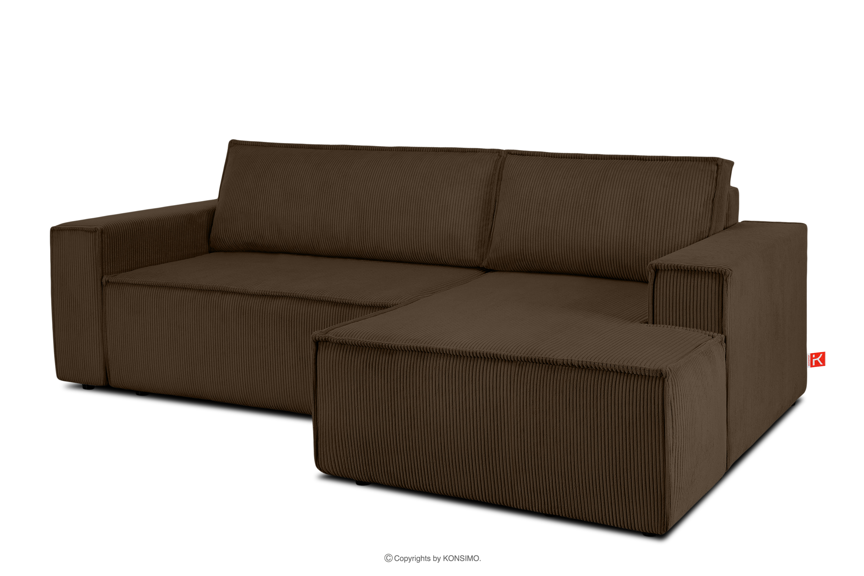 NAPI zobacz całą kolekcję Rozkładany narożnik ze skrzynią na pościel ciemny brązowy sztruks prawy- kolor ciemny brązowy