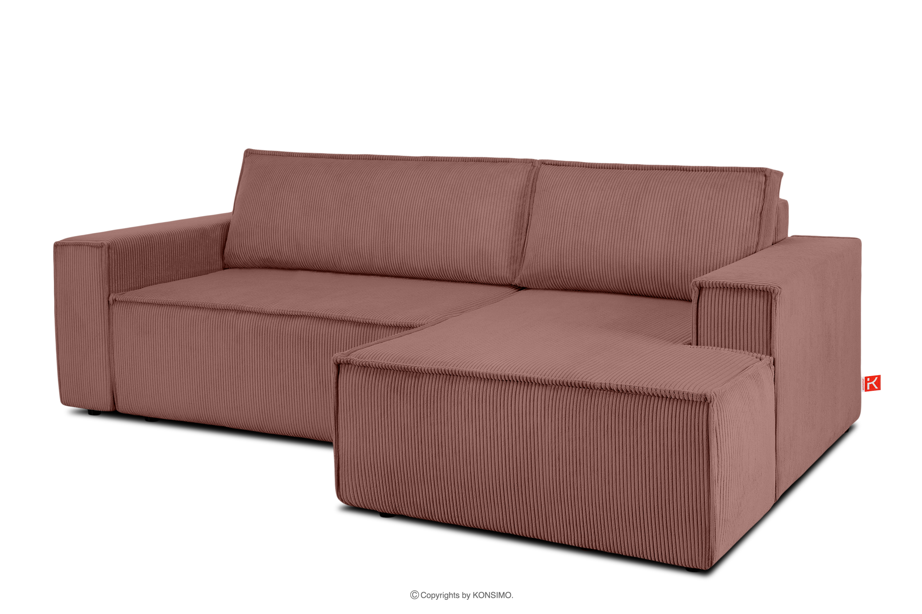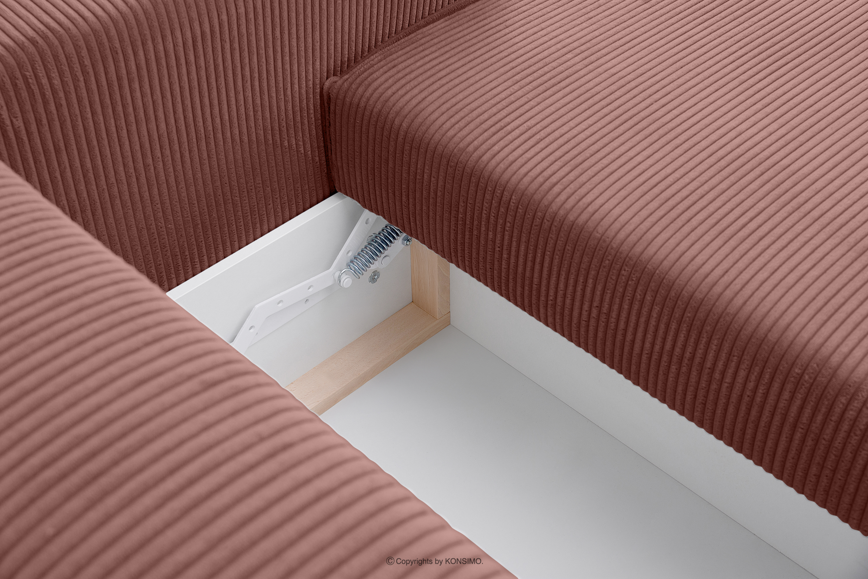 NAPI zobacz całą kolekcję Rozkładany narożnik ze skrzynią na pościel różowy sztruks prawy- kolor różowy