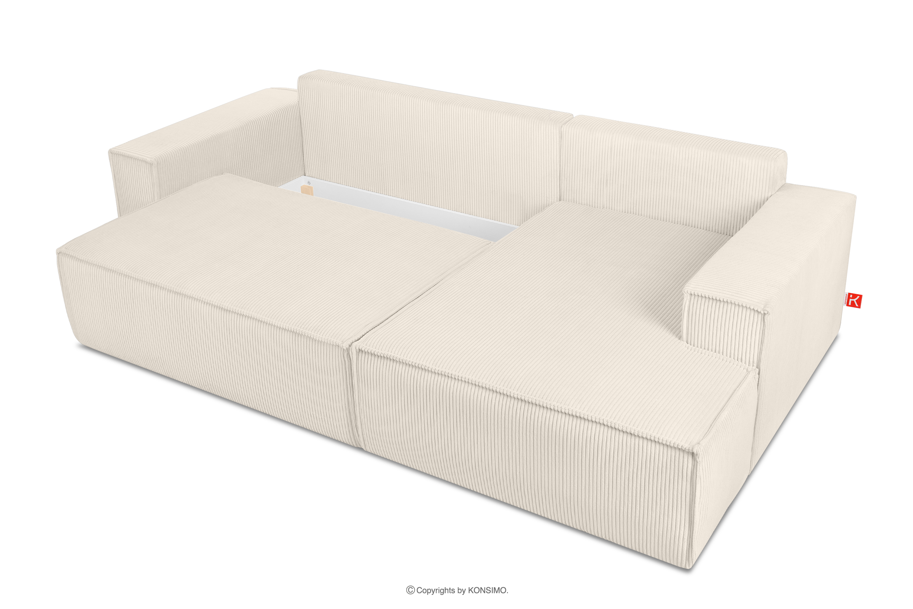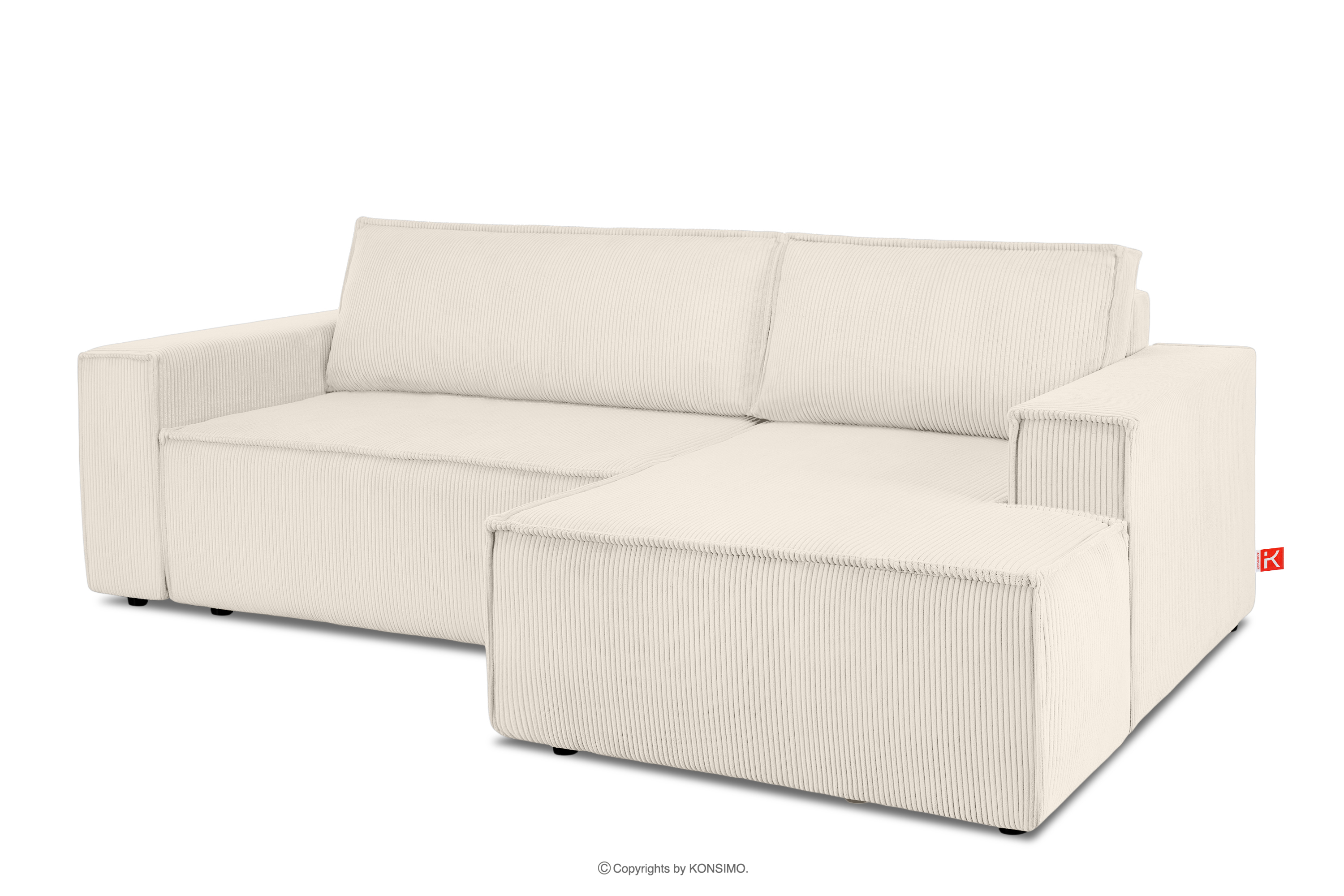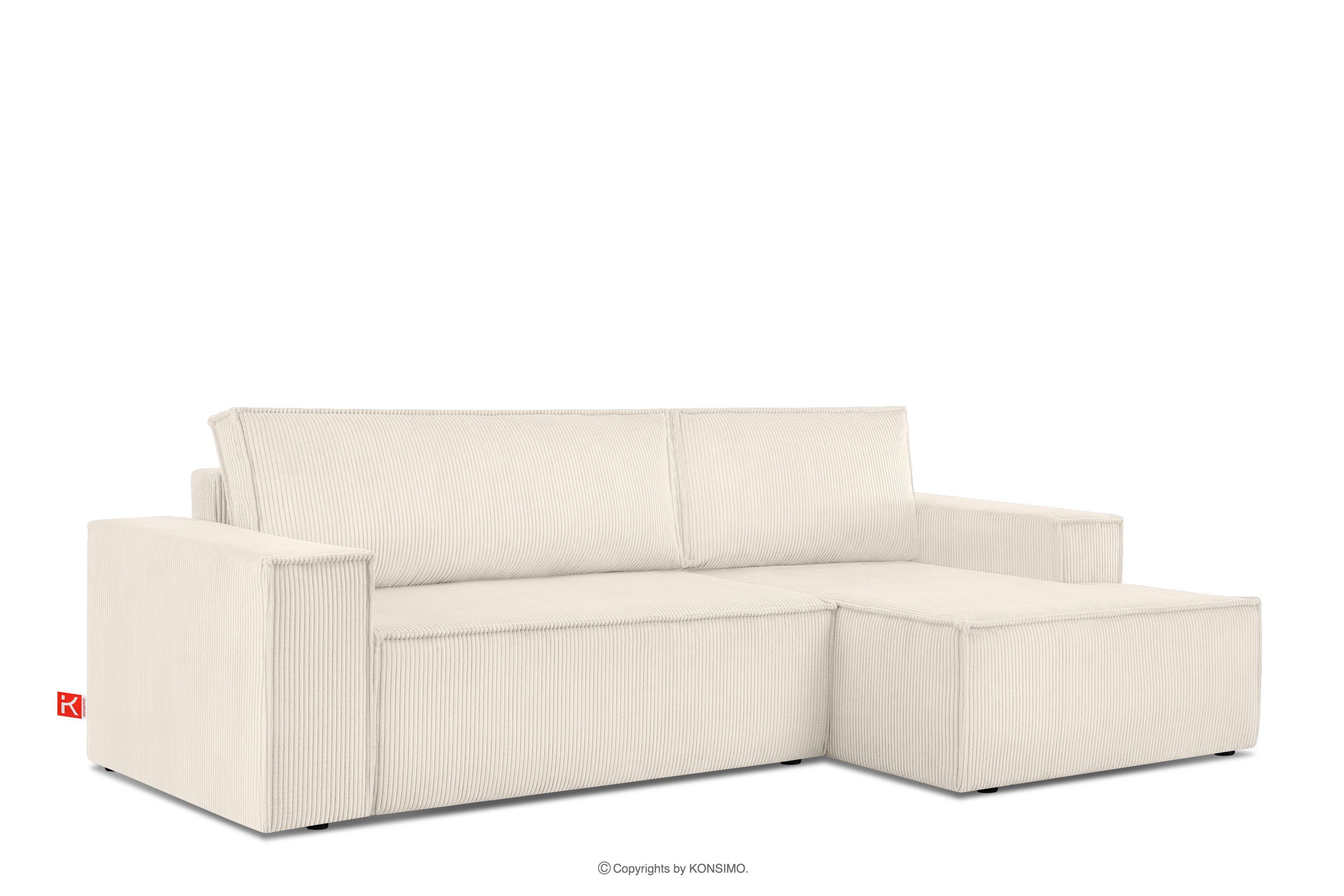 NAPI zobacz całą kolekcję Rozkładany narożnik ze skrzynią na pościel ecru sztruks prawy- kolor ecru
