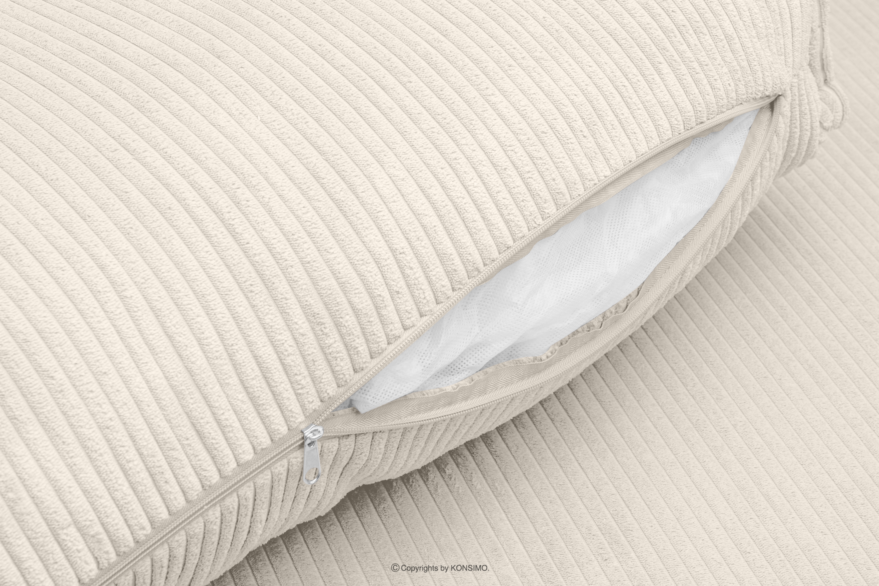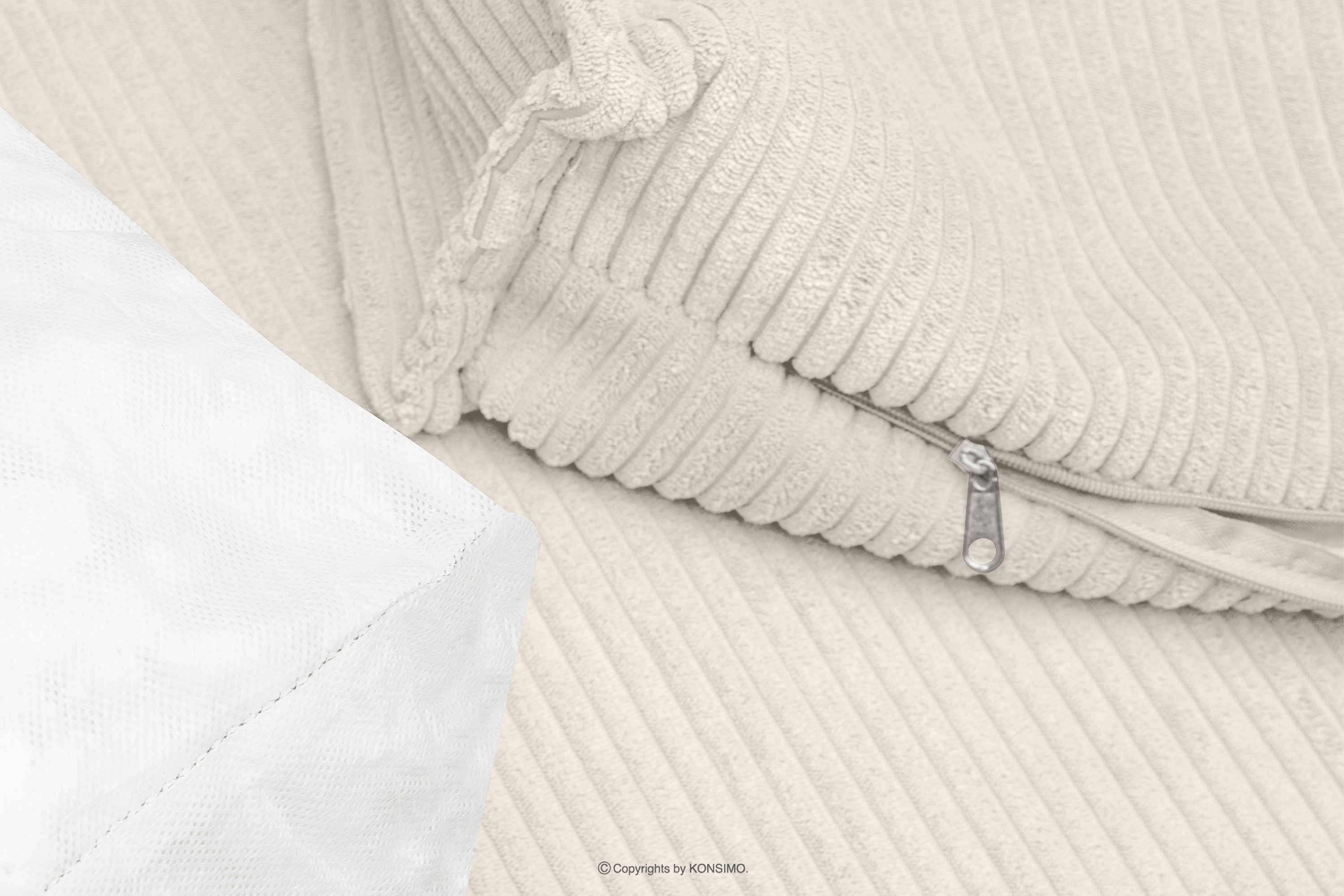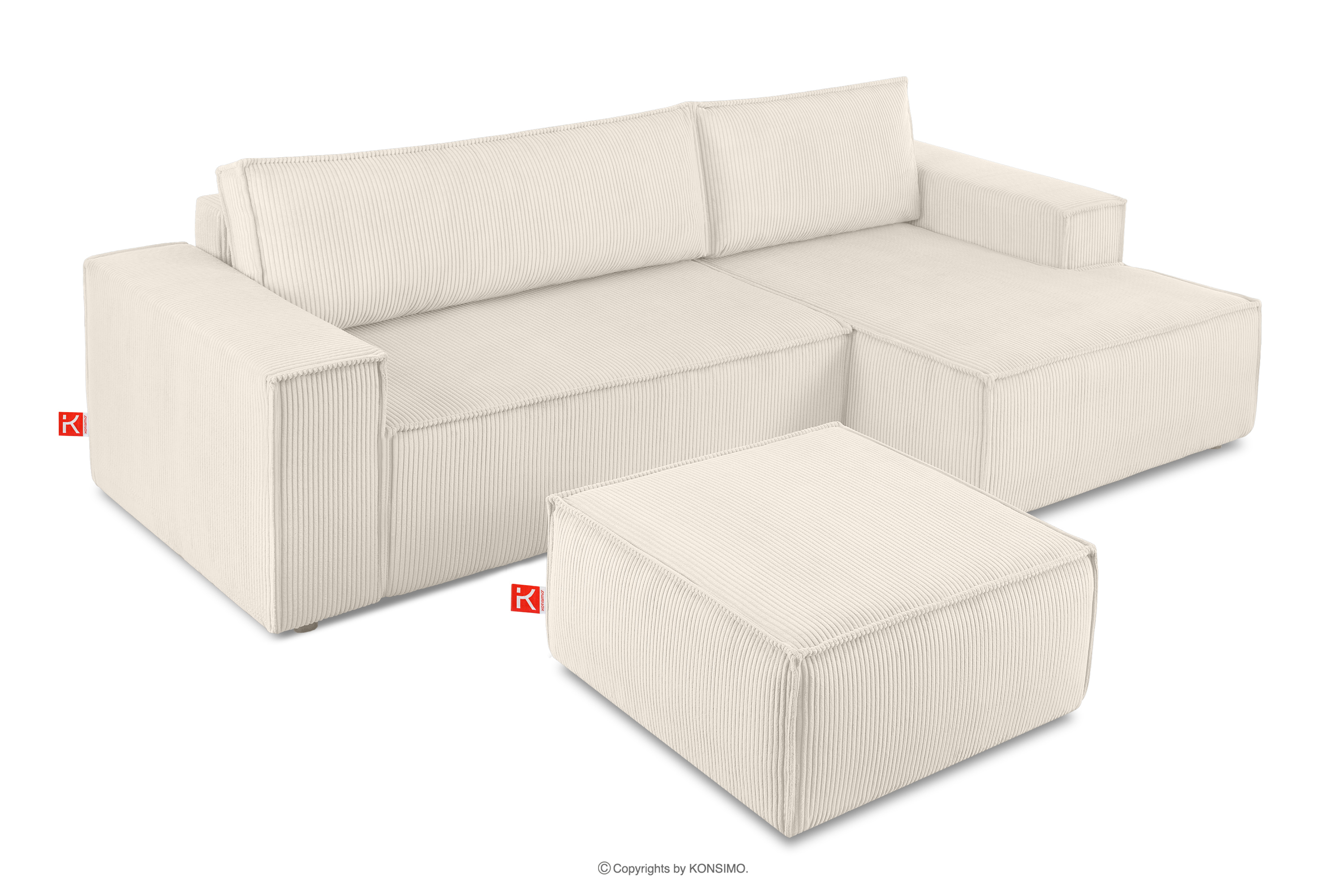 NAPI zobacz całą kolekcję Rozkładany narożnik ze skrzynią na pościel ecru sztruks prawy- kolor ecru