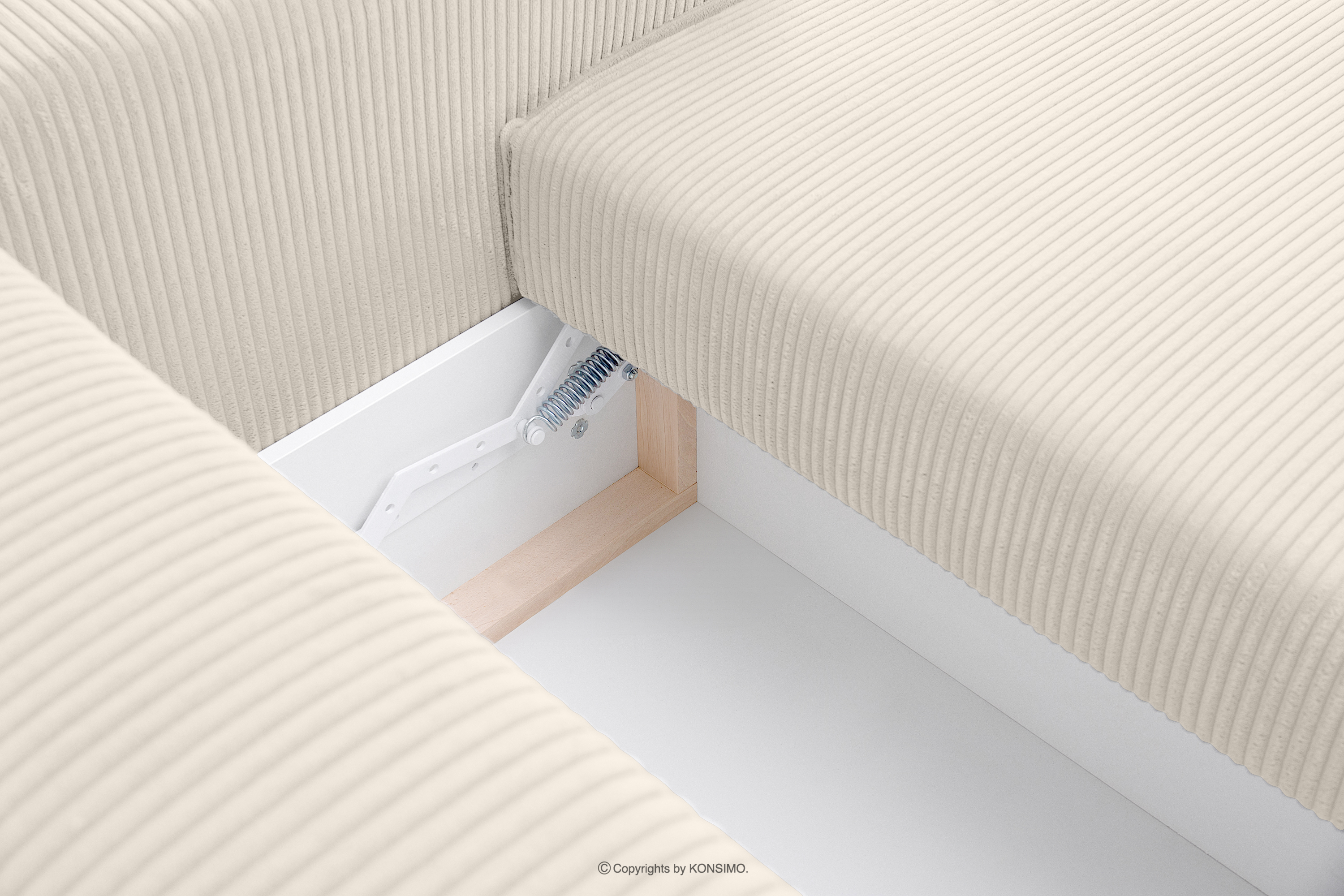 dla produktu Rozkładany narożnik ze skrzynią na pościel ecru sztruks prawy