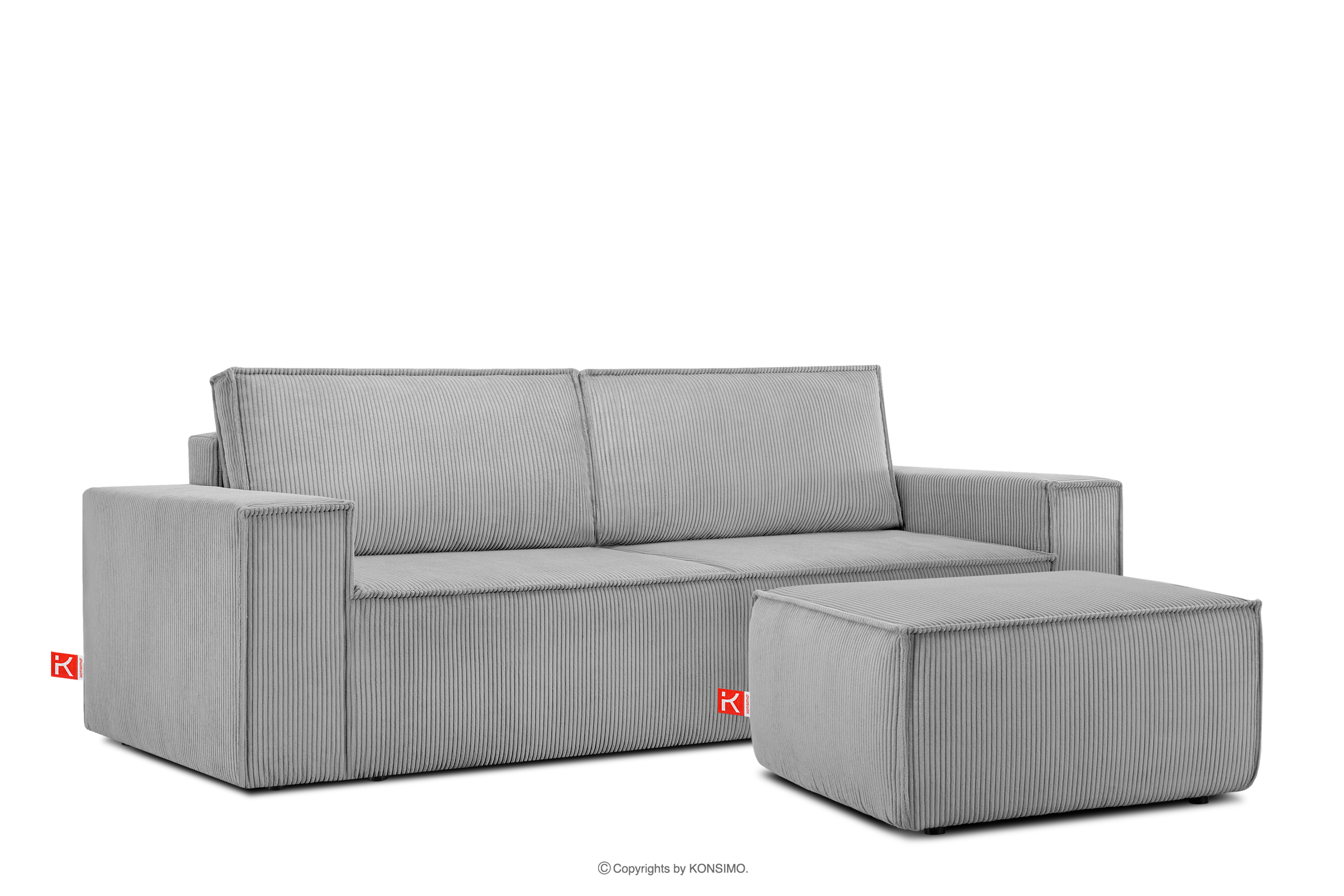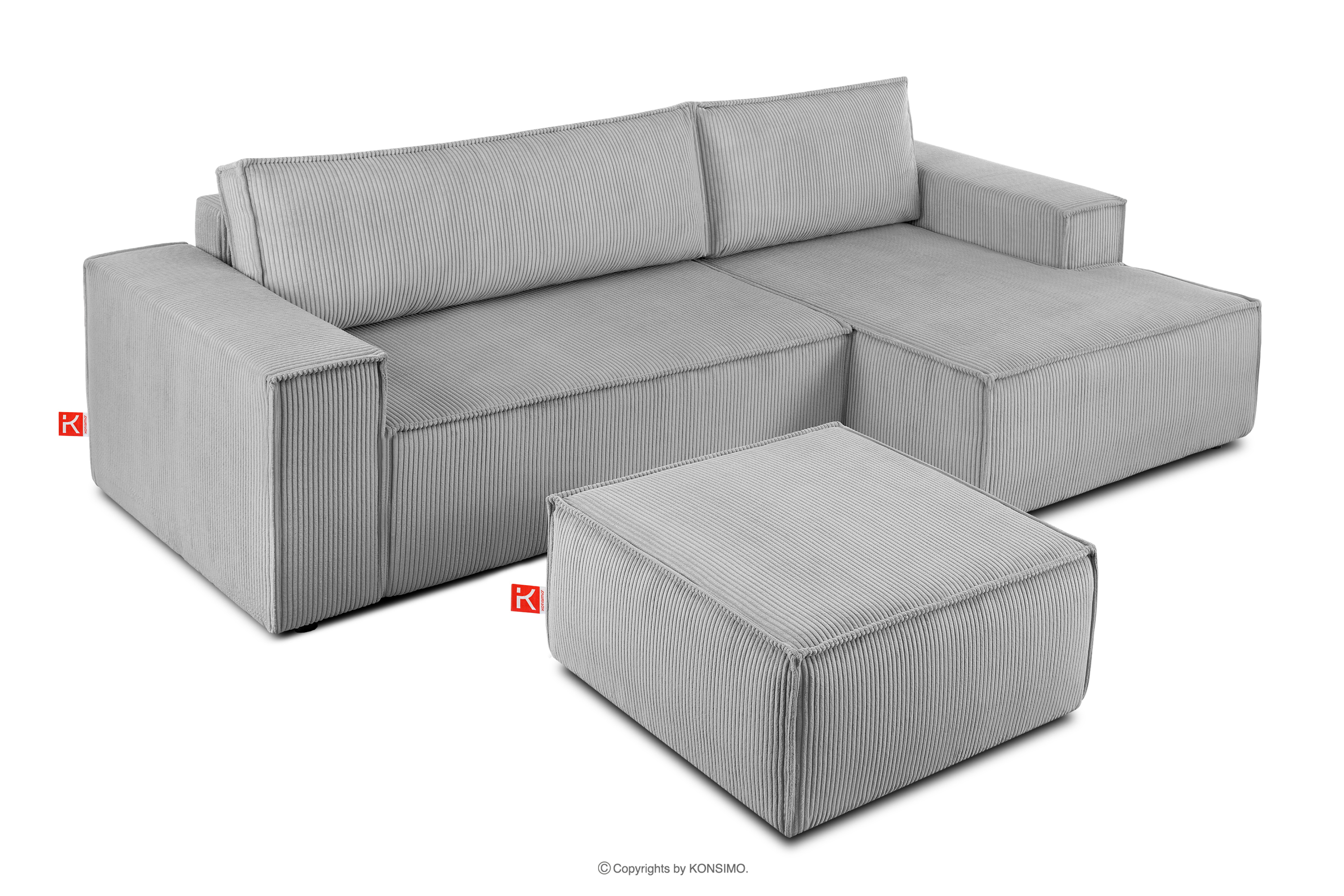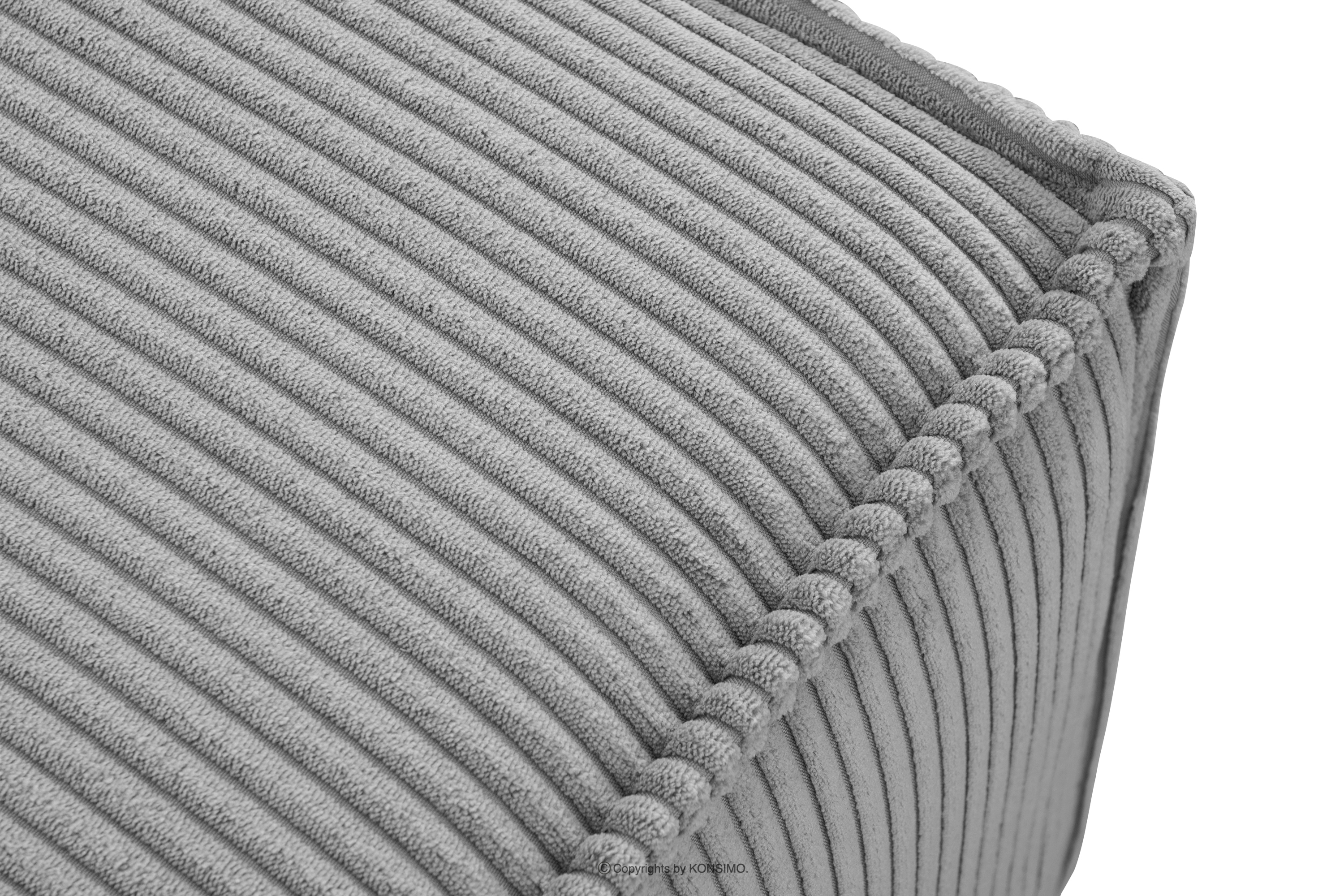 Duży puf w tkaninie sztruksowej jasny szary to mebel w modernistycznym stylu. Jest to idealny dodatek do narożników i sof z tej samej kolekcji, a nawet samodzielnie będzie się dobrze prezentować. Postawiony jest na wytrzymałych czarnych nóżkach, co zapobiega brudzeniu się tkaniny. Obicie pufy to gwarancja, że twój puf NAPI będzie zawsze wyglądał idealnie.