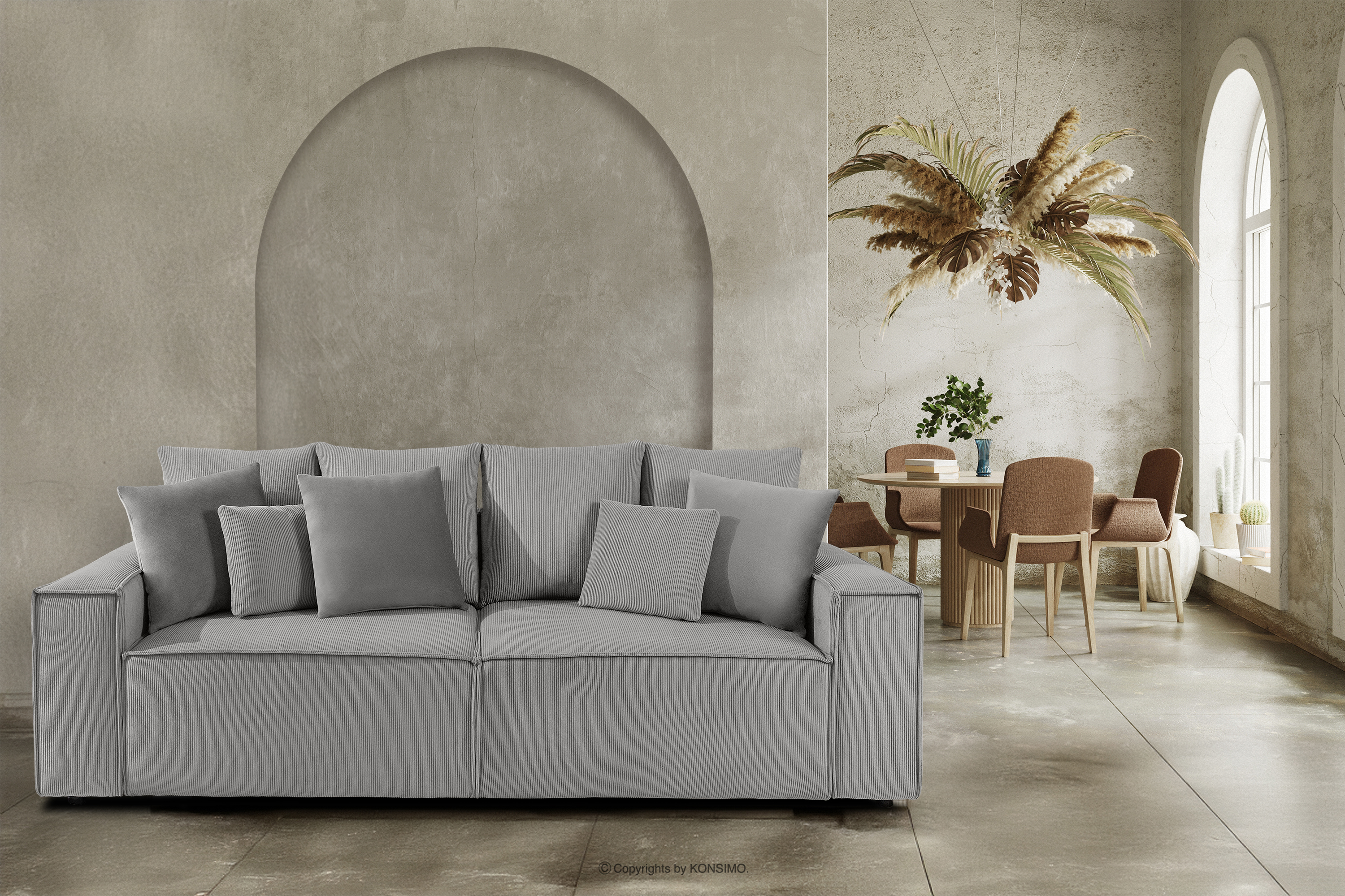 NAPI III zobacz całą kolekcję Sofa trzyosobowa z poduszkami sztruks/welur jasny szary- kolor jasny szary