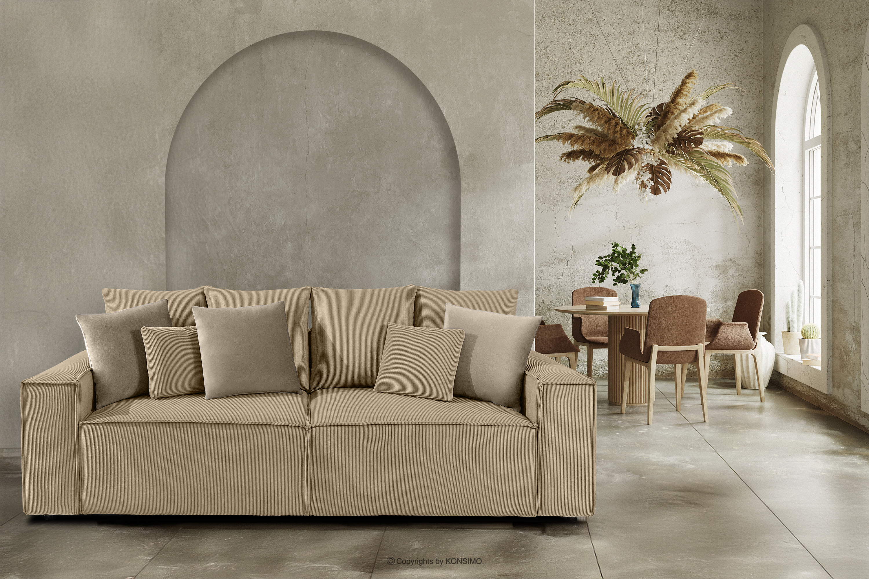 NAPI III zobacz całą kolekcję Sofa trzyosobowa z poduszkami sztruks/welur kremowy- kolor kremowy