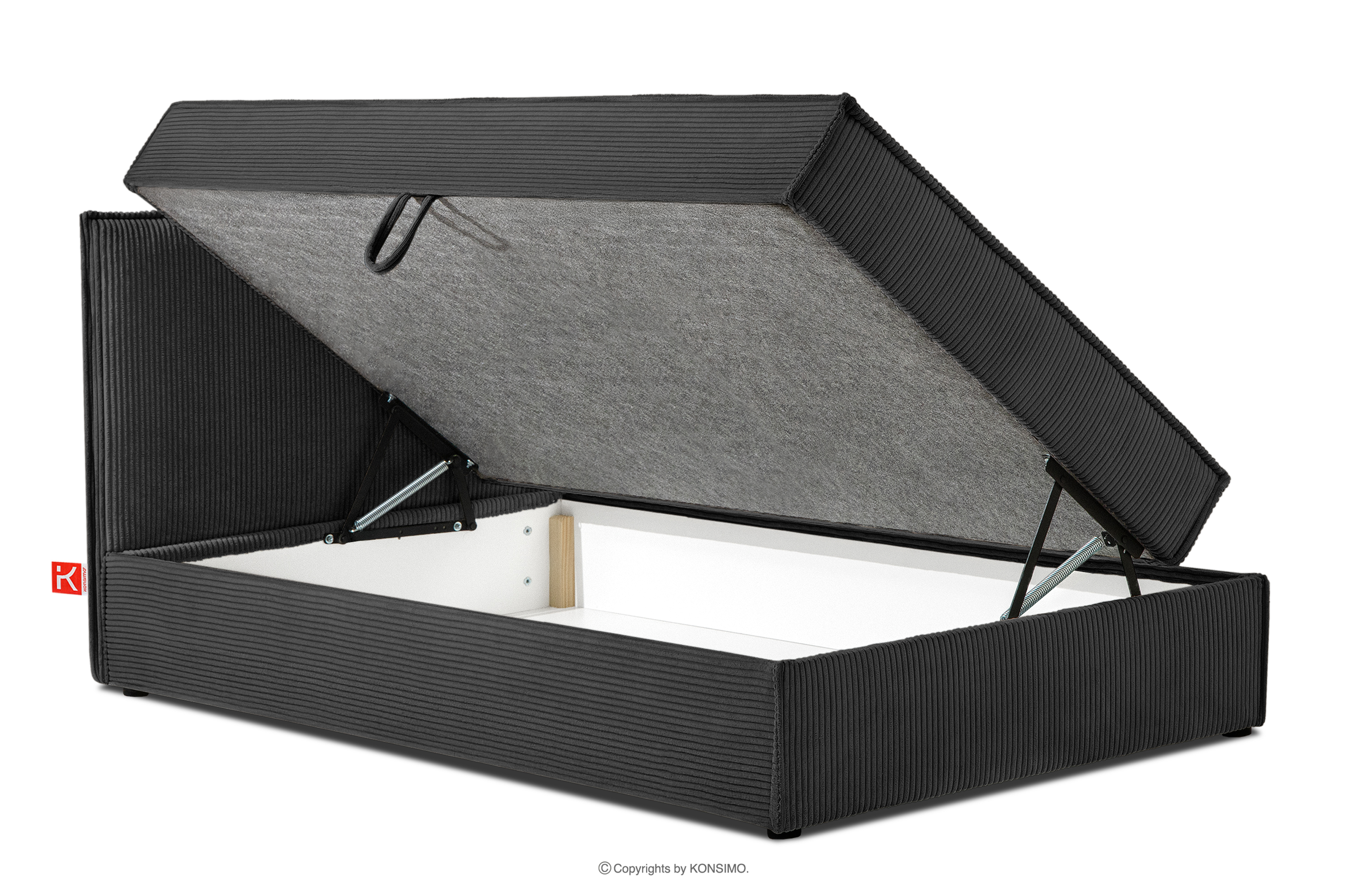 ROTI zobacz całą kolekcję Łóżko jednoosobowe 90 cm w tkaninie sztruks ciemny szary- kolor ciemny szary