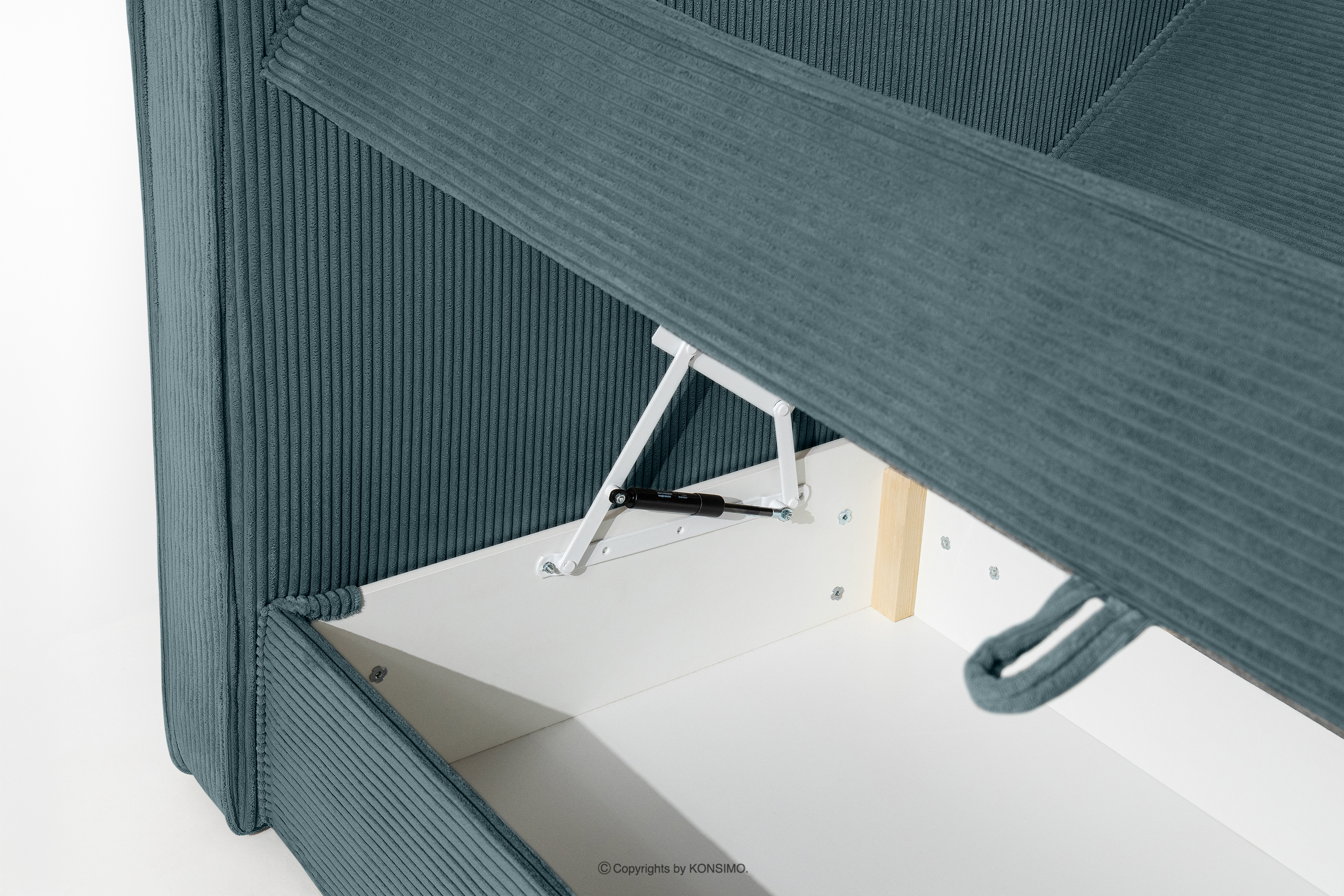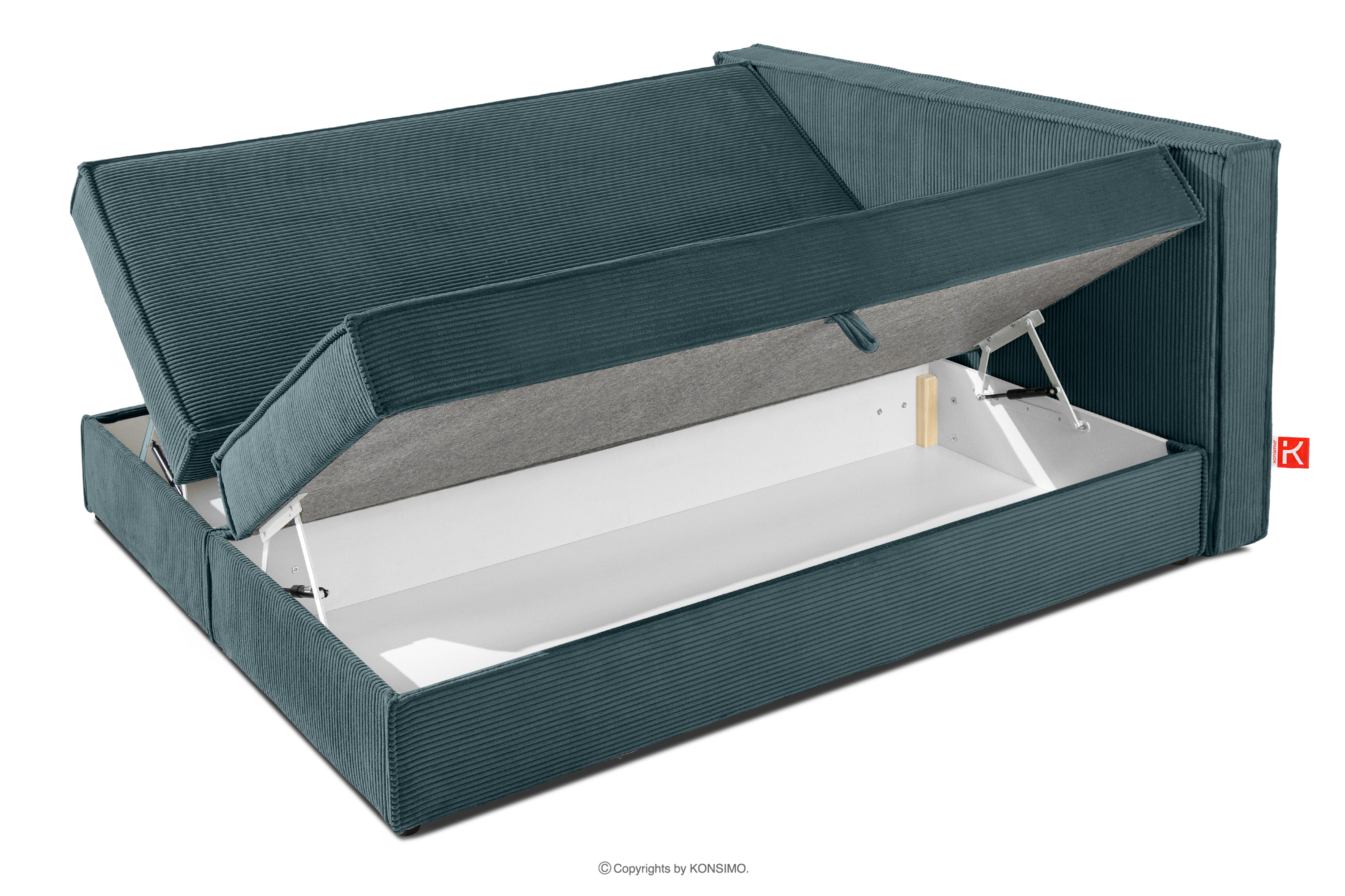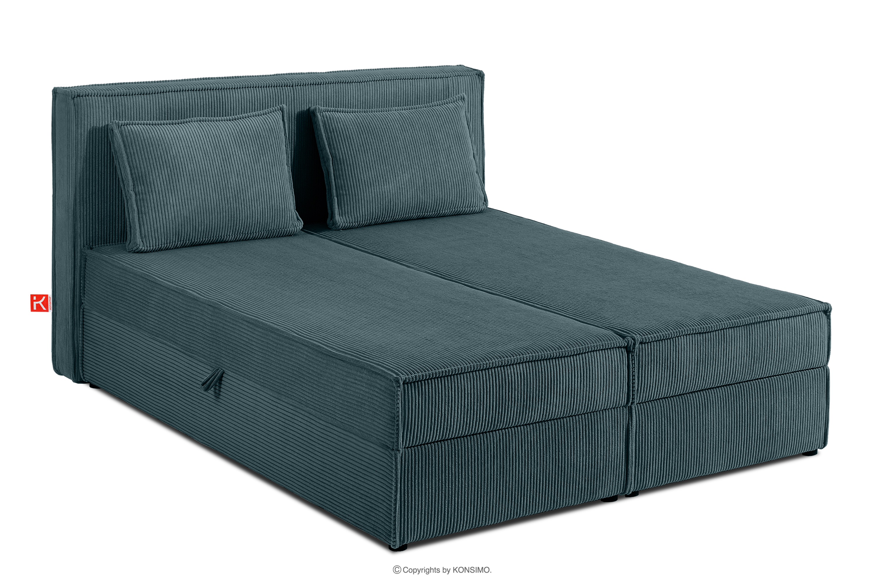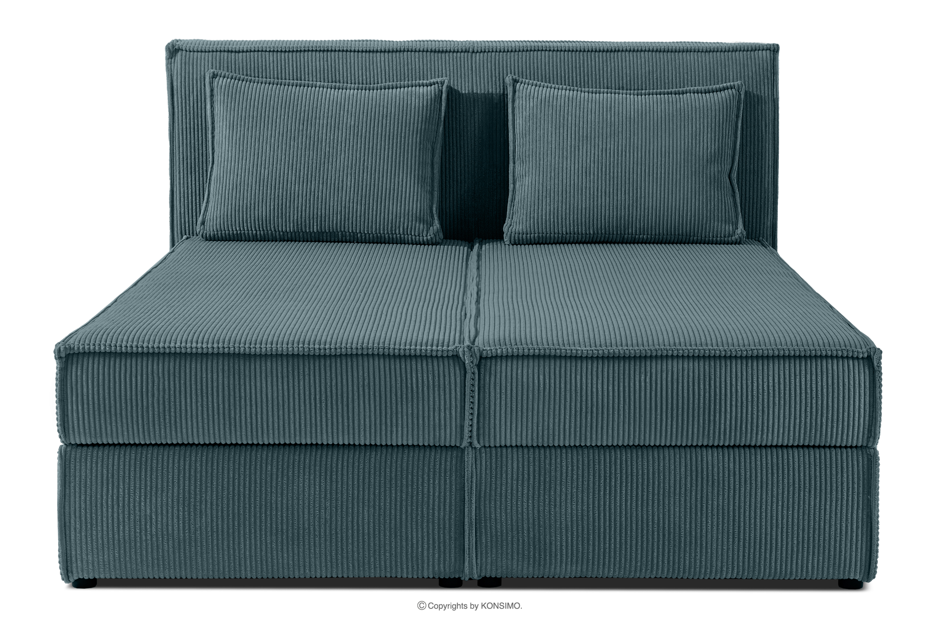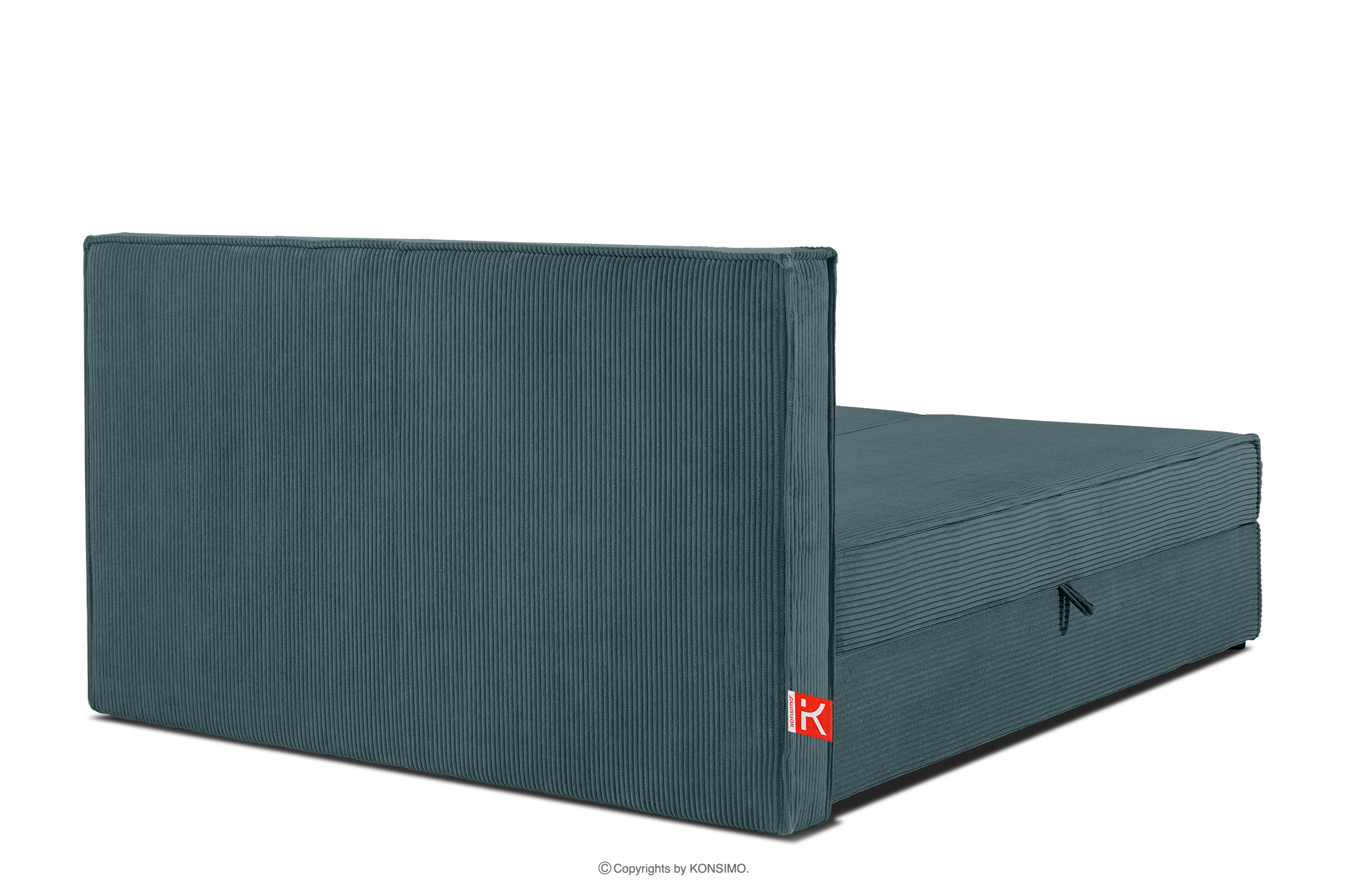 Łóżko dwuosobowe 140 cm w tkaninie sztruks niebieski ROTI - kolor niebieski