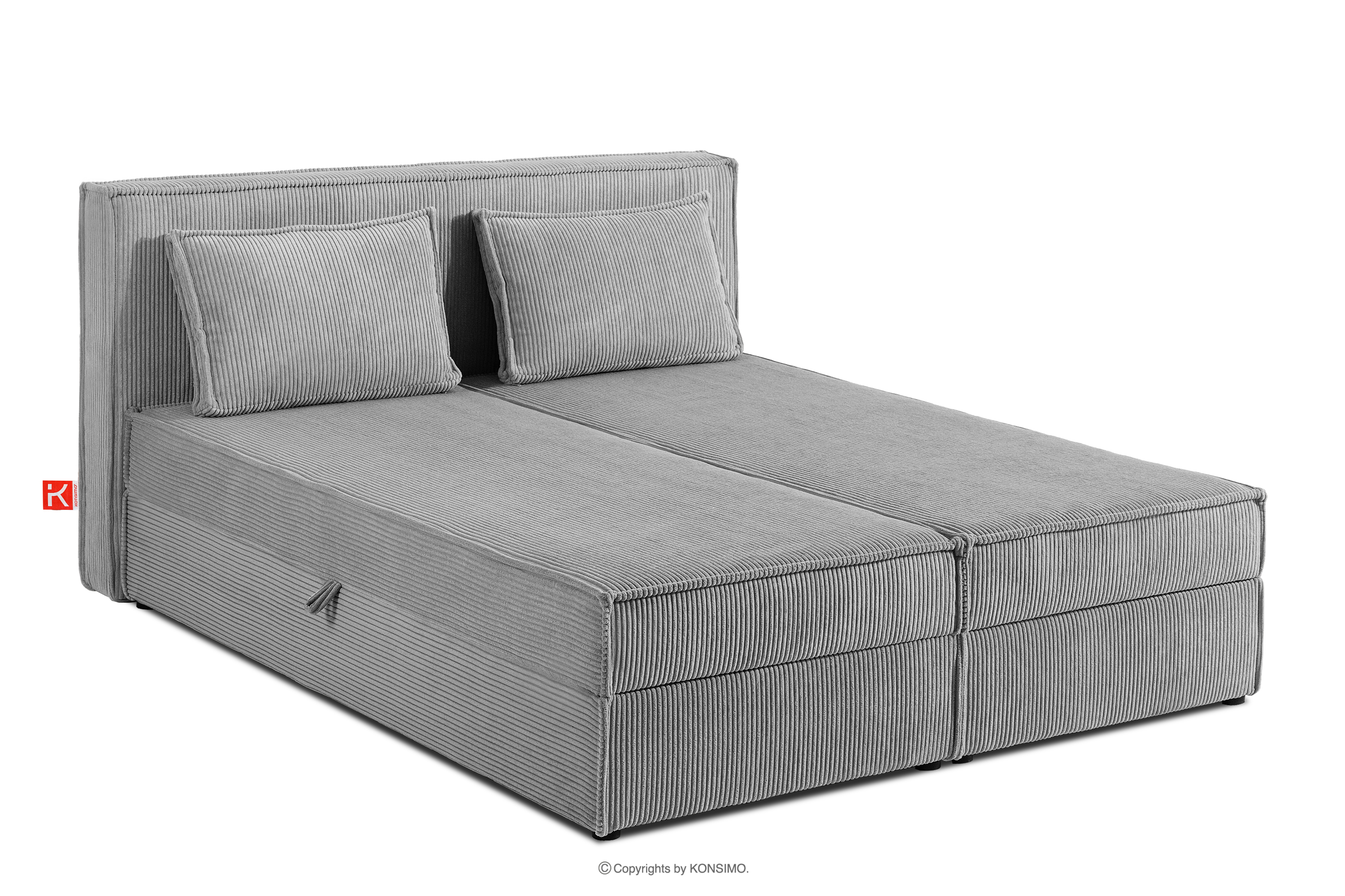 ROTI zobacz całą kolekcję Łóżko kontynentalne z toperem 160 cm w tkaninie sztruks jasny szary- kolor jasny szary