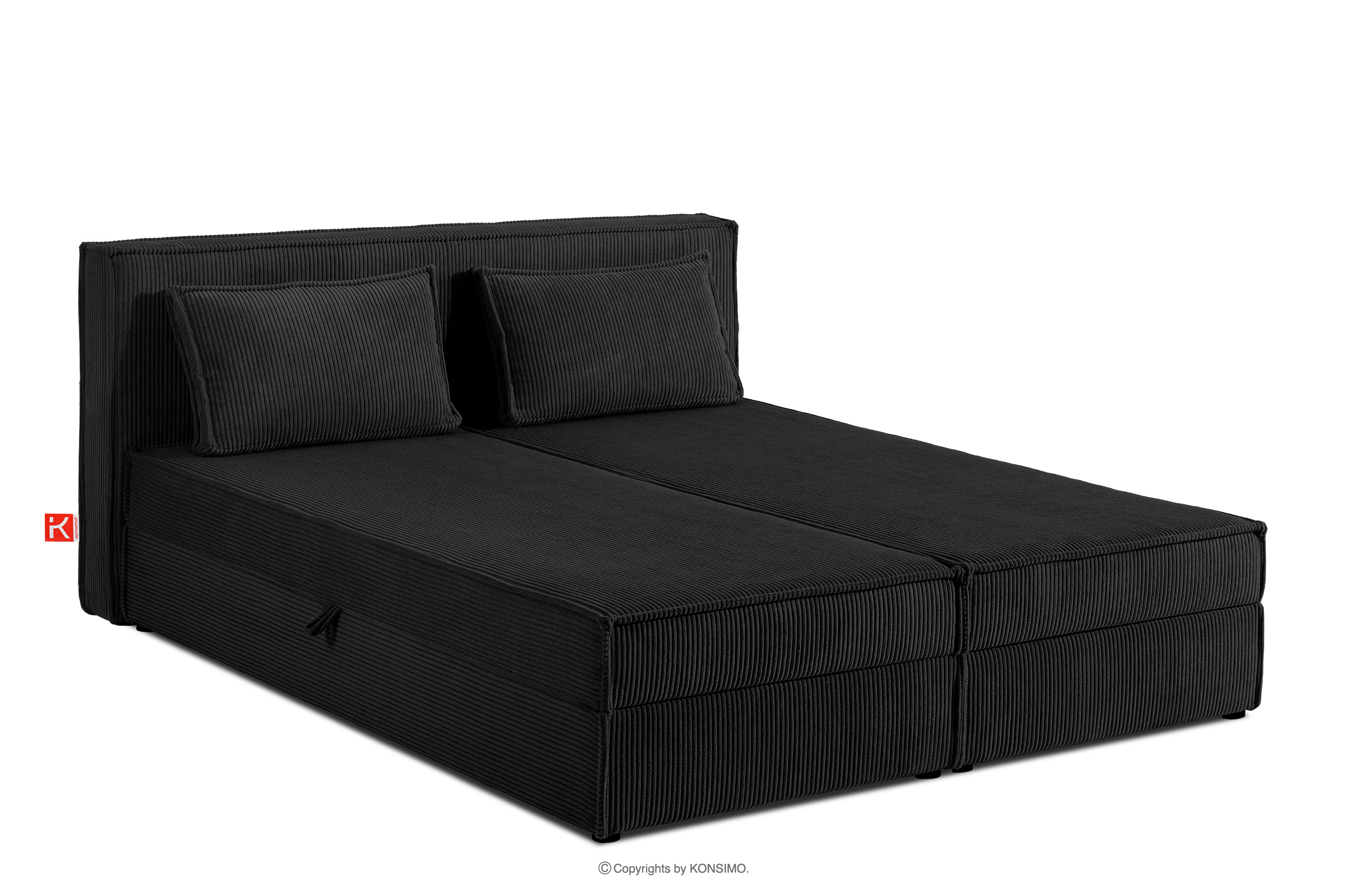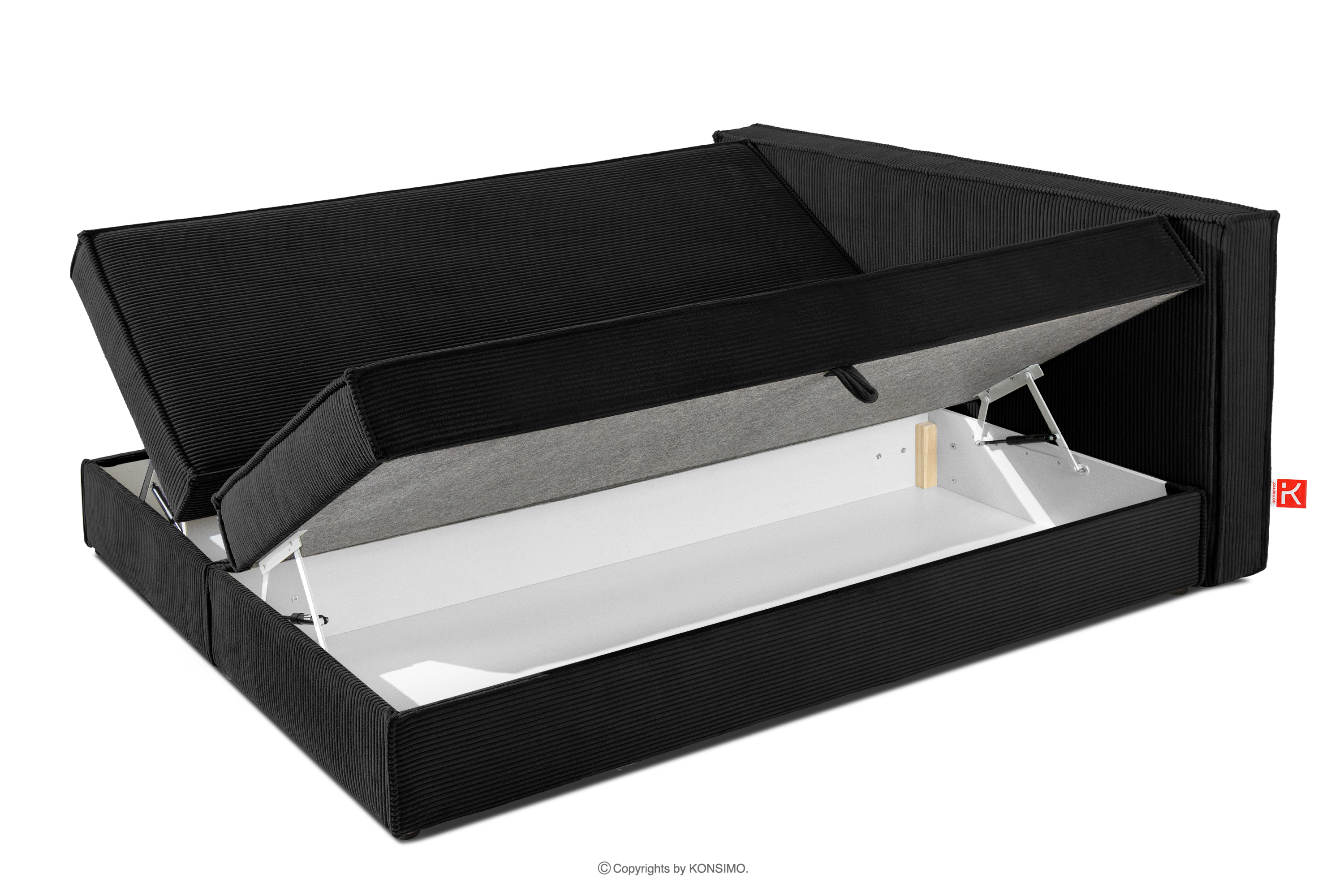 ROTI zobacz całą kolekcję Łóżko kontynentalne z toperem dwuosobowe 180 cm w tkaninie sztruks czarny- kolor czarny