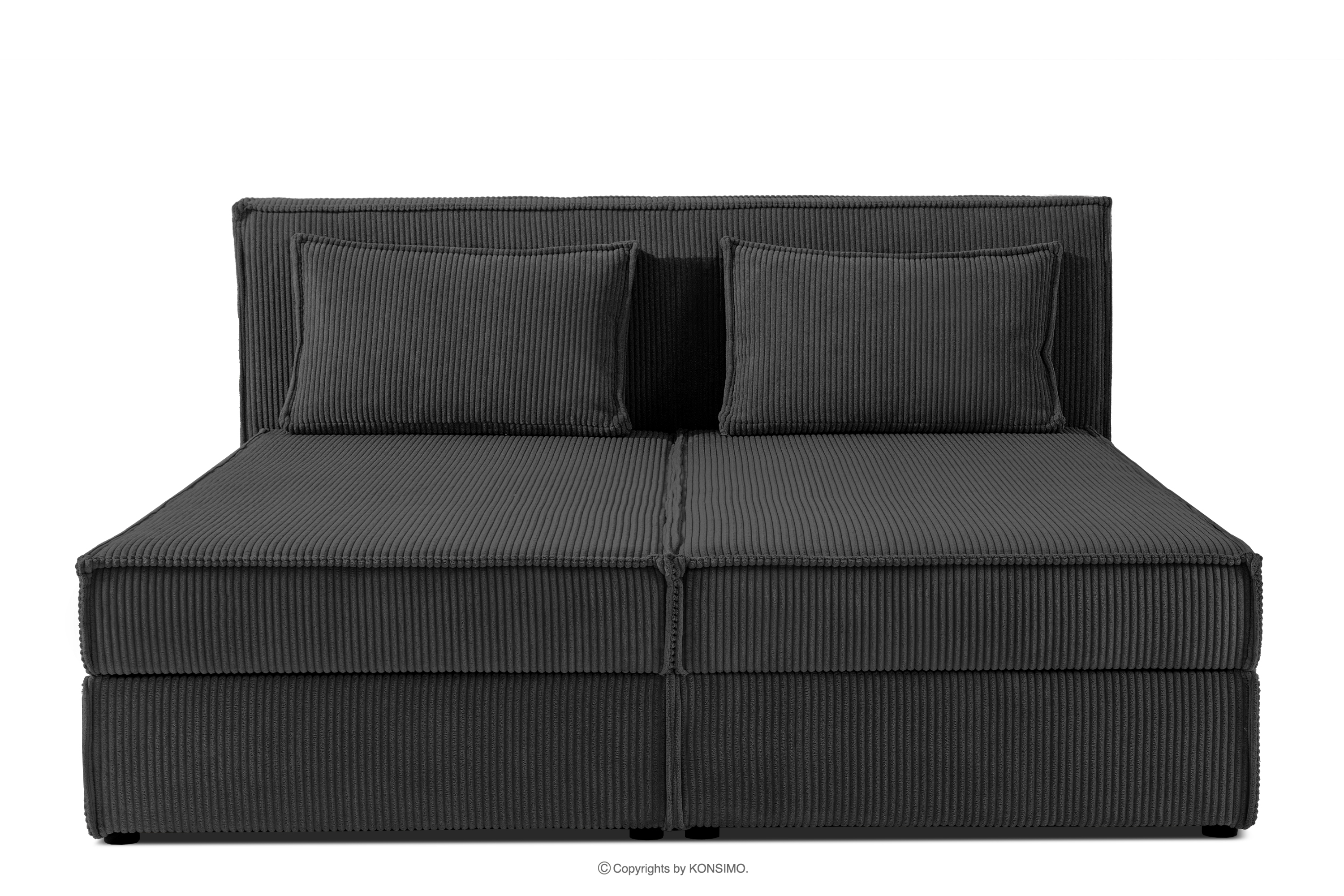 ROTI Łóżko kontynentalne z toperem dwuosobowe 180 cm w tkaninie sztruks ciemny szary