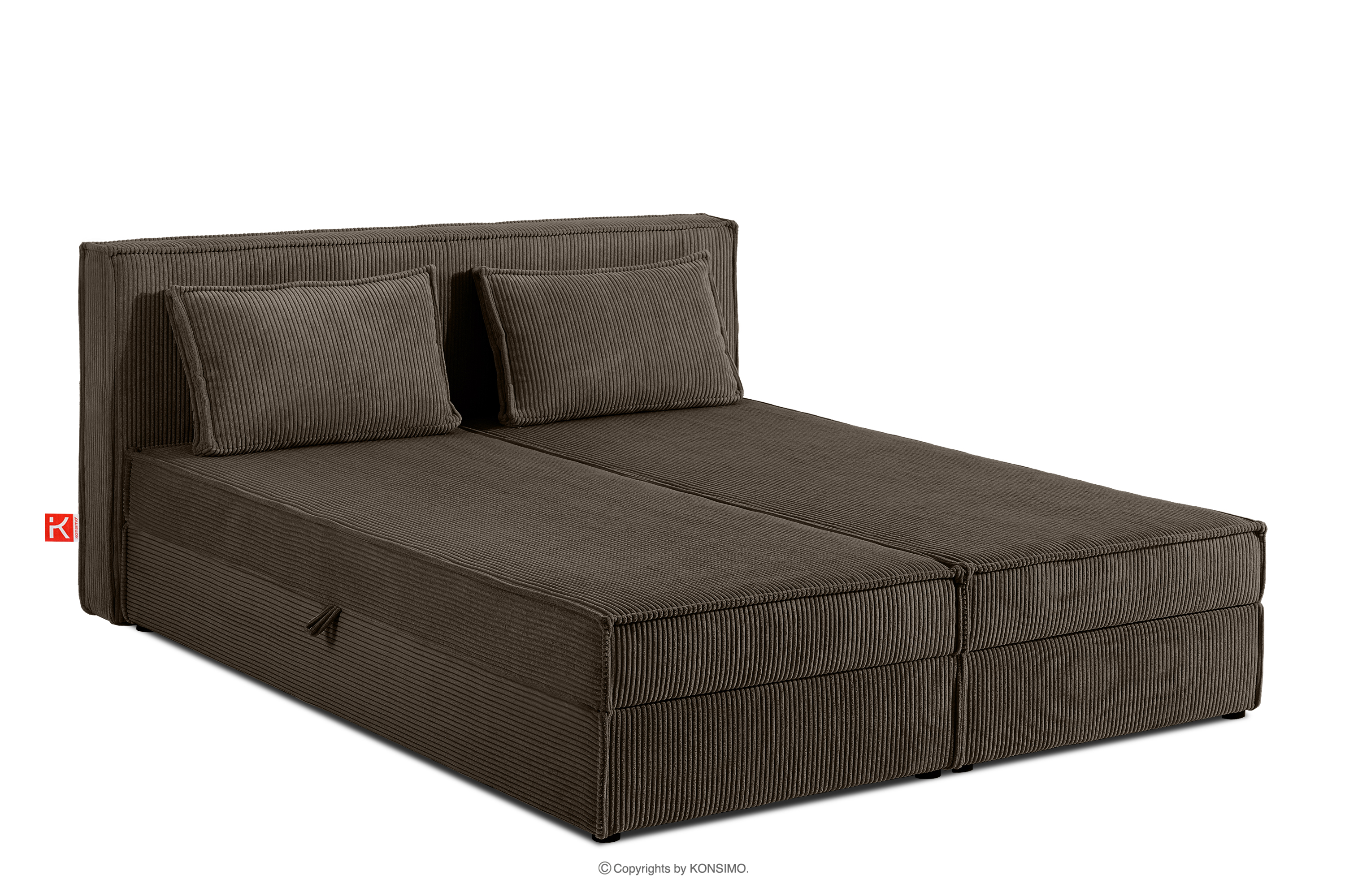 Łóżko kontynentalne z toperem 180 cm tkanina sztruks brązowy ROTI - kolor brązowy