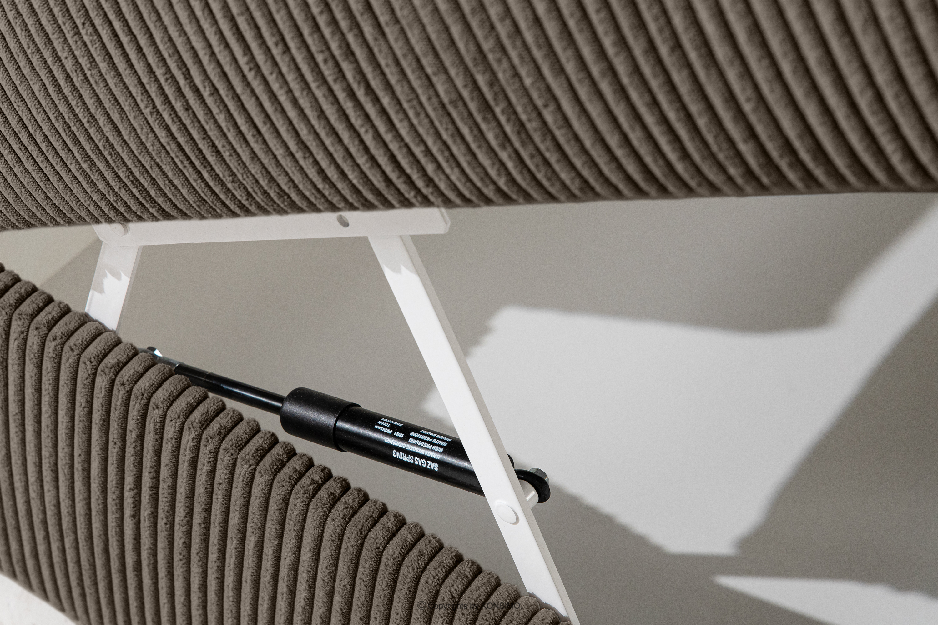 Połączenie w siedzisku sprężyn bonellowych i pianki HR35, tworzy ergonomiczną i wytrzymałą powierzchnię do spania, która jest odporna na odkształcenia i zapewnia komfort użytkowania przez długie lata. W siedzisku zastosowano również ovate i filc, co wzmacnia całą konstrukcję i podnosi komfort. Cechą charakterystyczną jest pojemna skrzynia na pościel, która jest niezwykle funkcjonalnym dodatkiem do tego modelu. Umożliwia ona przechowywanie pościeli, koców czy poduszek, oszczędzając miejsce w szafach i komodach.