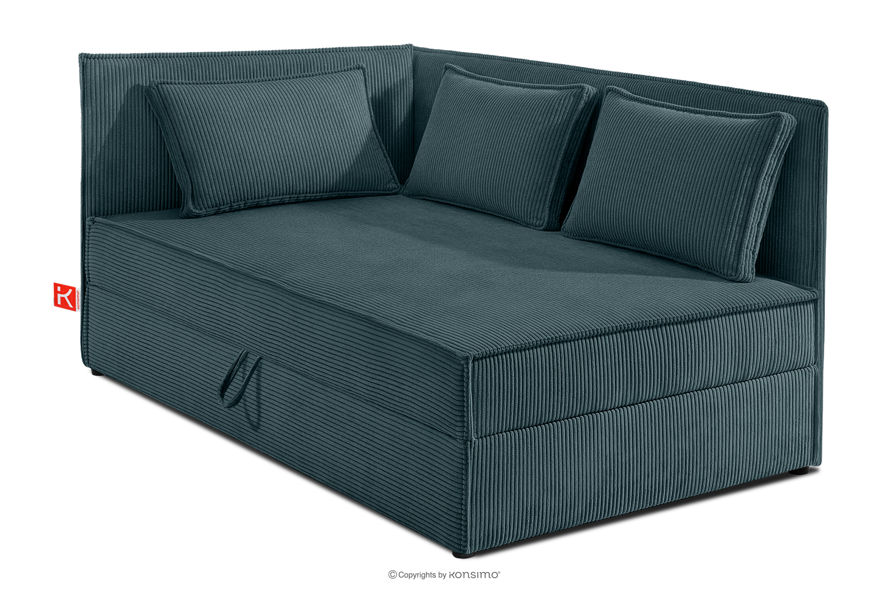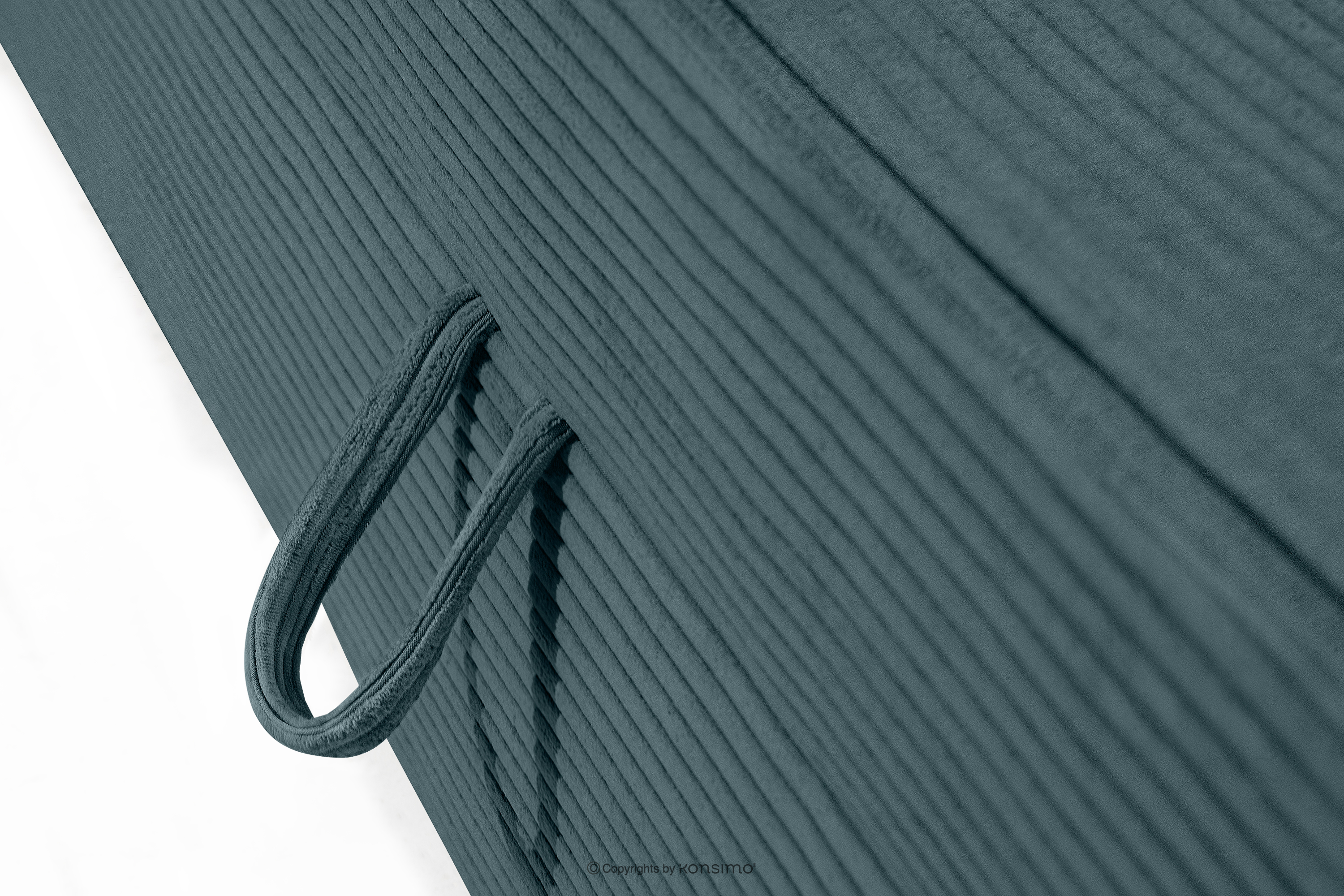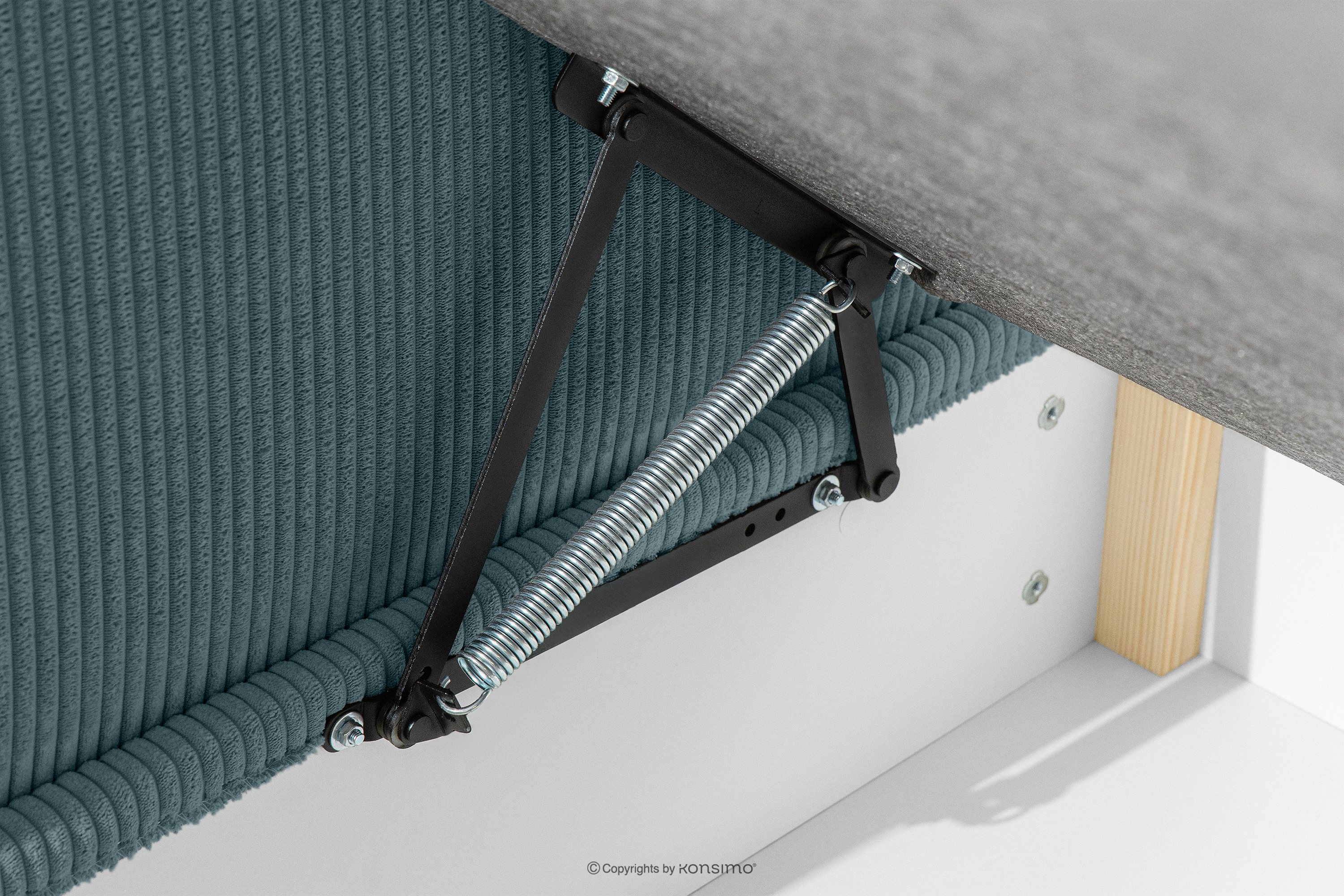 ROTI zobacz całą kolekcję Łóżko 90 cm dla nastolatka z oparciem w tkaninie sztruks niebieski- kolor niebieski